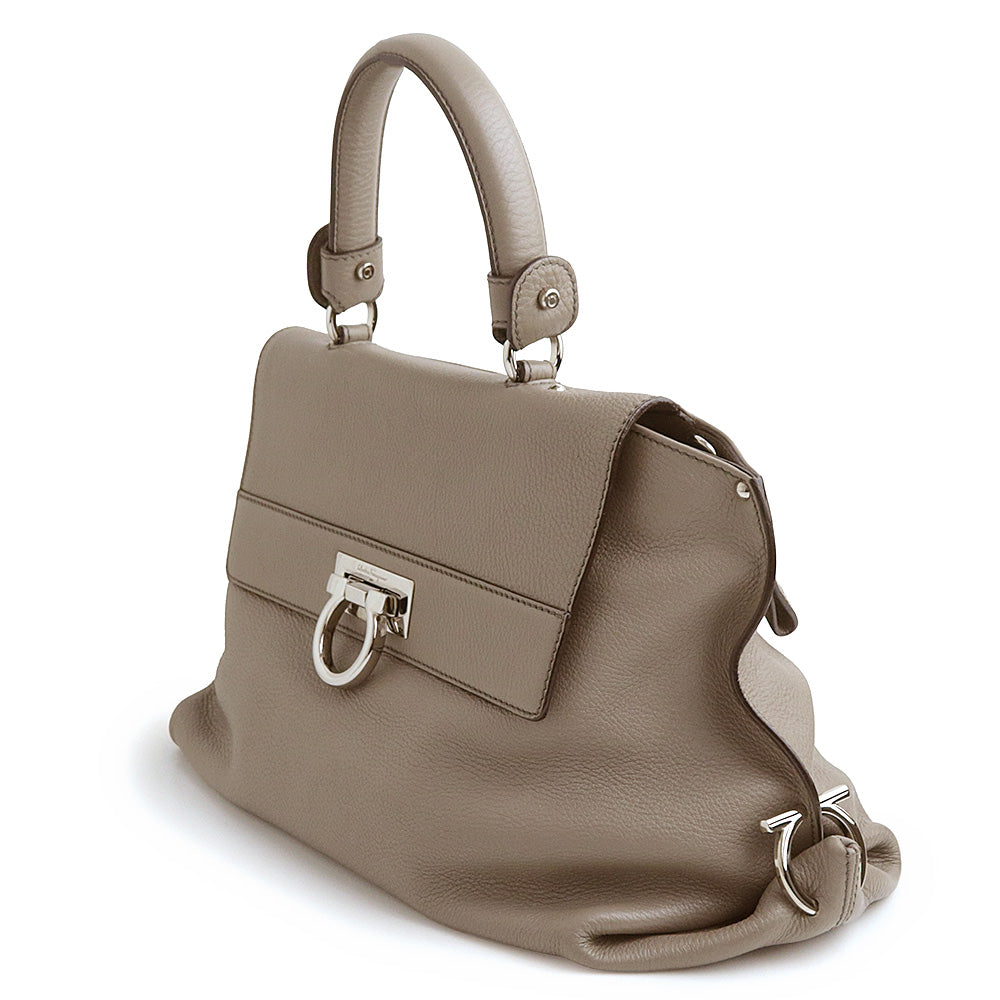 幅広い年齢に人気のフェラガモ「ソフィア」。取り外し可能なショルダーストラップが付属しており、スタイルに合わせてショルダーや斜め掛けも可能です。