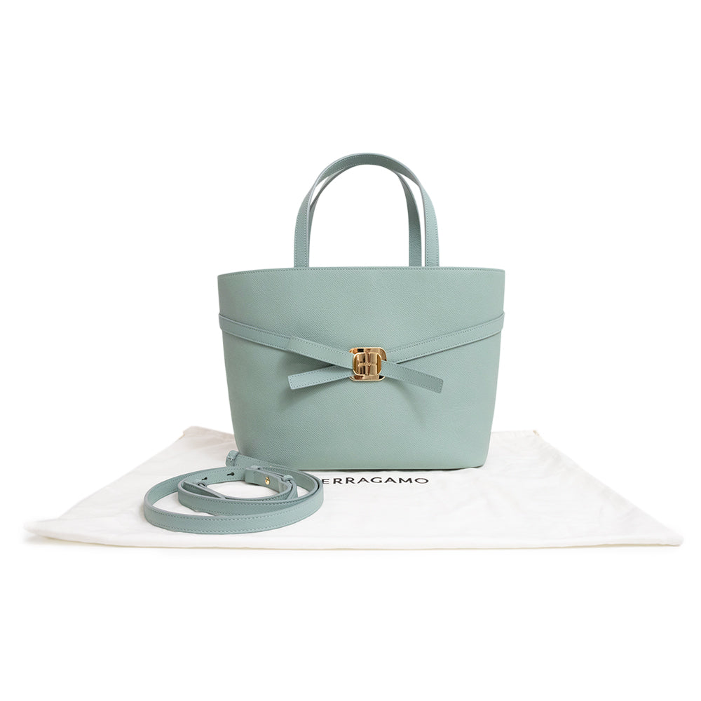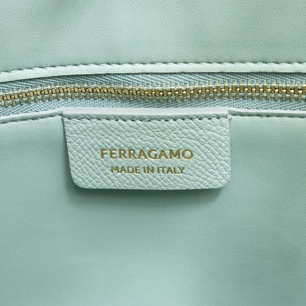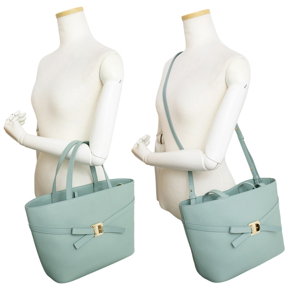【未使用 展示品】サルヴァトーレフェラガモ Salvatore Ferragamo ニューヴァラ プレート トート 2Way ショルダー 斜め掛け ハンドバッグ カーフスキン レザー Lucky Charme ミントグリーン ゴールド金具 218348
