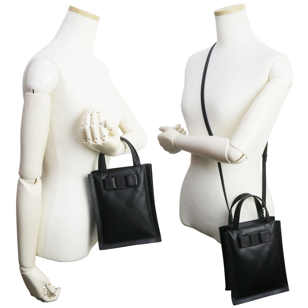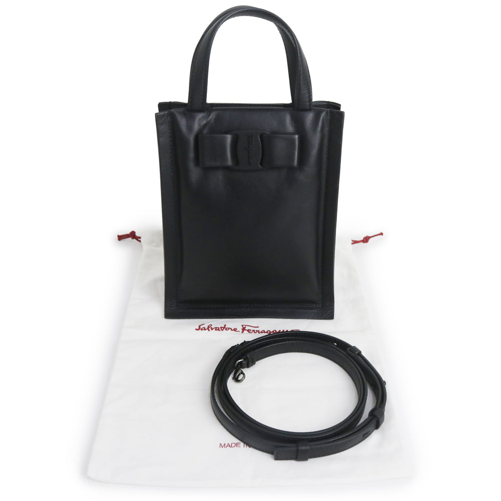【未使用 展示品】サルヴァトーレフェラガモ Salvatore Ferragamo VIVA MINI ビバ ミニ 2WAY ショルダー ハンドバッグ 斜め掛け ヴァラ リボン カーフスキン レザー ブラック 21 2988