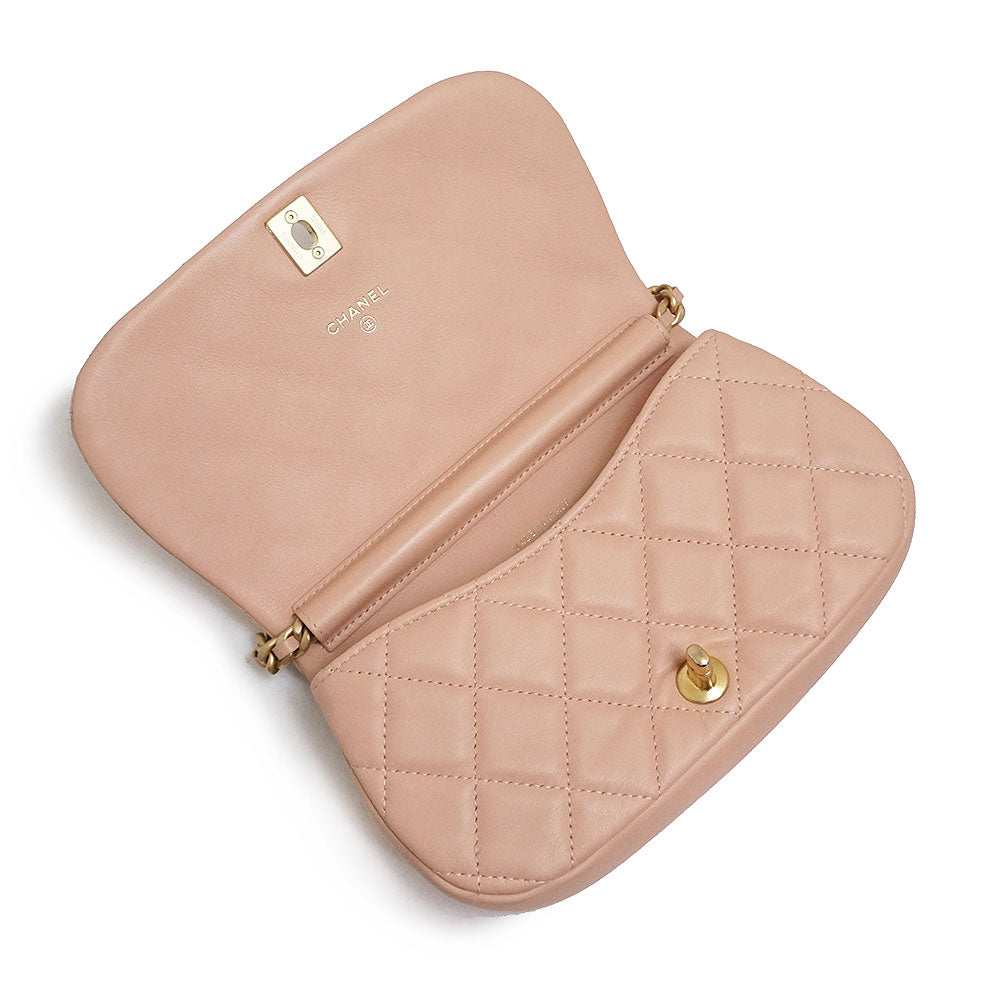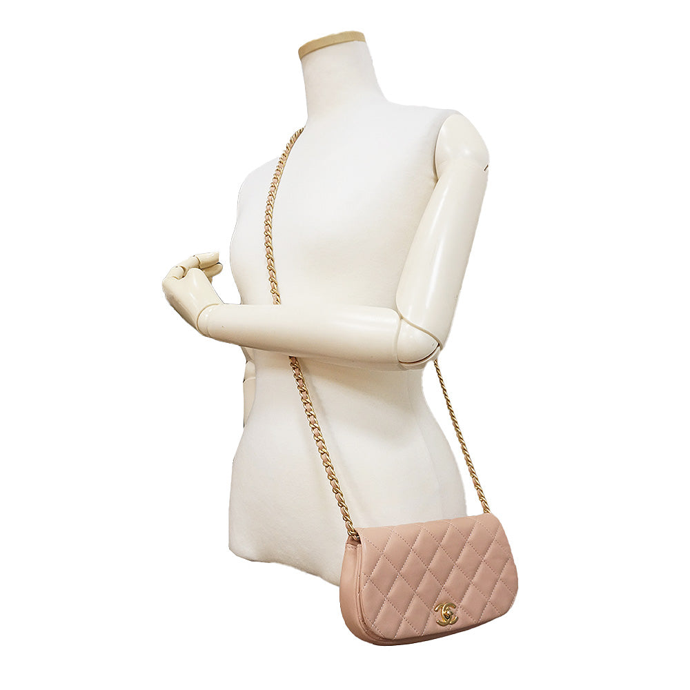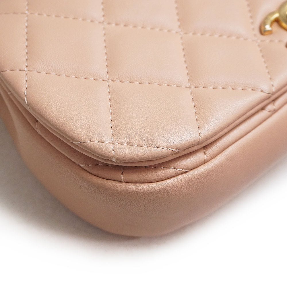【未使用保管品】シャネル CHANEL ココマーク マトラッセ チェーン クラッチ ミニ ショルダーバッグ 斜め掛け カーフスキン レザー ピンク アンティークゴールド金具 AP2358