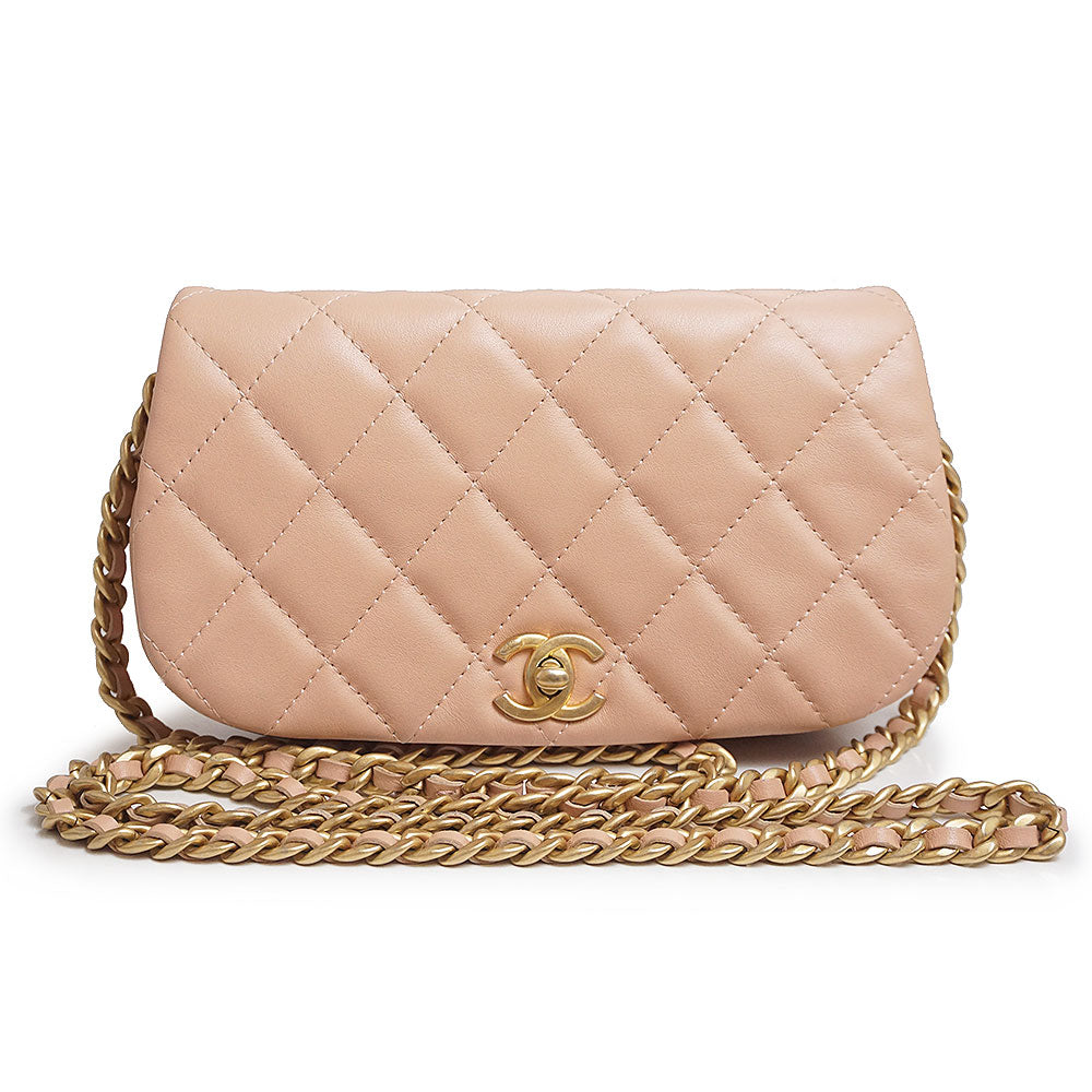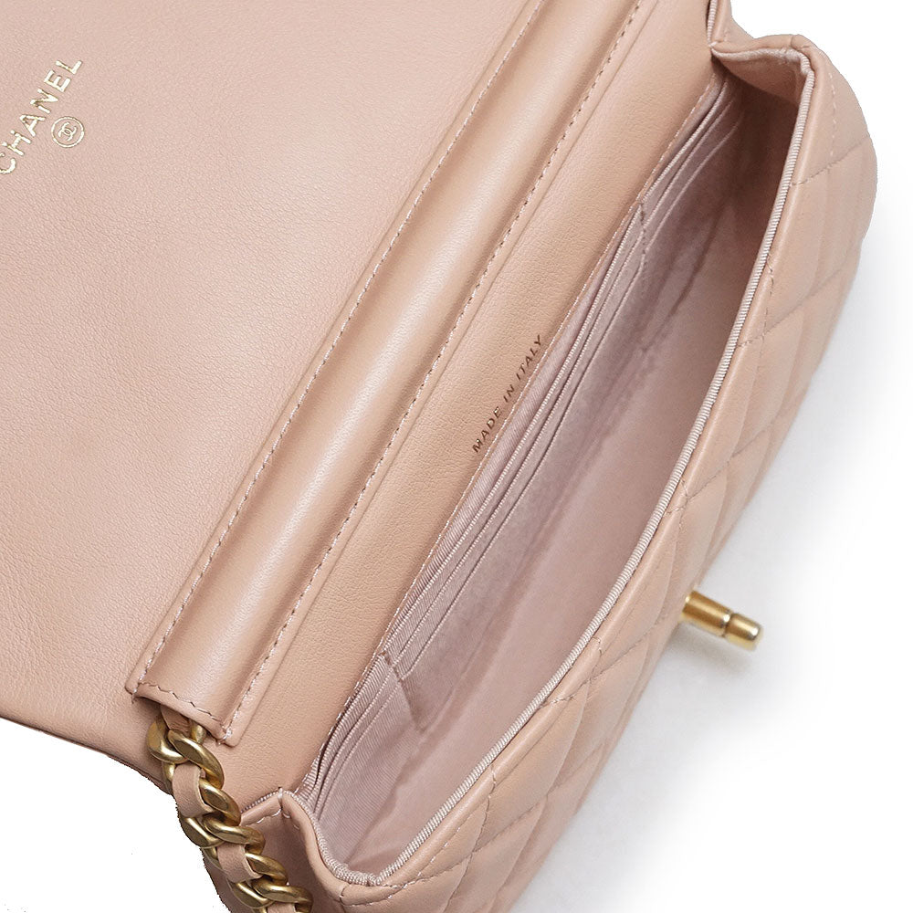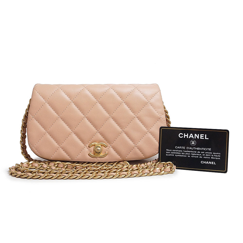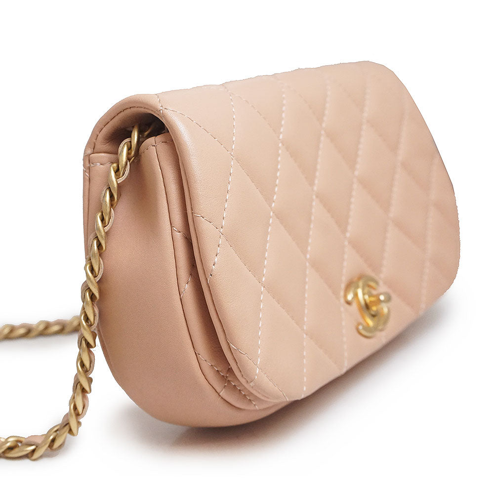 【未使用保管品】シャネル CHANEL ココマーク マトラッセ チェーン クラッチ ミニ ショルダーバッグ 斜め掛け カーフスキン レザー ピンク アンティークゴールド金具 AP2358