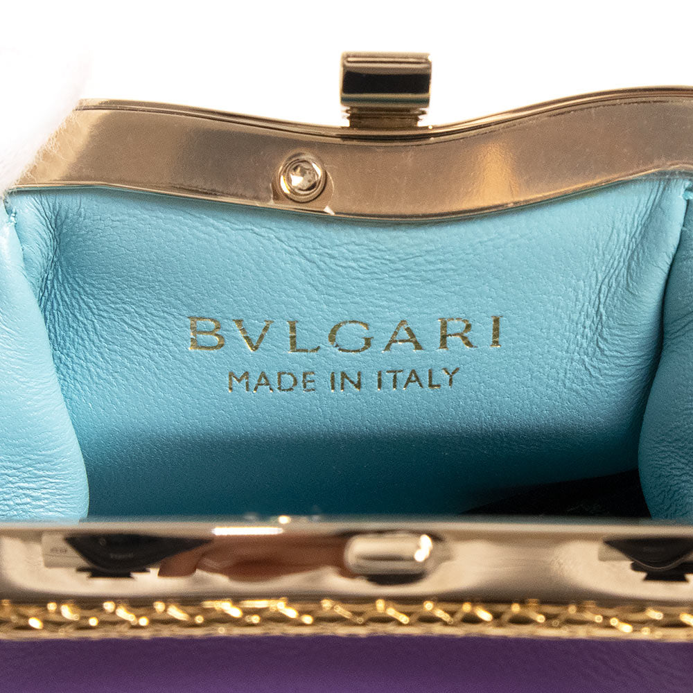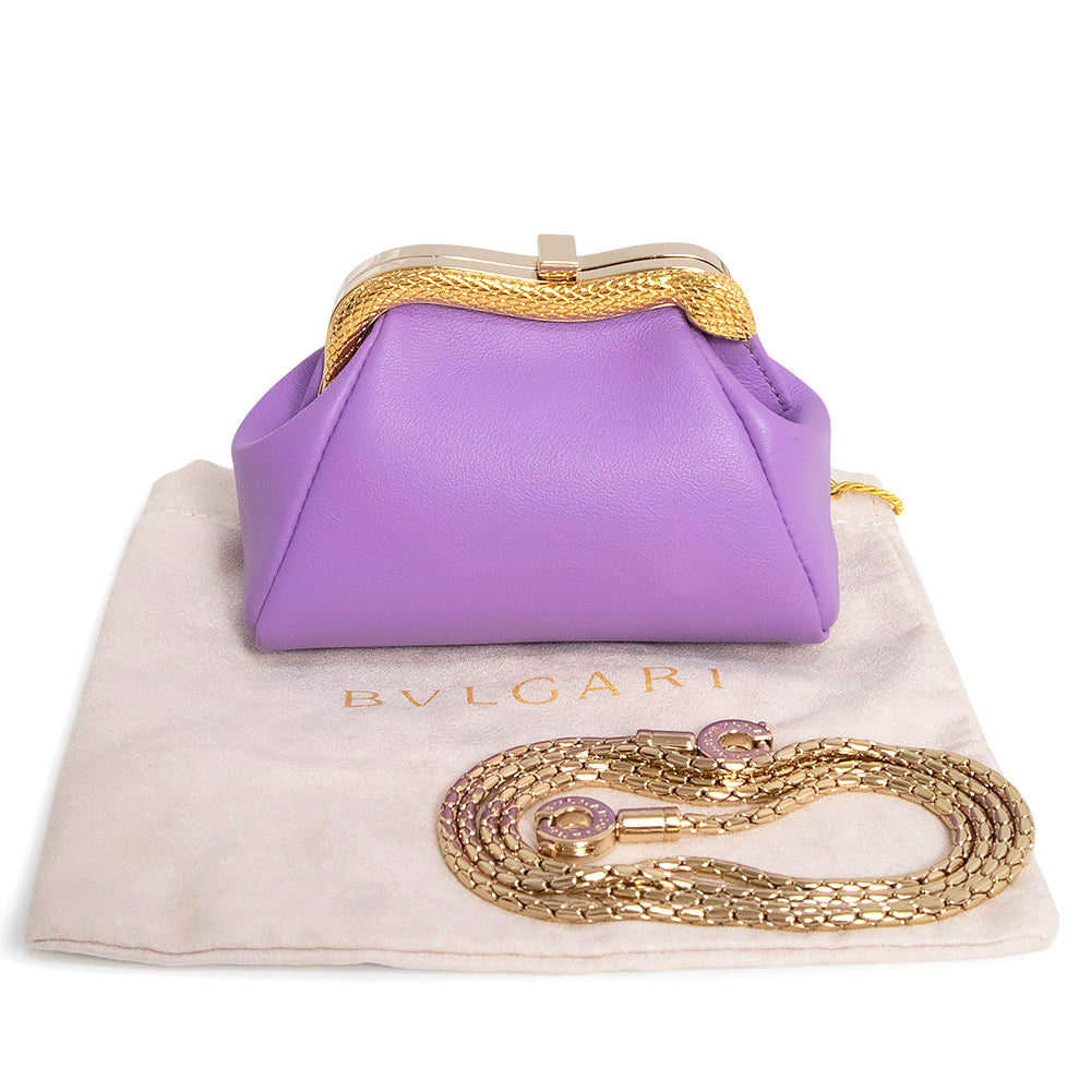 【未使用 展示品】ブルガリ BVLGARI セルペンティーヌ マイクロ ポーチ チェーン ショルダーバッグ 斜め掛け スムースカーフレザー アメジスト パープル ゴールド金具