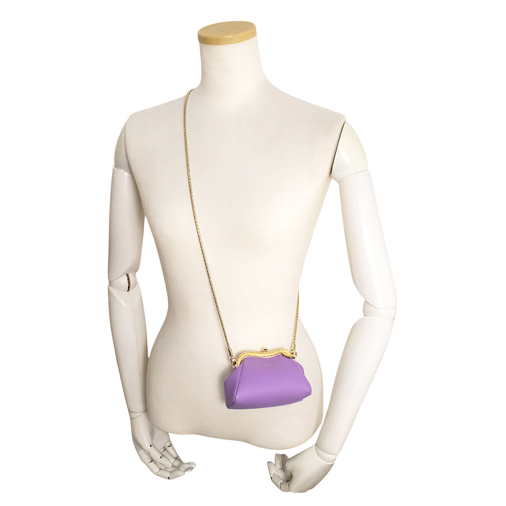 宝石にインスパイアされた上品なカラーに彩られたナノサイズのバッグ。リップや鍵などの細かいものを収納できます。スムースカーフのしなやかな質感にセルペンティやチェーンストラップのメタリックな輝きが調和し、まるでアクセサリーのように装いを飾ってくれるバッグです。 |