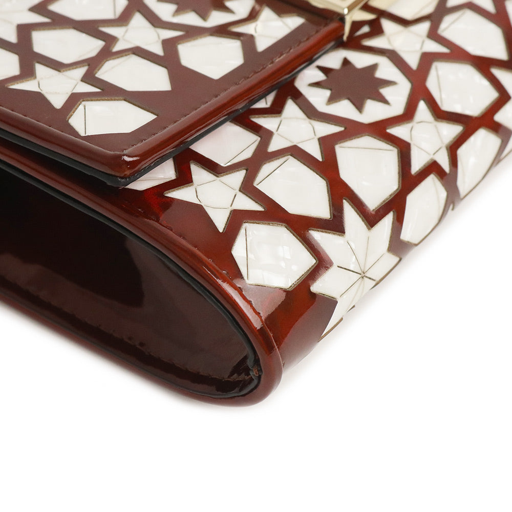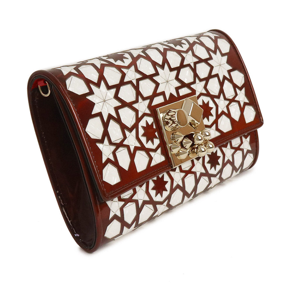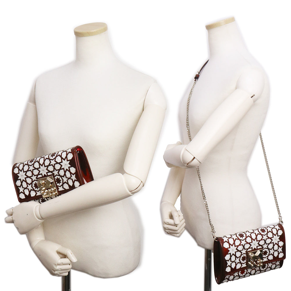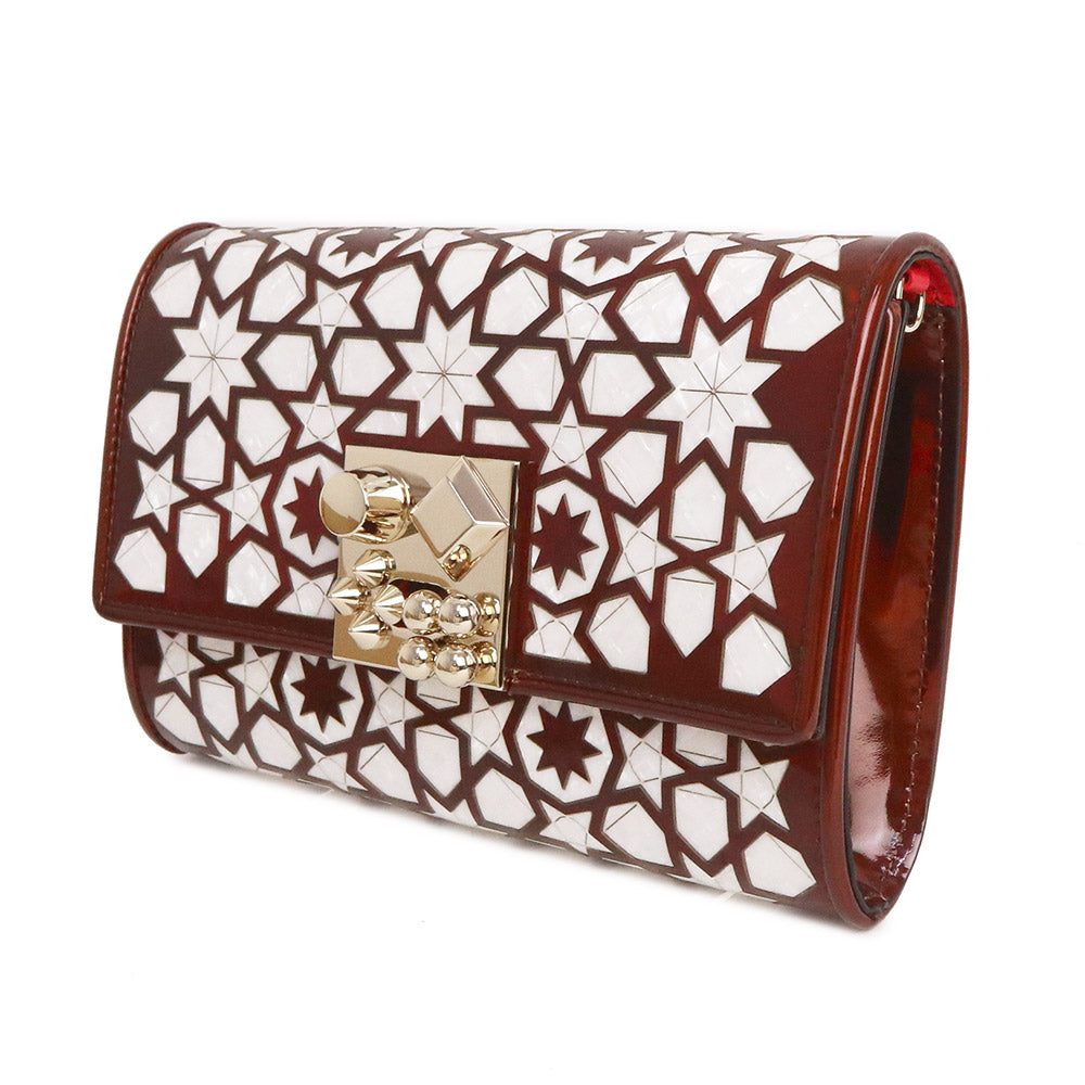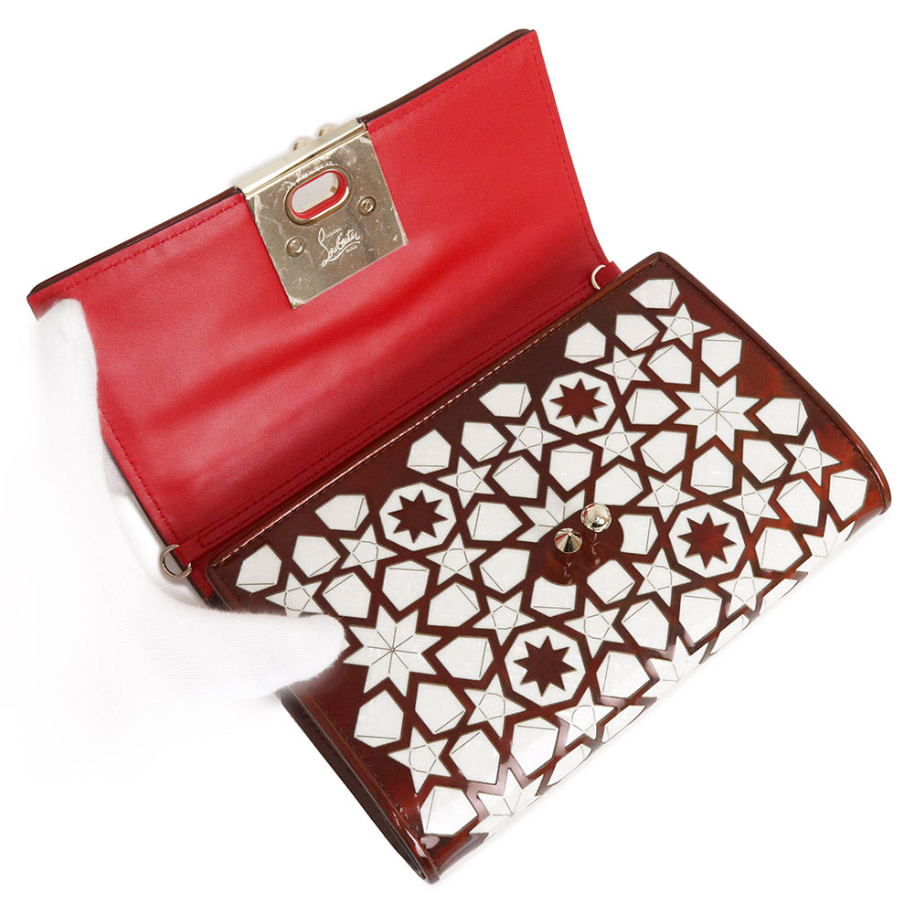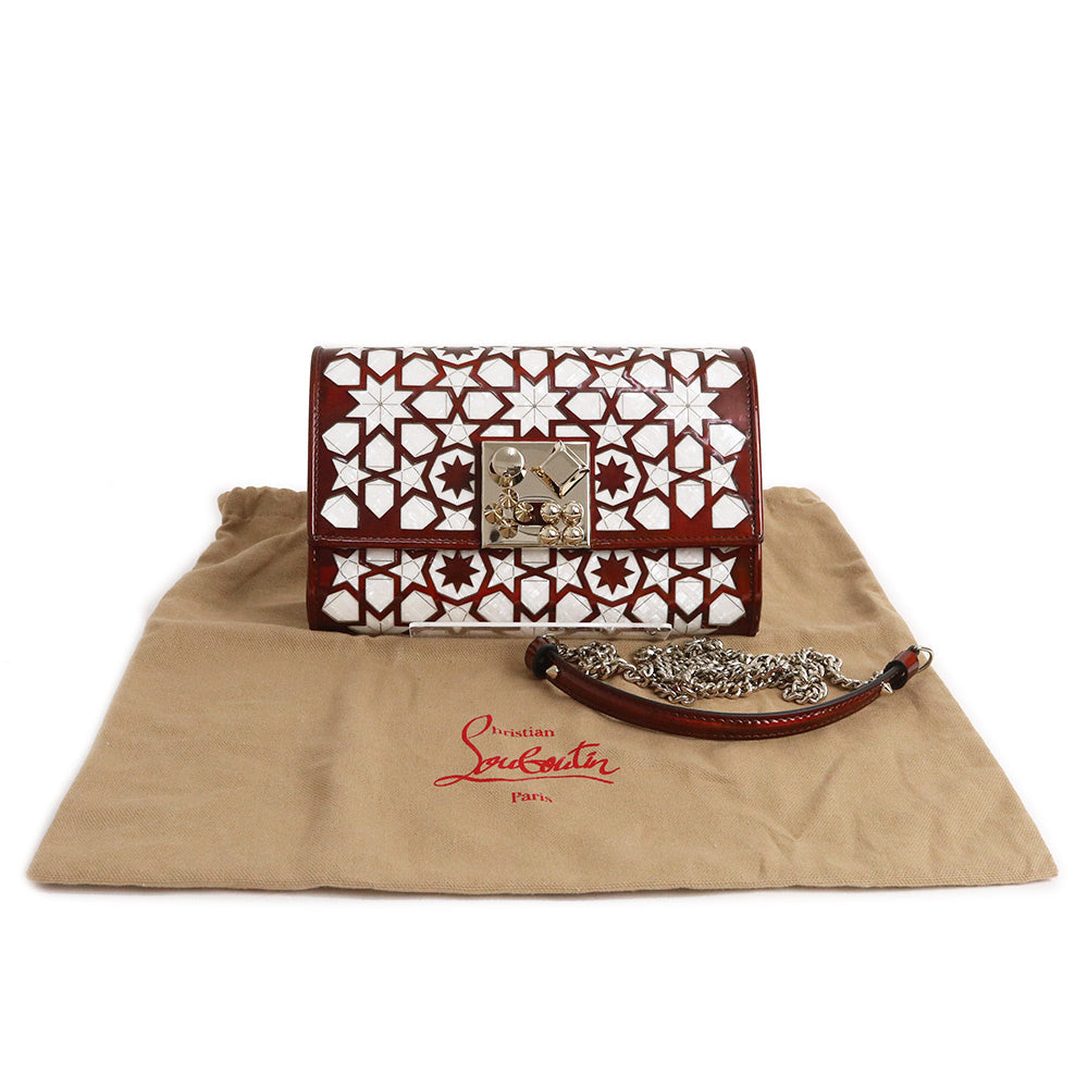 【未使用 展示品】クリスチャンルブタン Christian Louboutin Loubi Mystery Carasky clutch ルビ ミステリー マルケトリー チェーン ショルダーバッグ 斜め掛け クラッチバッグ パテントレザー マルチカラー 茶 白 バーボンブラウン ホワイト 3225302T627