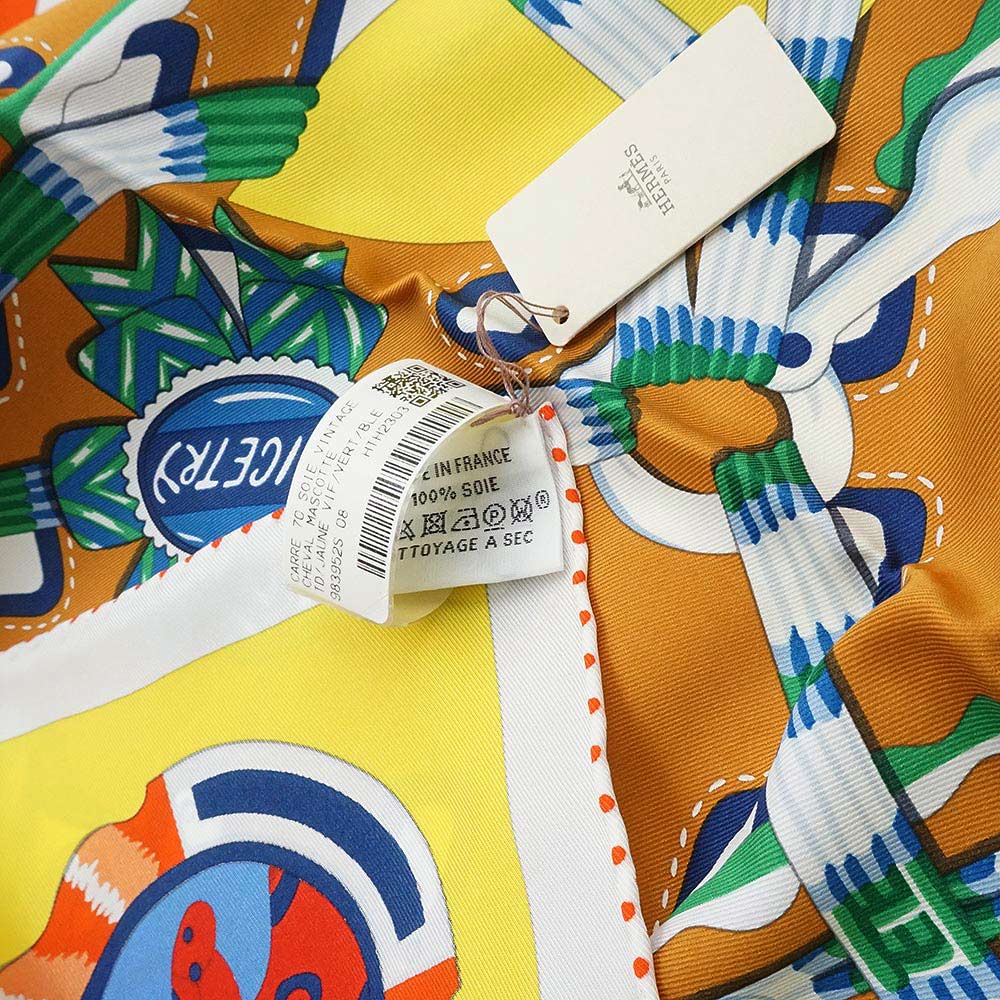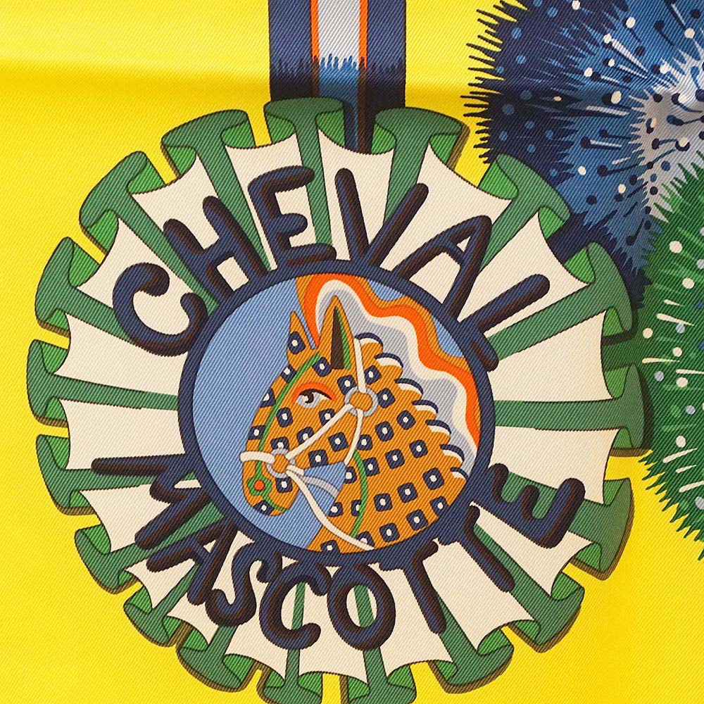 【新品・未使用品】エルメス HERMES カレ 70 シュヴァル マスコット Cheval Mascotte スカーフ シルク100% ジョーヌヴィフ ヴェール ブルー イエロー 箱付
