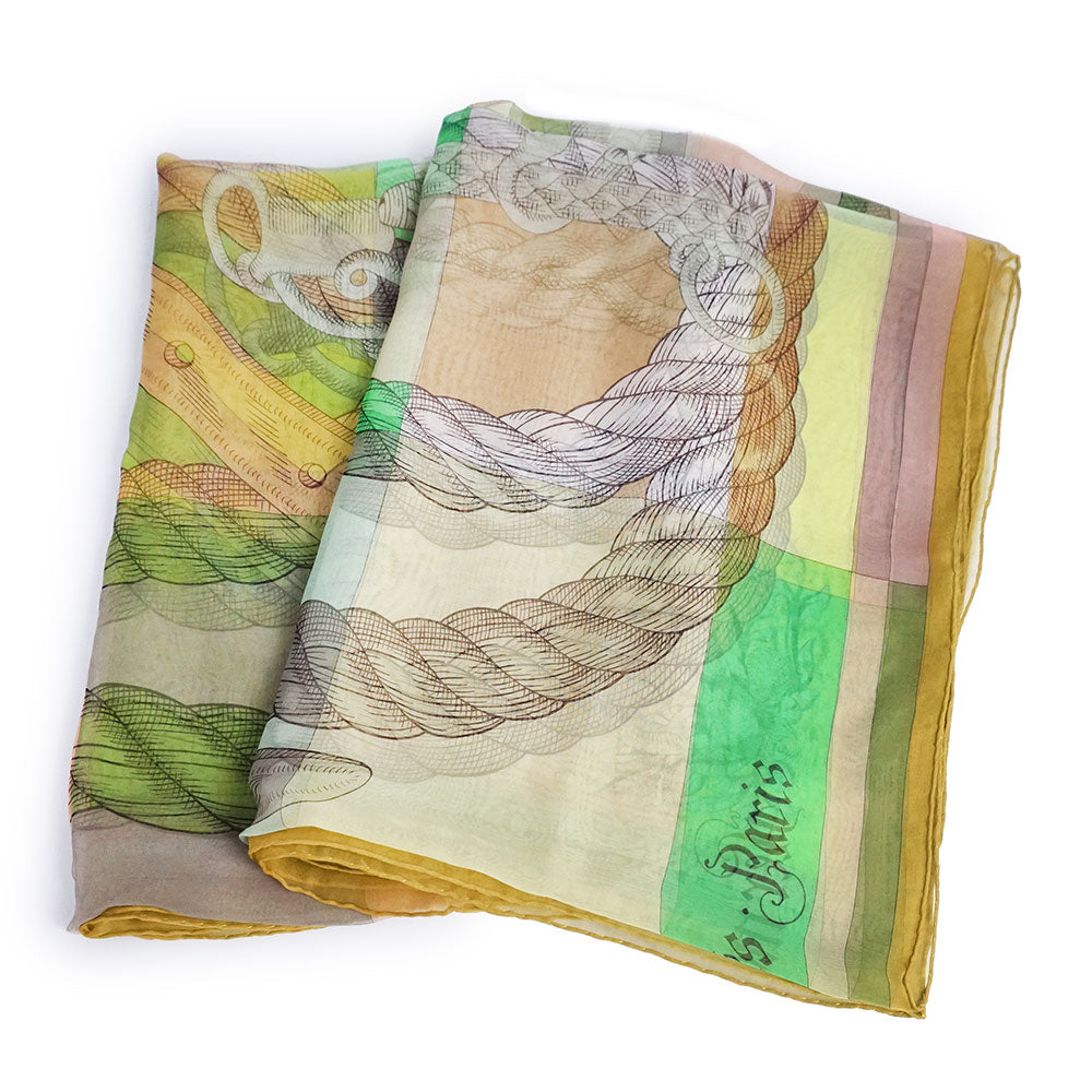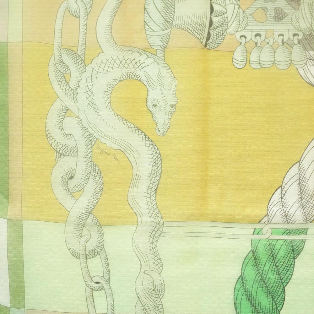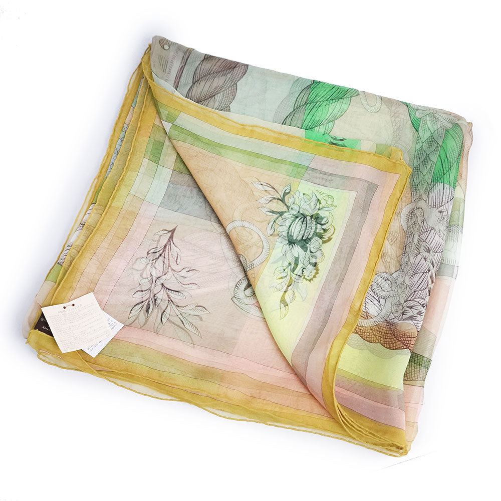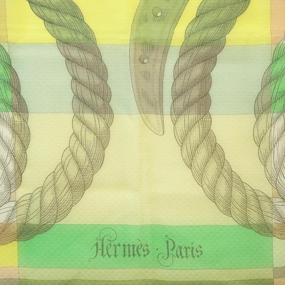 【新品・未使用品】エルメス HERMES カレジェアン 140 モスリン Della Cavalleria デッラ カヴァッレリア スカーフ ショール ストール シフォン シルク100% ヴェールアブサン グリーン イエロー 箱付