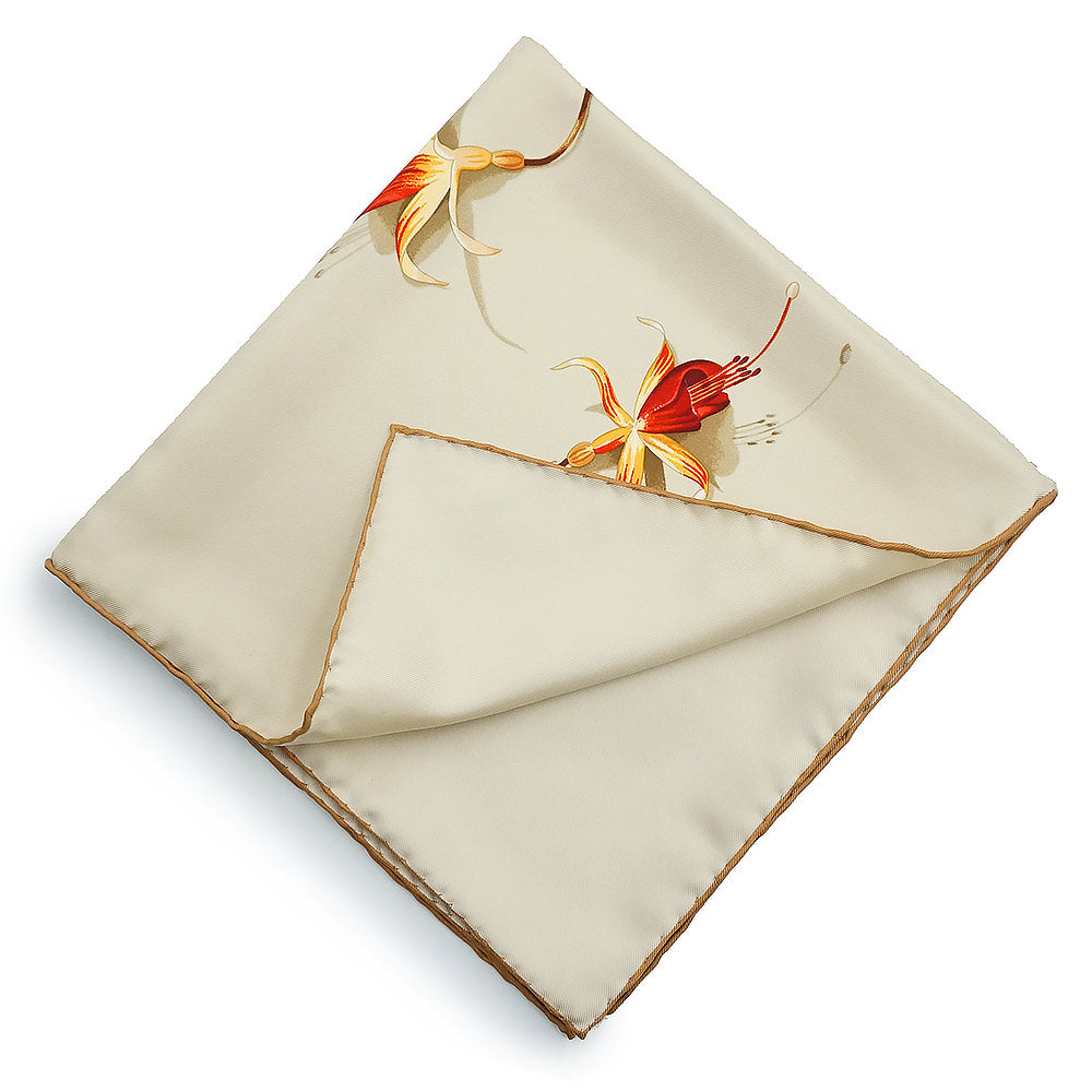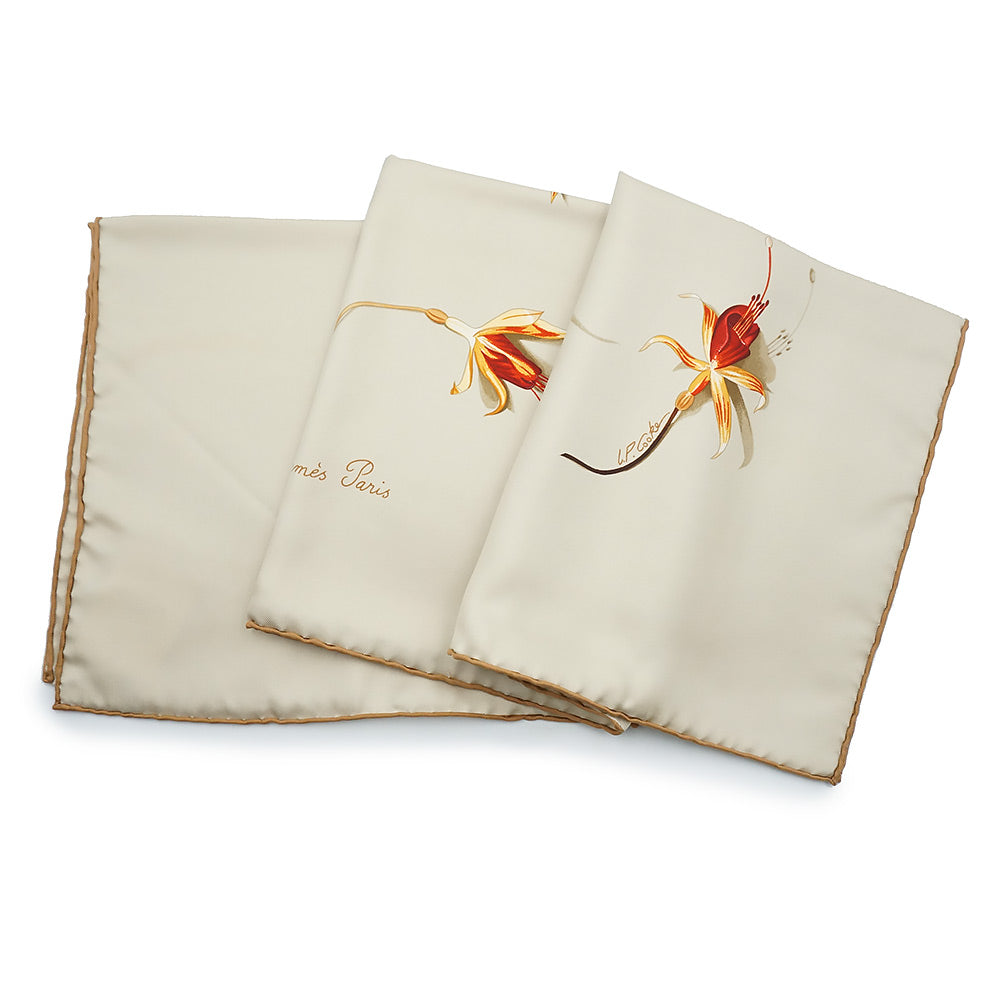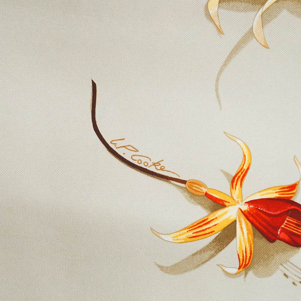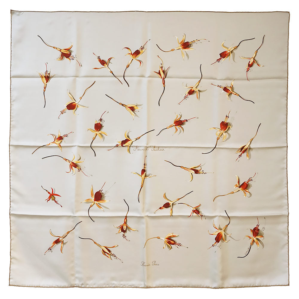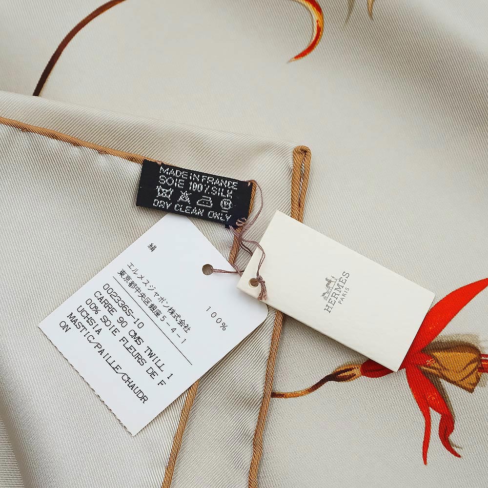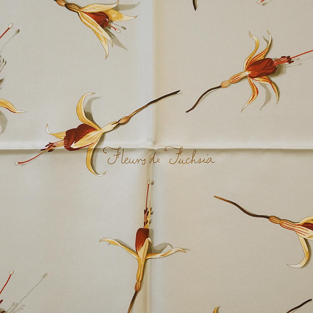 【新品・未使用品】エルメス HERMES カレ 90 Fleurs De Fuchsia フクシャの花 スカーフ シルク100% マスティック パイユ ショー ドロン ベージュ 箱付