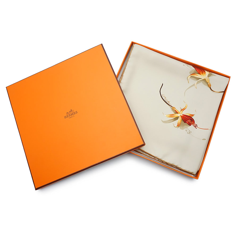 エルメス定番人気の大判シルクスカーフ、カレ90『Fleurs De Fuchsia フクシャの花』。エルメスならではの美しいデザインと品質の高さからエルメスのスカーフコレクターも世界中にいるほど。首元にはもちろん、バッグのアクセント等、色々な用途にお使いいただけます。 |