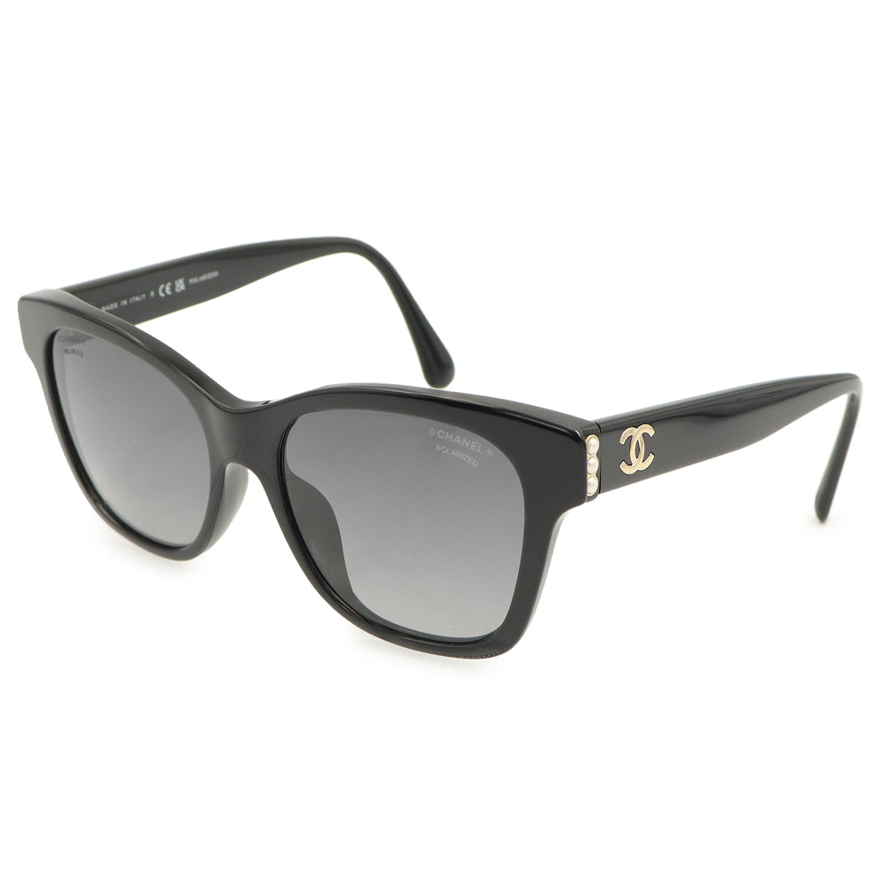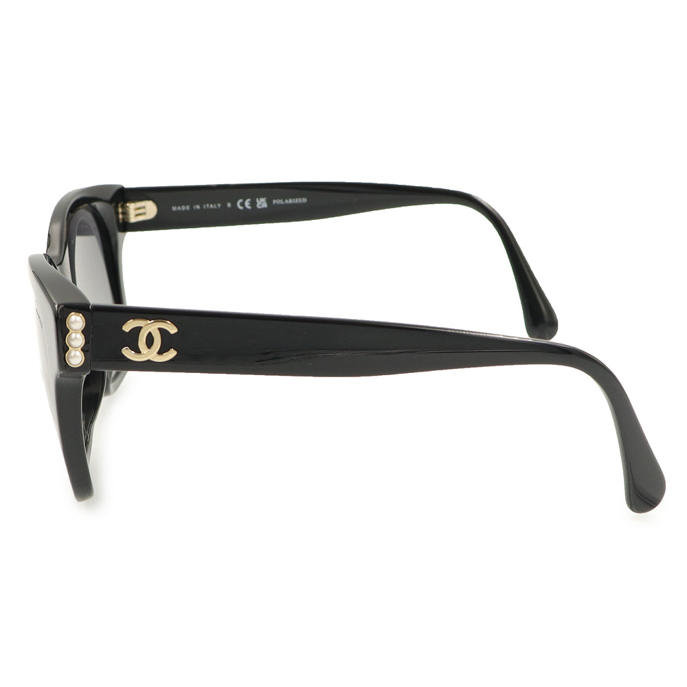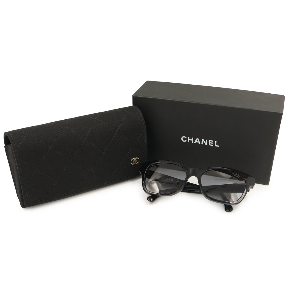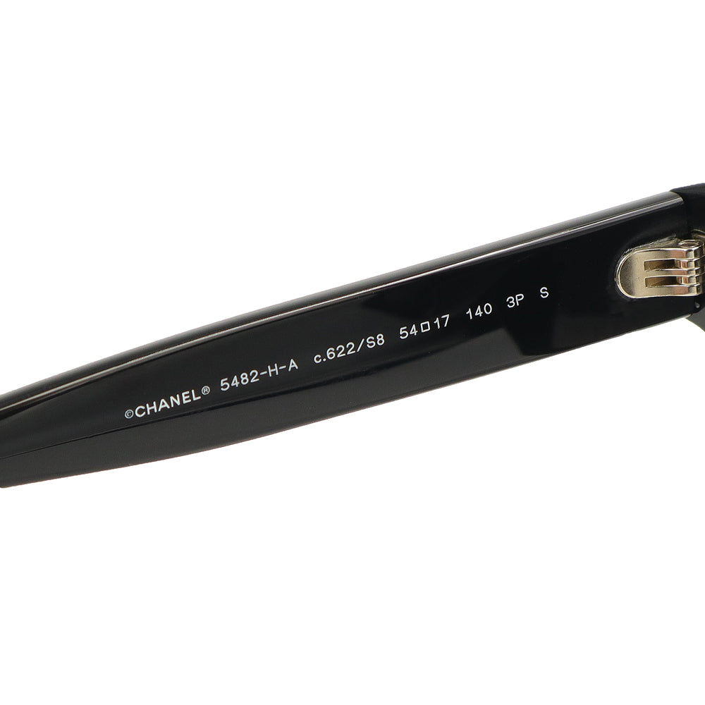 【美品】シャネル CHANEL ココマーク パール スクエア シェイプ アイウェア サングラス メガネ 眼鏡 アセテート ブラック ゴールド金具 5482-H-A