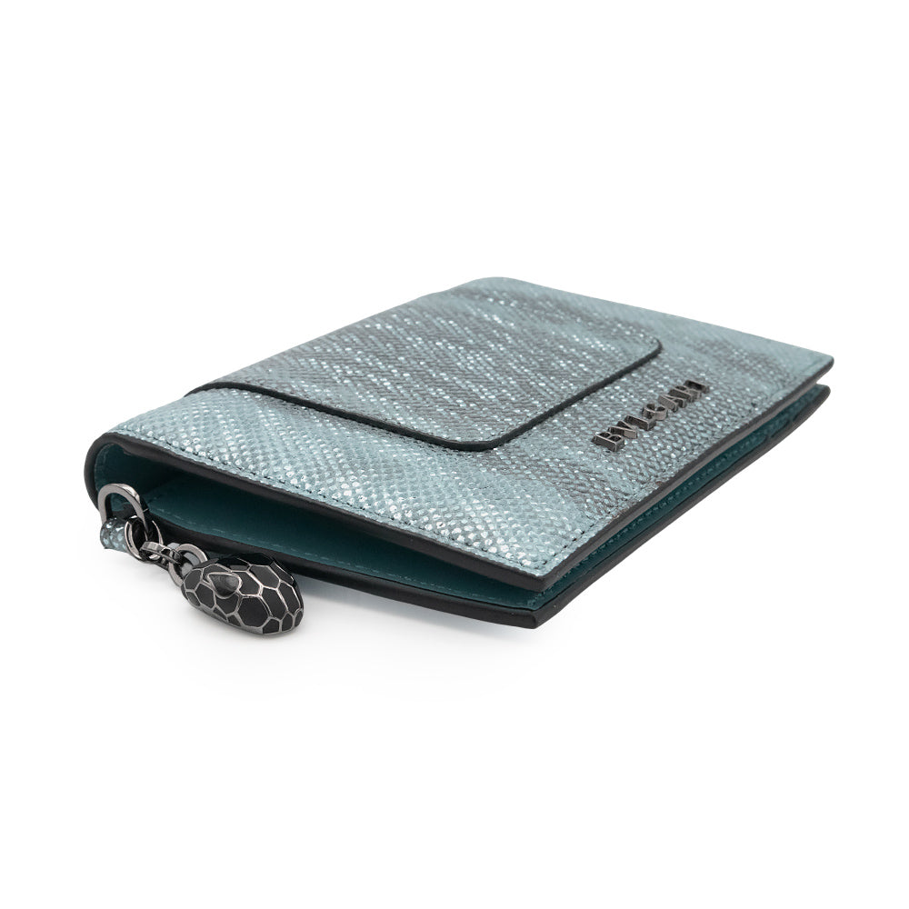 【未使用 展示品】ブルガリ BVLGARI セルペンティ フォーエバー カードケース 名刺入れ 定期入れ パスケース カルングレザー ブルー ダークシルバー金具