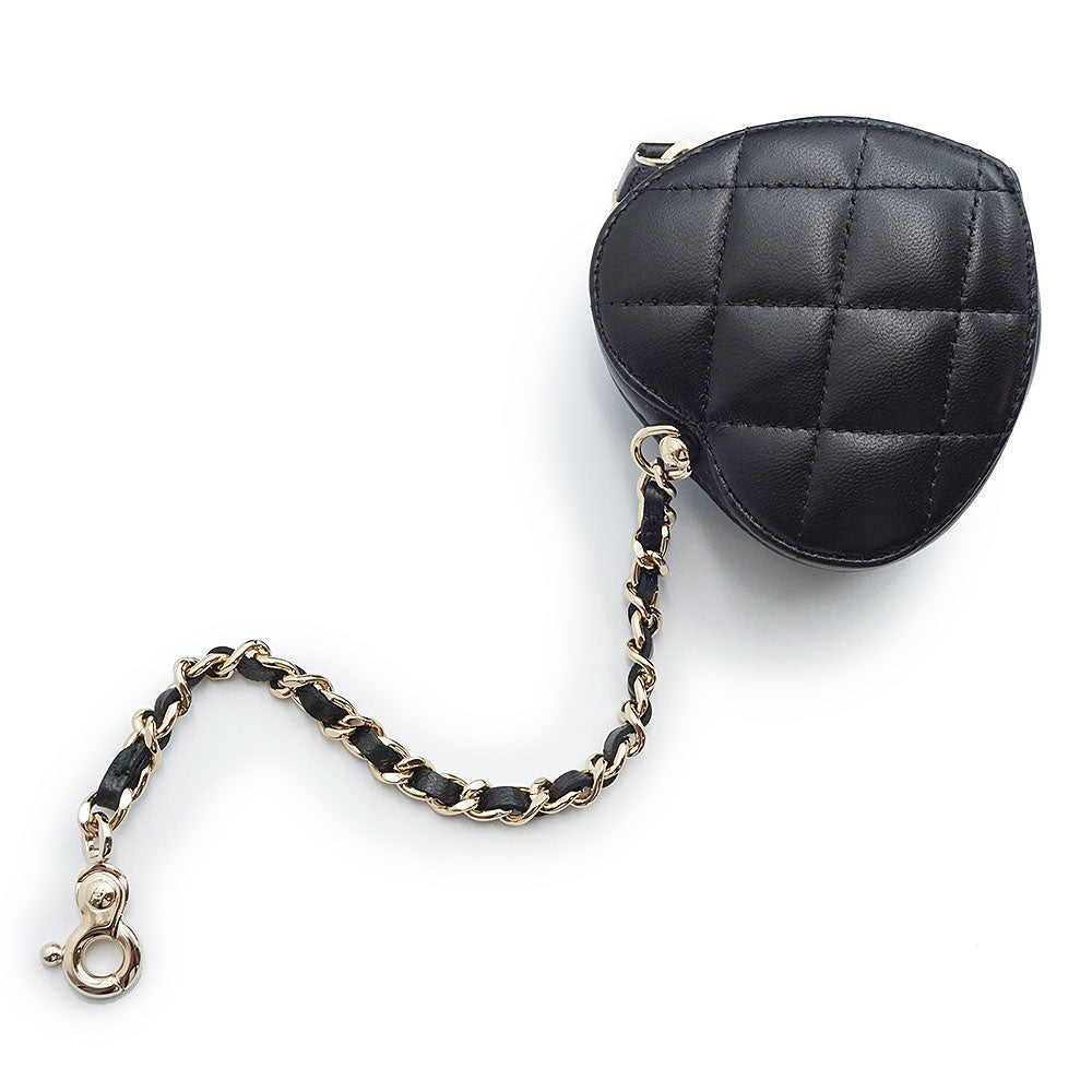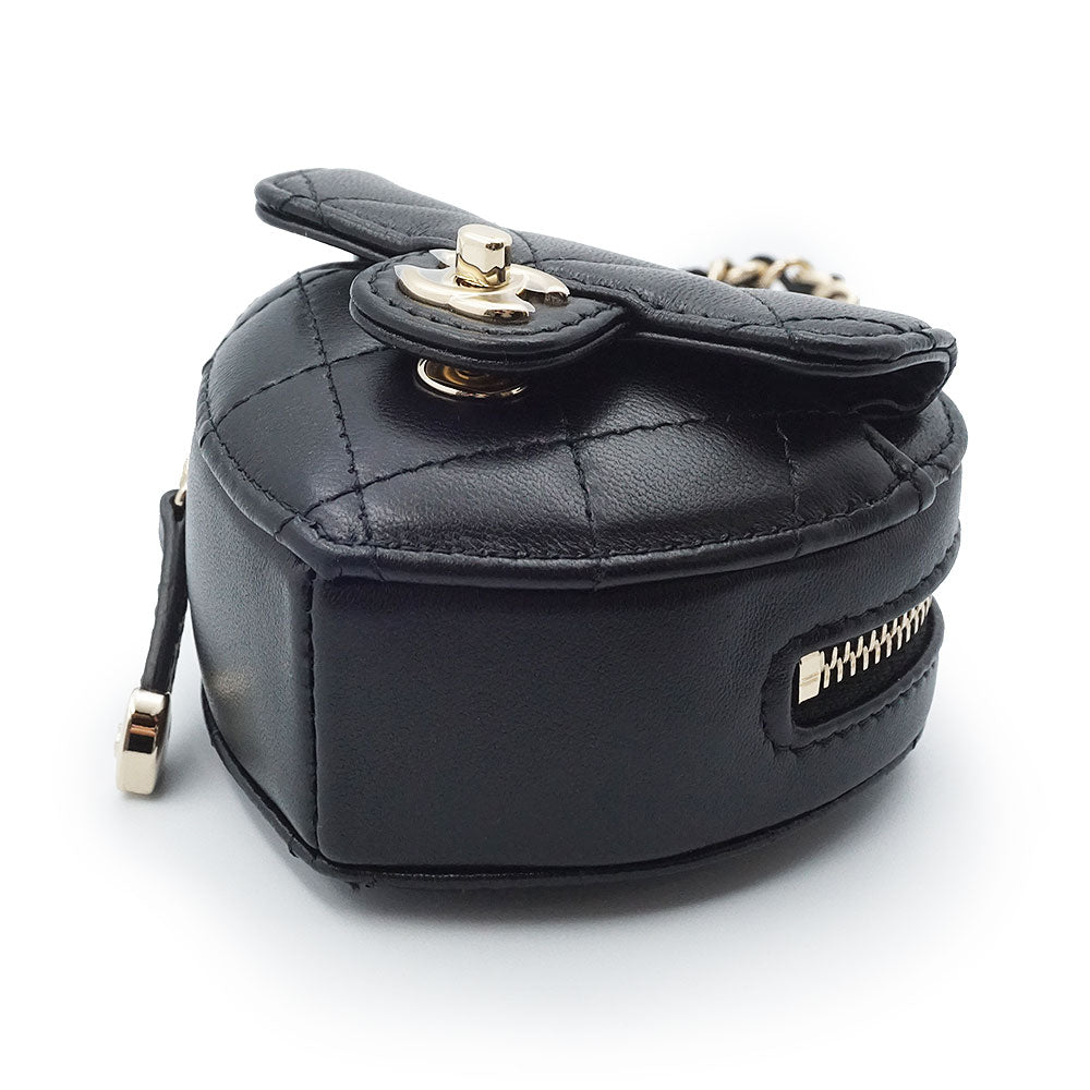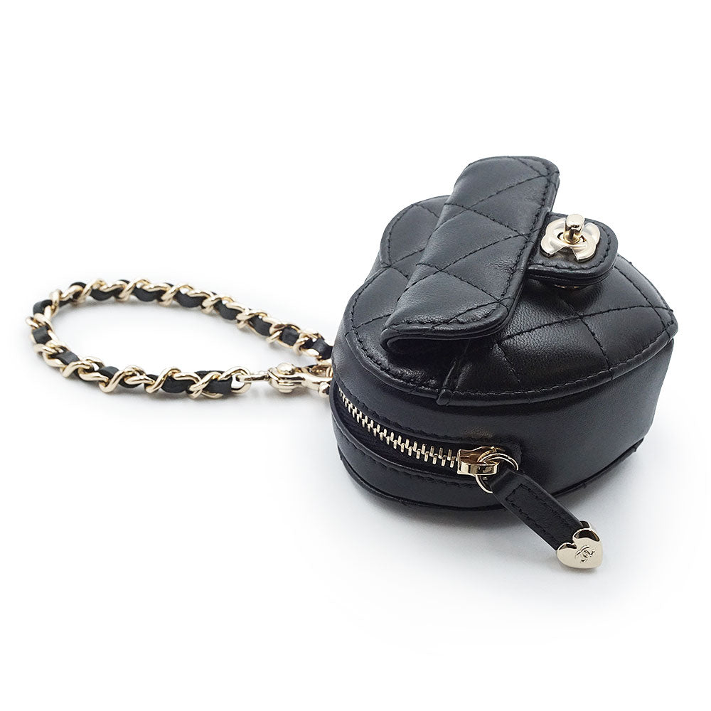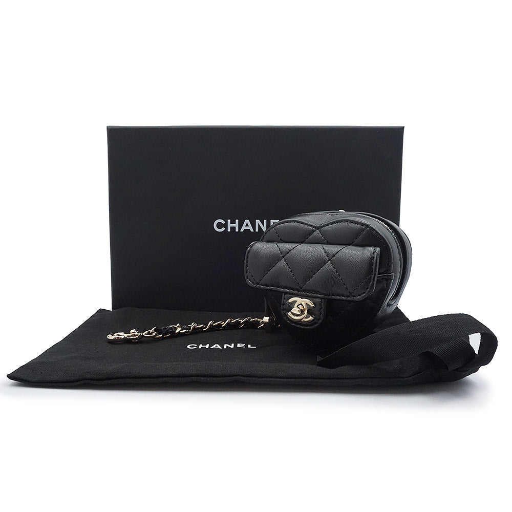 【新品・未使用品】シャネル CHANEL ミニ ハート チェーン バッグチャーム ポーチ コインケース 小銭入れ 財布 ラムスキン レザー ブラック ゴールド金具 AP4838 箱付