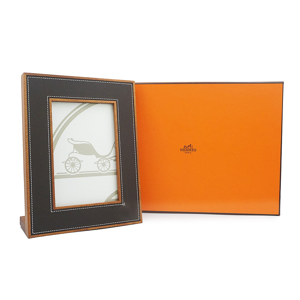 【新品・未使用品】エルメス HERMES プレイヤード PM 縦型 フォトフレーム フォトスタンド 写真立て トリヨンH レザー マホガニー材 ウッド エベンヌ ブラウン 箱付