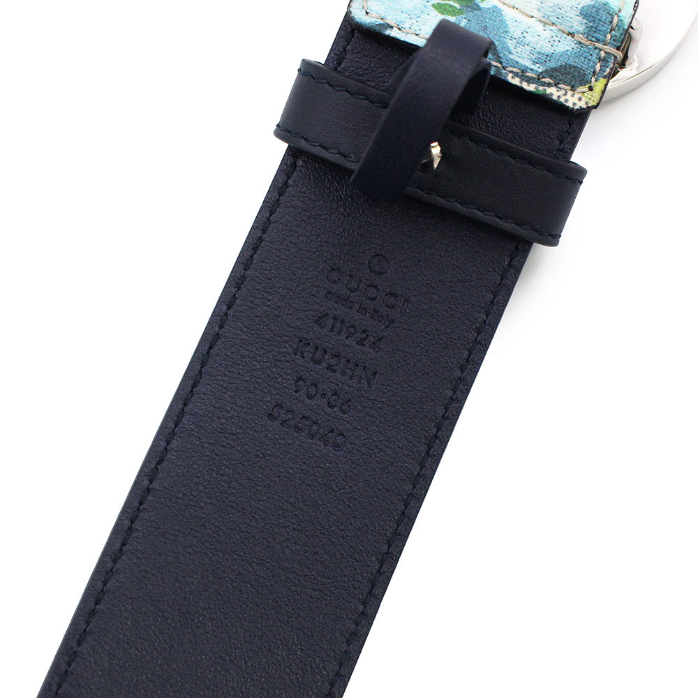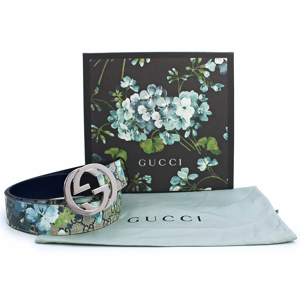 【新品・未使用品】グッチ GUCCI インターロッキングG バックル GG ベルト 40MM #90 GGブルームススプリーム ブルー ベージュ シルバー金具 411924 箱付