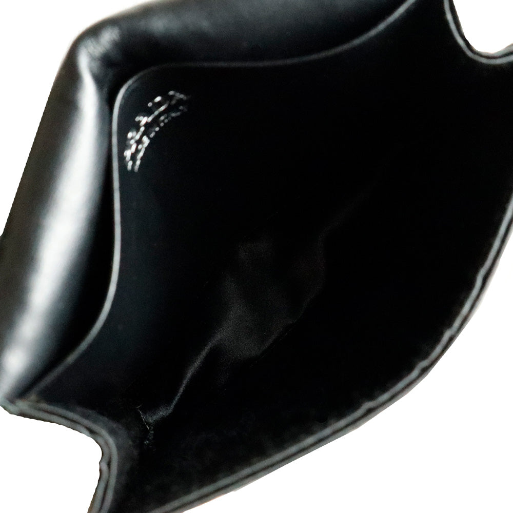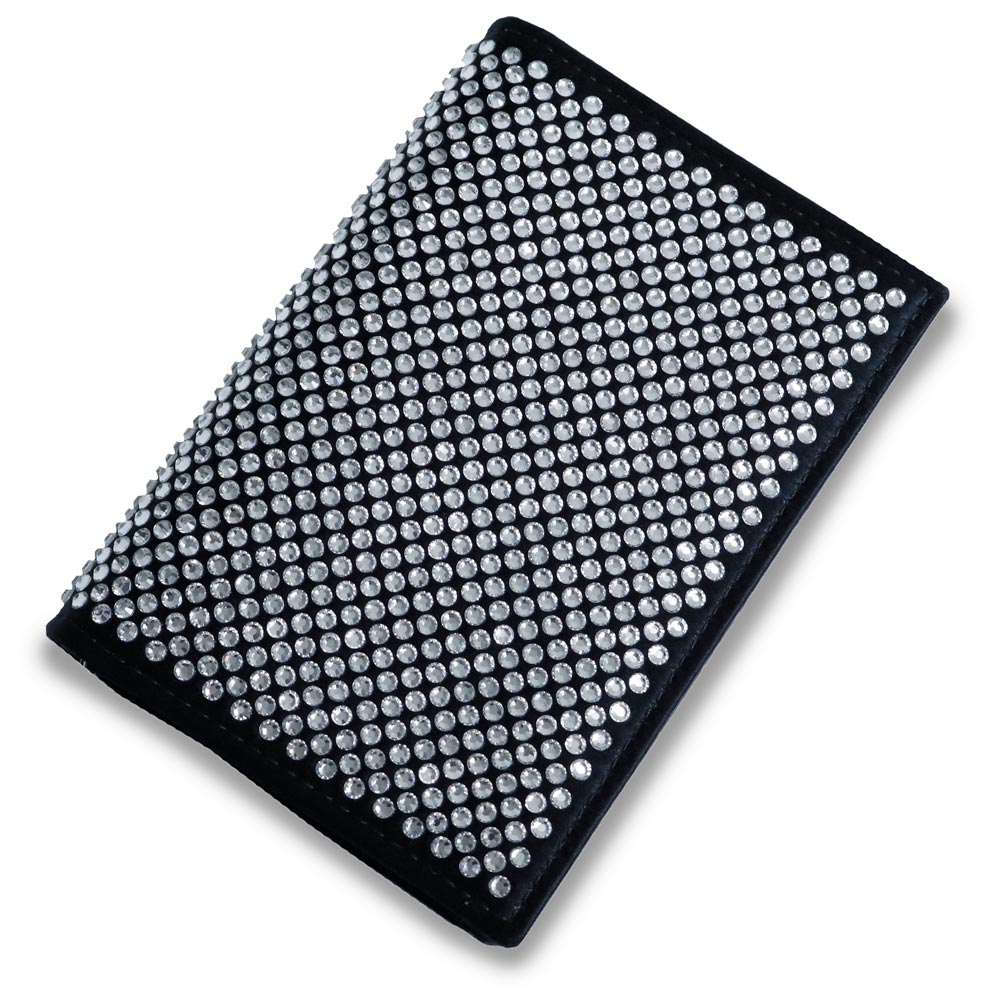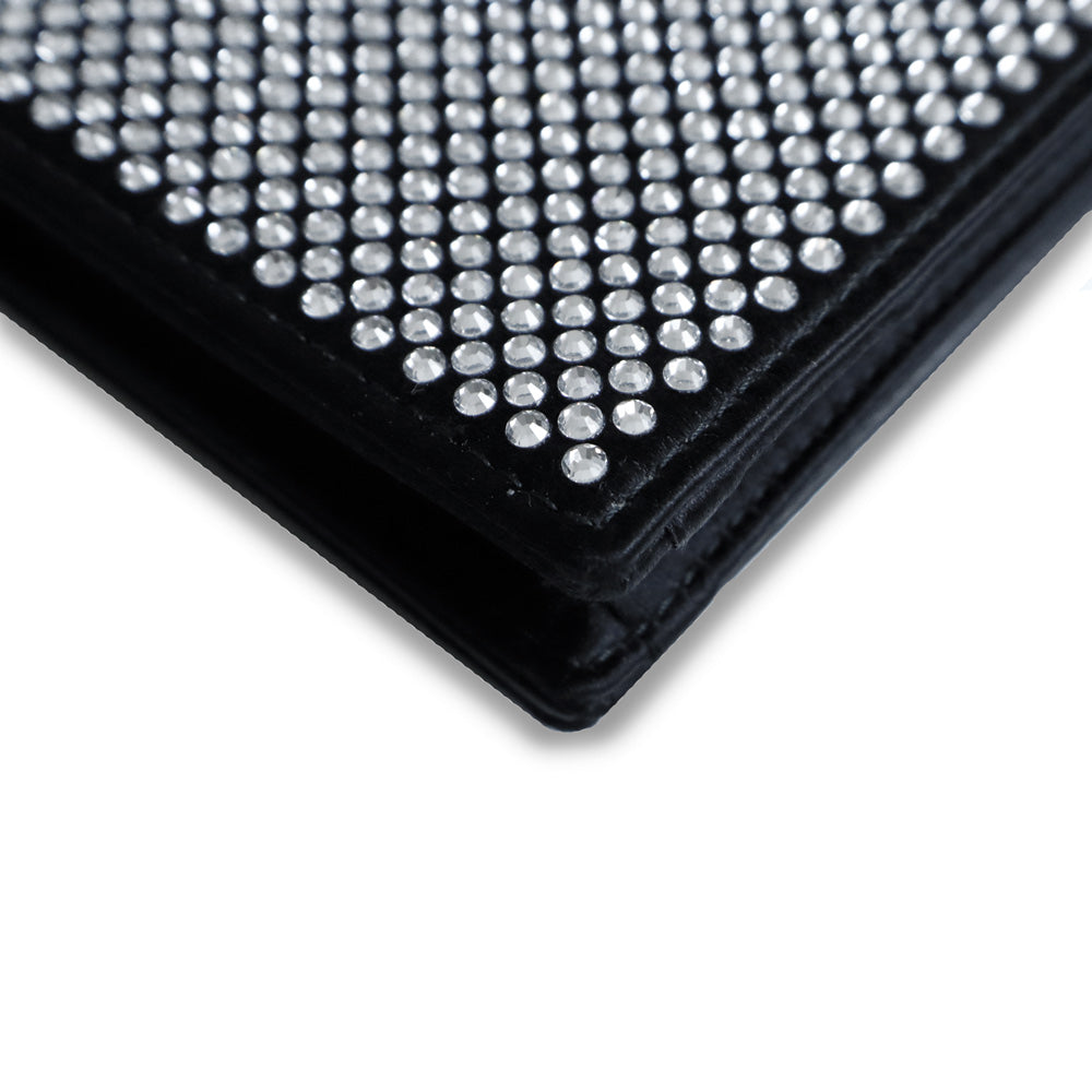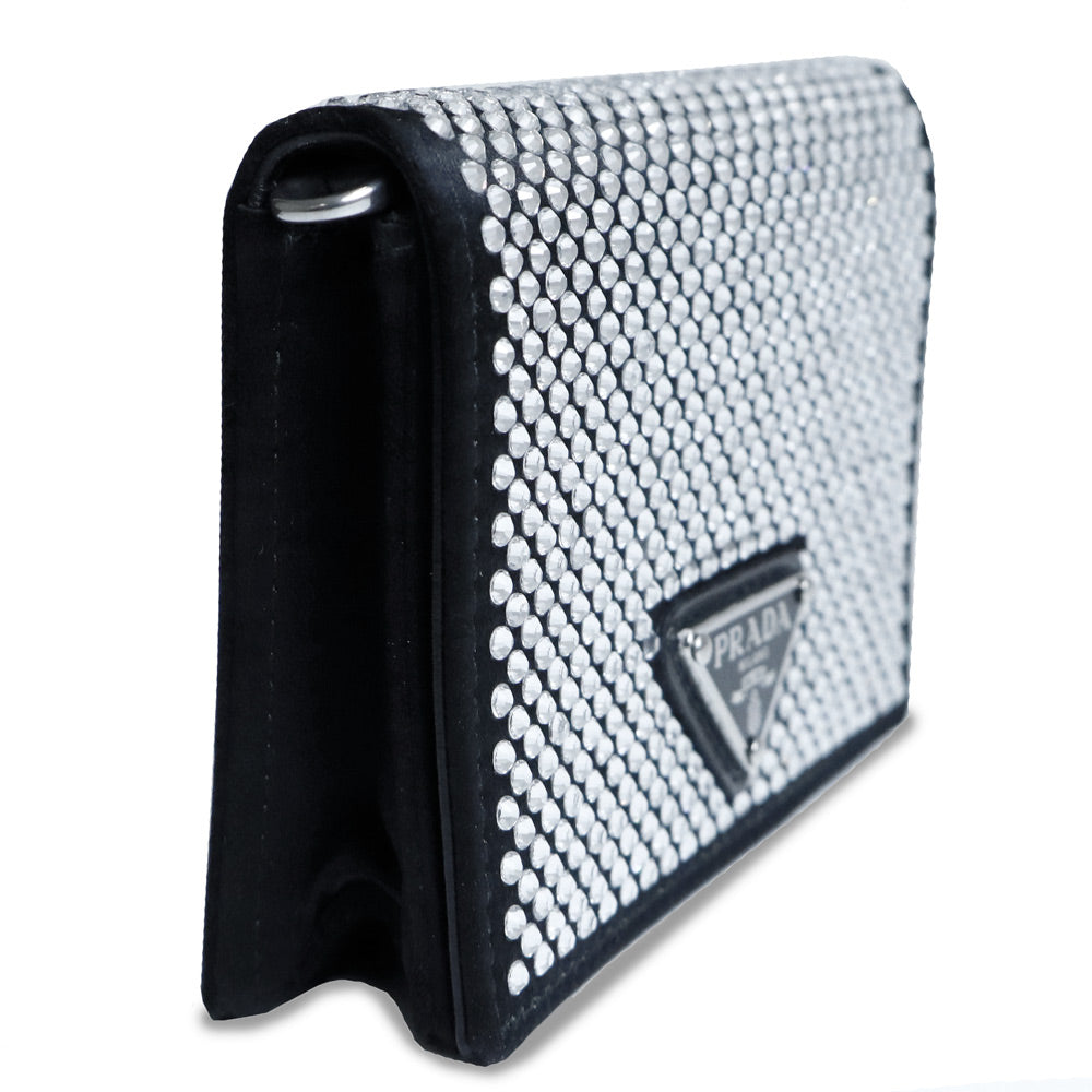 【未使用 展示品】プラダ PRADA ショルダーストラップ付 クリスタル カードケース 名刺入れ 定期入れ パスケース サテン シルク ラインストーン ブラック シルバー金具 1MR024 箱付