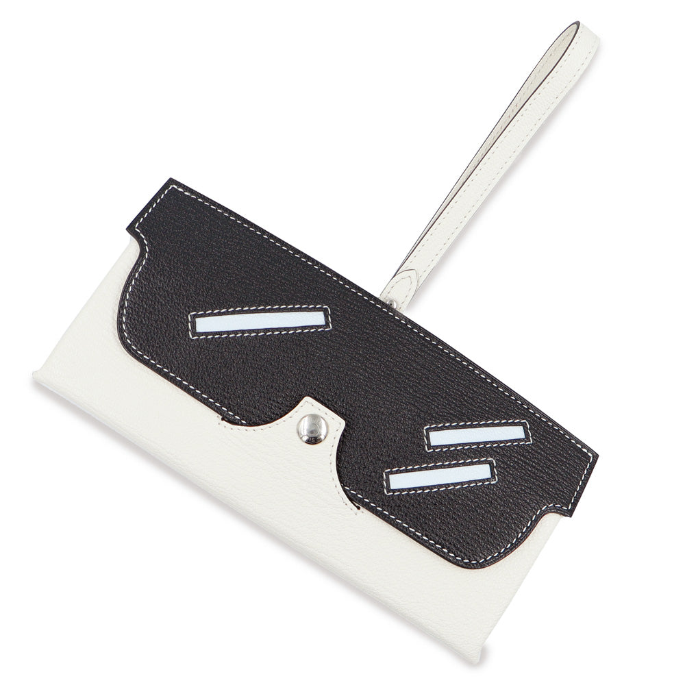 エルメスの「イン・ザ・ループ ウィンク」シェブルミゾル メガネケースは、柔らかく上質な山羊革シェブルミゾルを使用し、前面には金属補強とスナップボタンが備えられていて開閉が安定しており、革のパーツで表現された“ウィンクした目”や“鼻”“光の反射”が遊び心あふれるデザインを作り出しいるアイテムです。 |