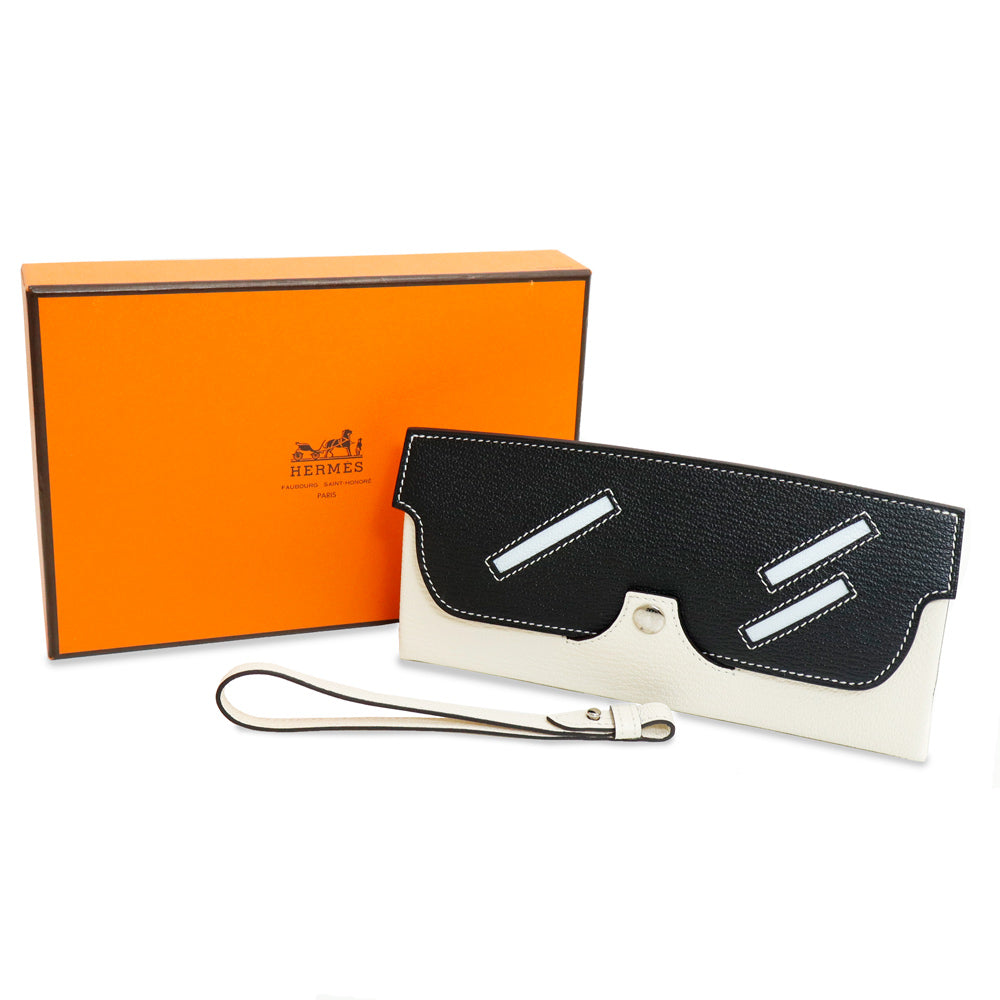 【新品・未使用品】エルメス HERMES インザループ ウィンク メガネケース シェーブルミゾール レザー ナタ ノワール ケブラチョ マント ホワイト シルバー金具 U刻印 箱付