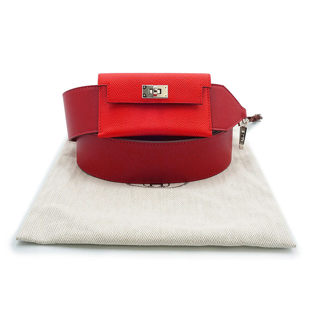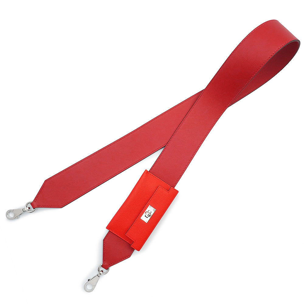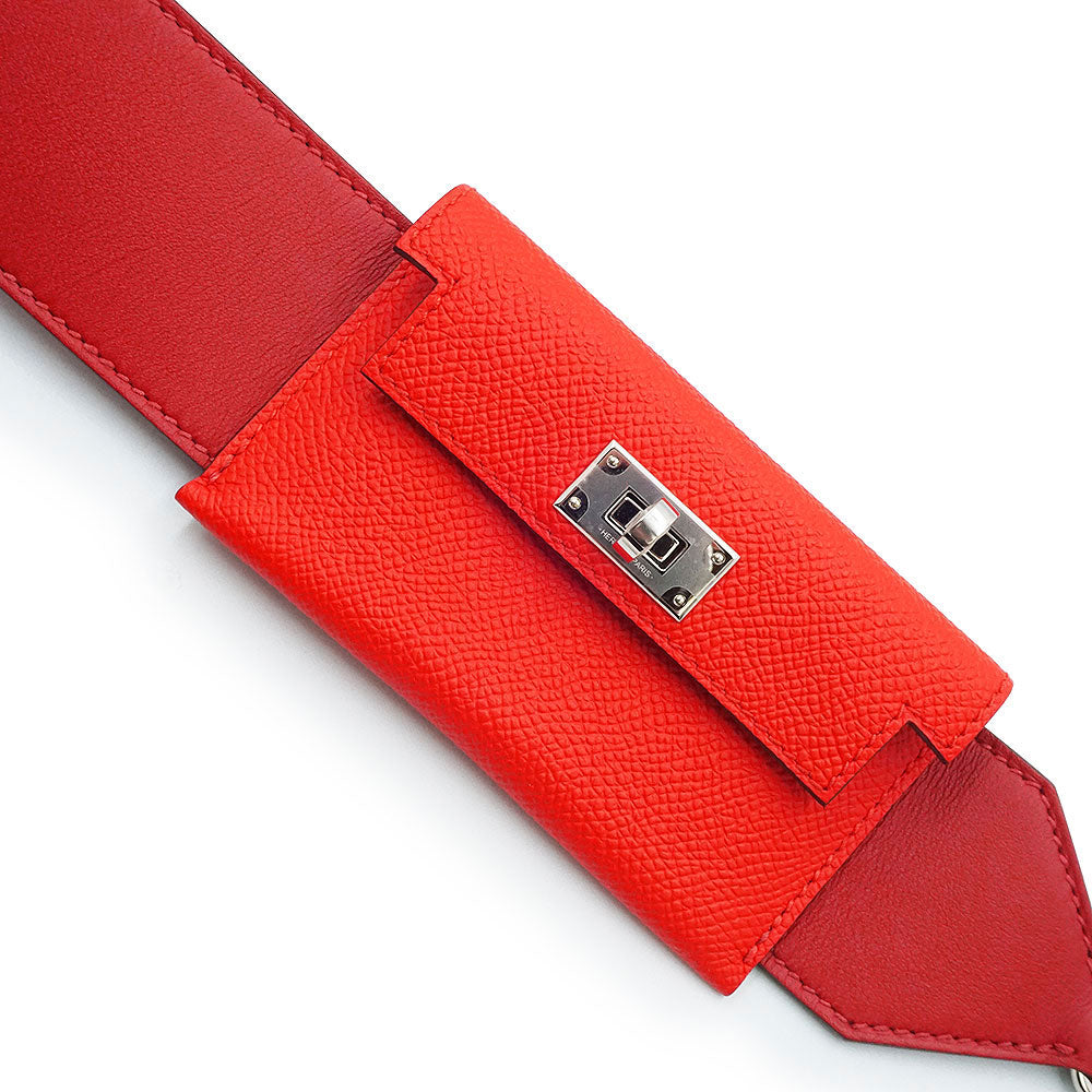 【新品・未使用品】エルメス HERMES バンドリエール ケリーポケット ショルダーストラップ 105CM ヴォースイフト ヴォーエプソン レザー ルージュドクール ルージュピマン レッド シルバー金具 Y刻印