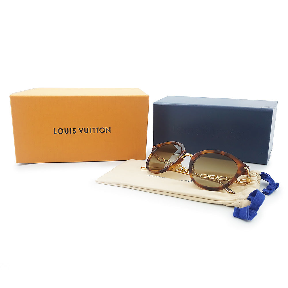 【未使用 展示品】ルイ ヴィトン LOUIS VUITTON マイLV チェーン トゥー ラウンド サングラス メガネ 眼鏡 アイウェア メタル アセテート ブラウン ゴールド Z2419U 箱付