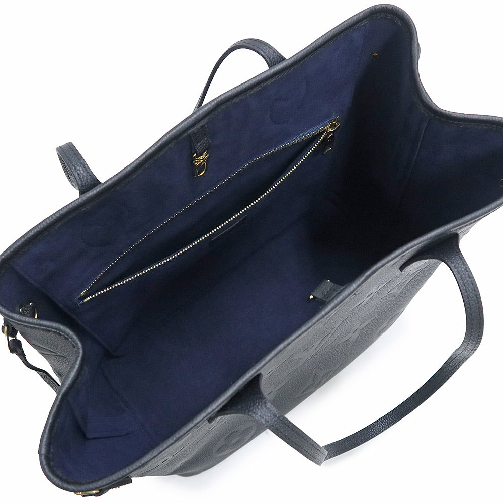 エンボス加工が美しいモノグラム・アンプラント レザーでアップデートされた「ネヴァーフル MM」。日常使いにぴったりな大容量のバッグは、長めのショルダーハンドルとしなやかなレザーで快適に持ち運べるのも魅力です。