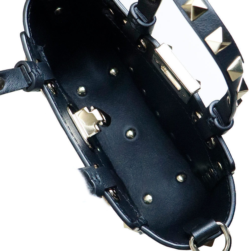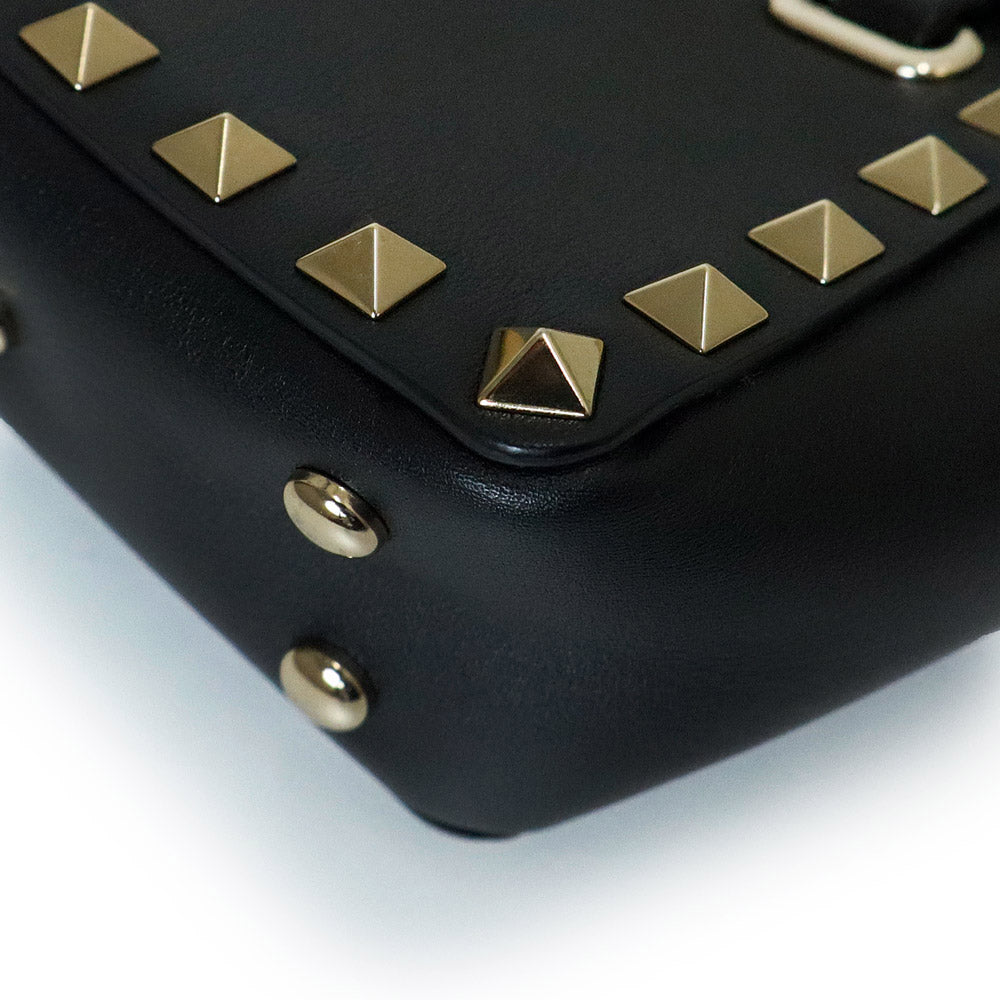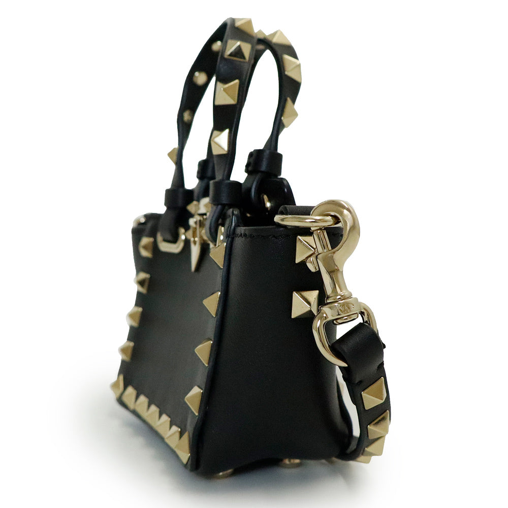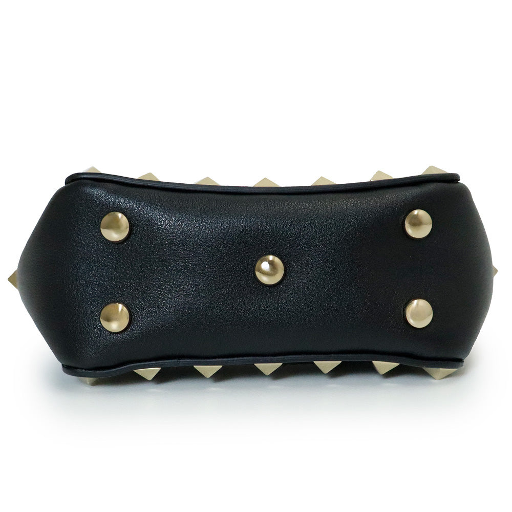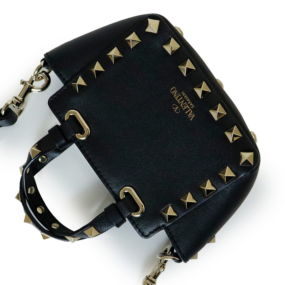 【未使用 展示品】ヴァレンティノ VALENTINO ロックスタッズ ミニトート 2WAY ショルダー ハンドバッグ カーフスキン レザー ブラック ゴールド金具 2W2P0Y28