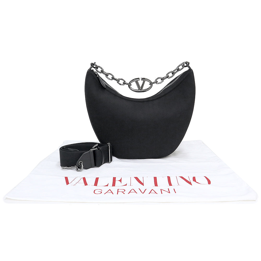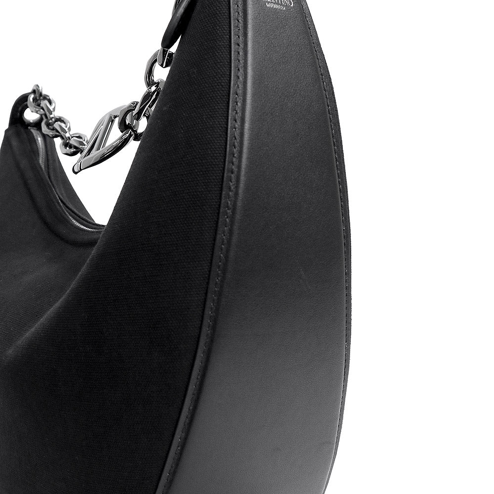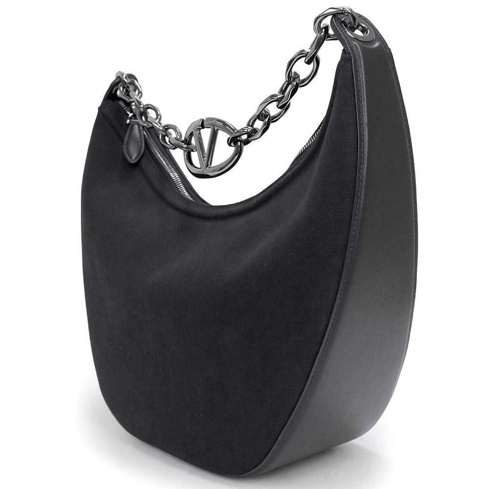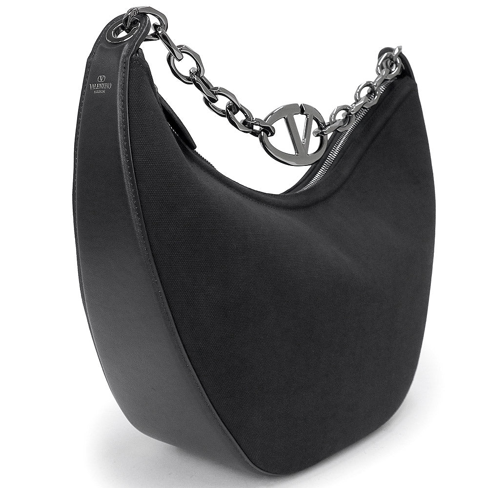 【未使用 展示品】ヴァレンティノ ガラヴァーニ Valentino Garavani Vロゴ ムーン ホーボー ミディアム チェーン ショルダー ハンドバッグ 2way 斜め掛け キャンバス レザー ブラック ガンメタル金具