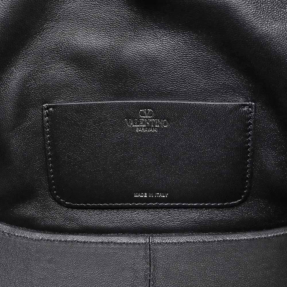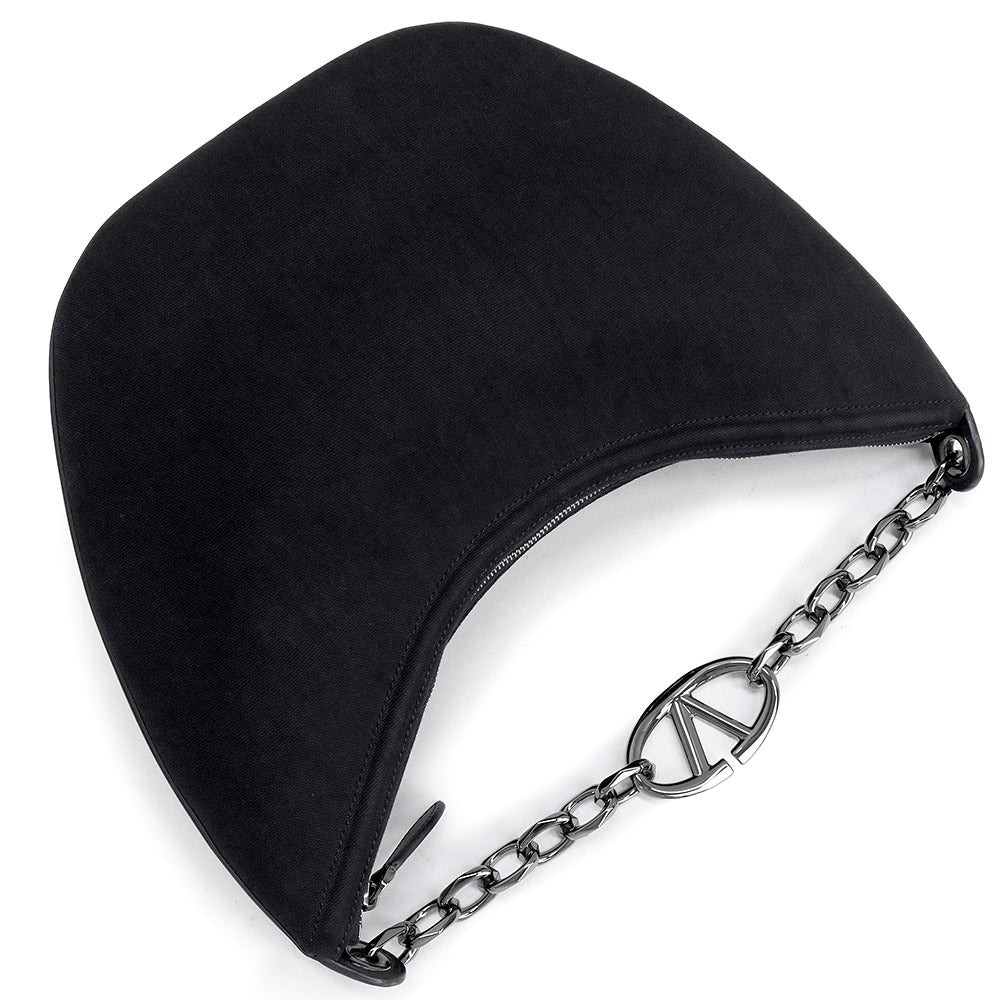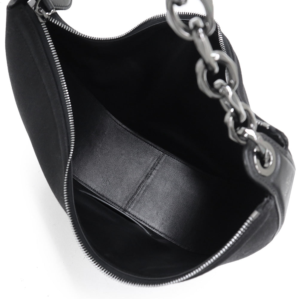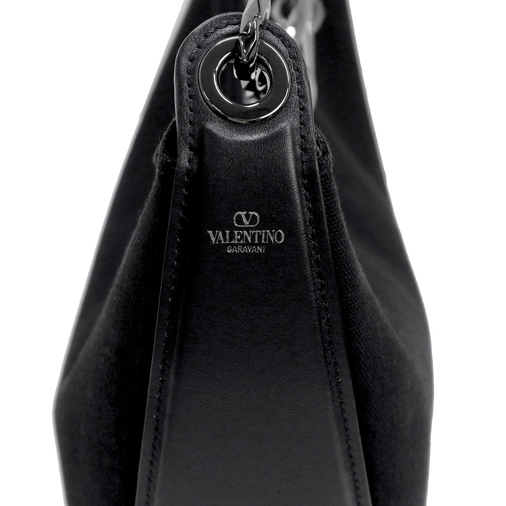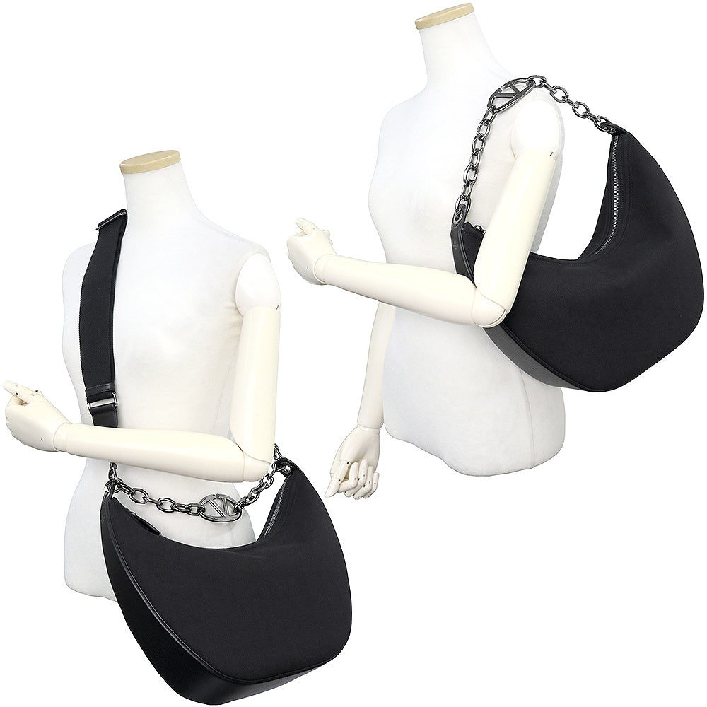 【未使用 展示品】ヴァレンティノ ガラヴァーニ Valentino Garavani Vロゴ ムーン ホーボー ミディアム チェーン ショルダー ハンドバッグ 2way 斜め掛け キャンバス レザー ブラック ガンメタル金具