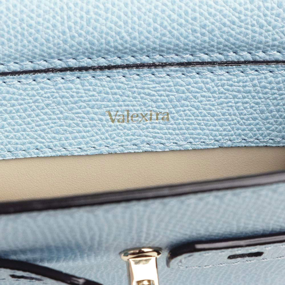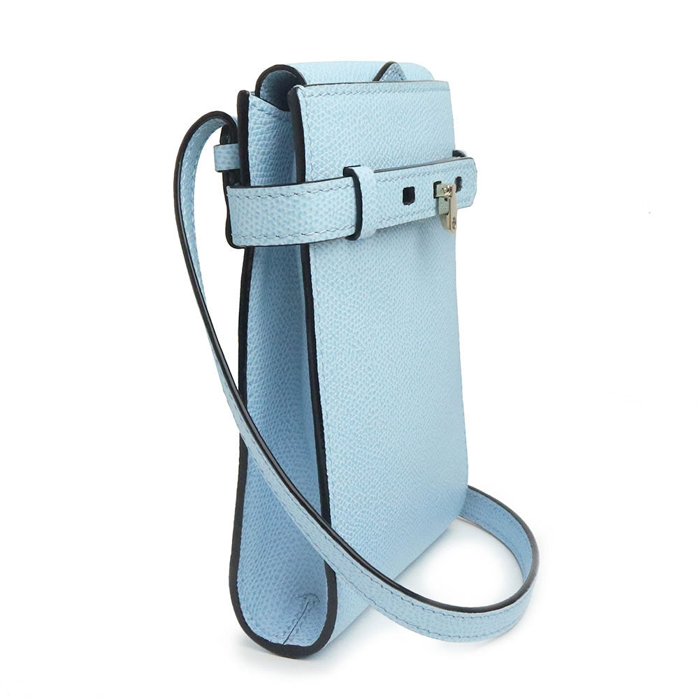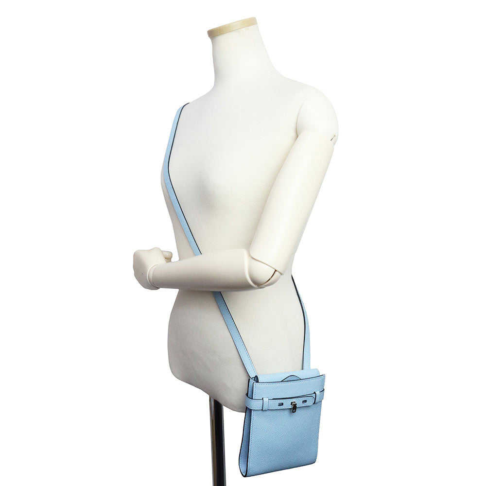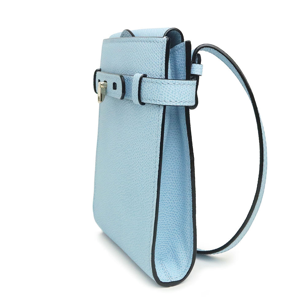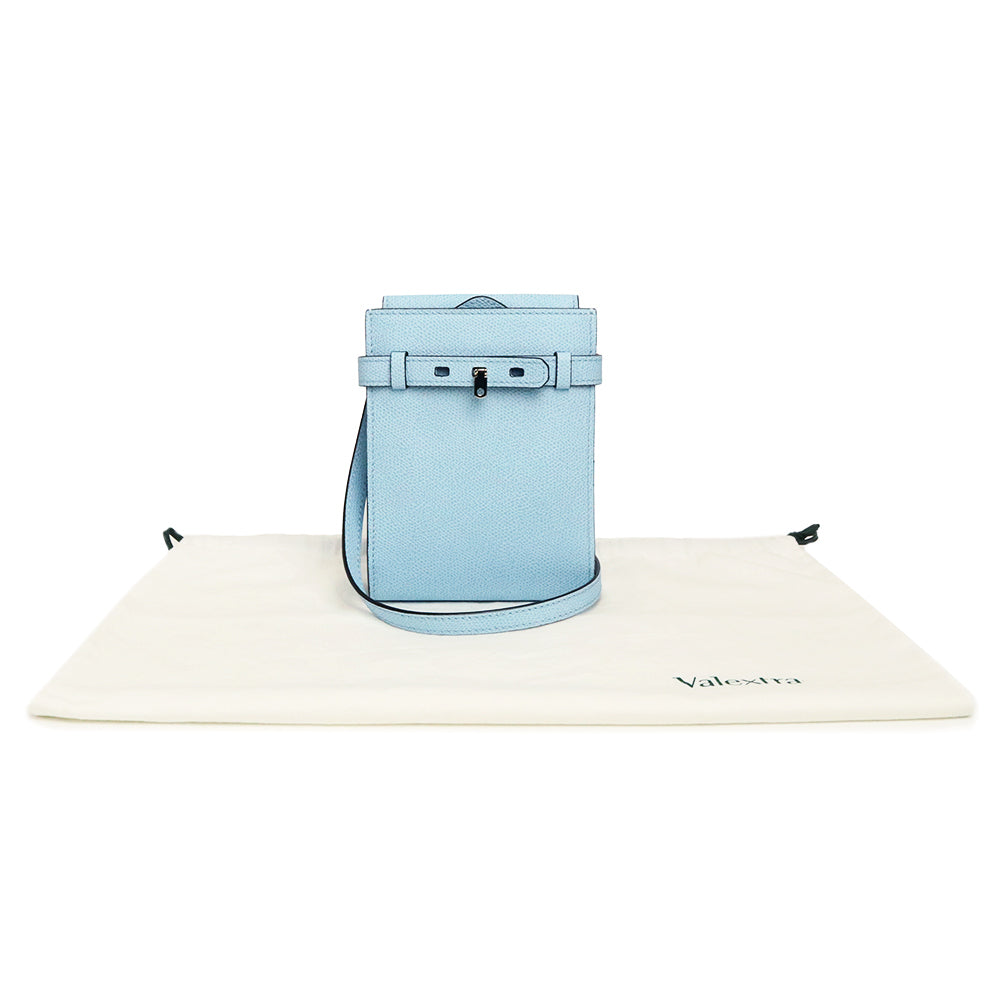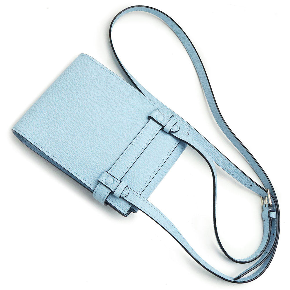 【新品・未使用品】ヴァレクストラ Valextra スリムB トラッコリーナ ショルダーバッグ 斜め掛け ソフトカーフ レザー フィオルダリゾ ブルー 水色 ライトゴールド金具 V5U61