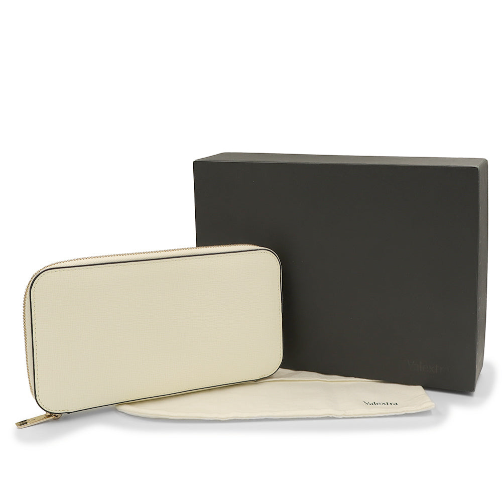 【未使用 展示品】ヴァレクストラ Valextra ラウンドジップ 12カード 長財布 グレインカーフレザー ホワイト ライトゴールド金具 V9L06-044-000W-OC
