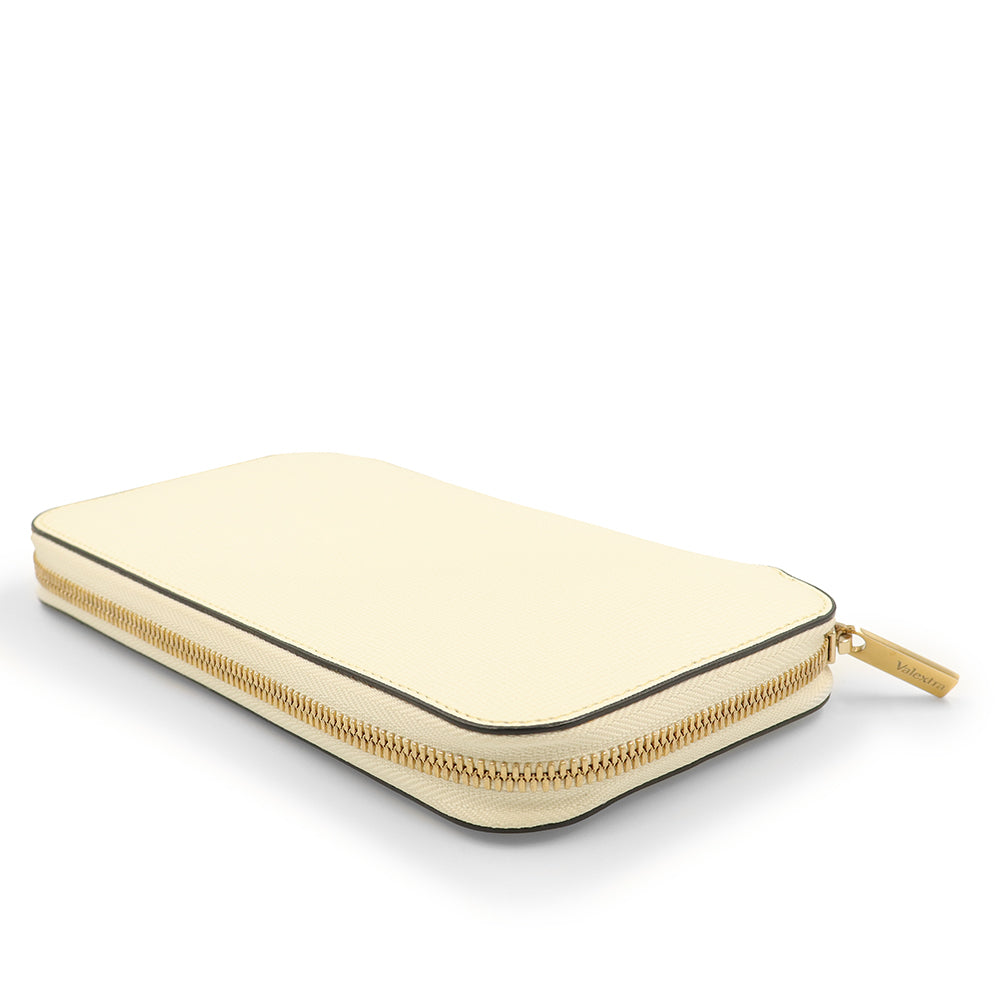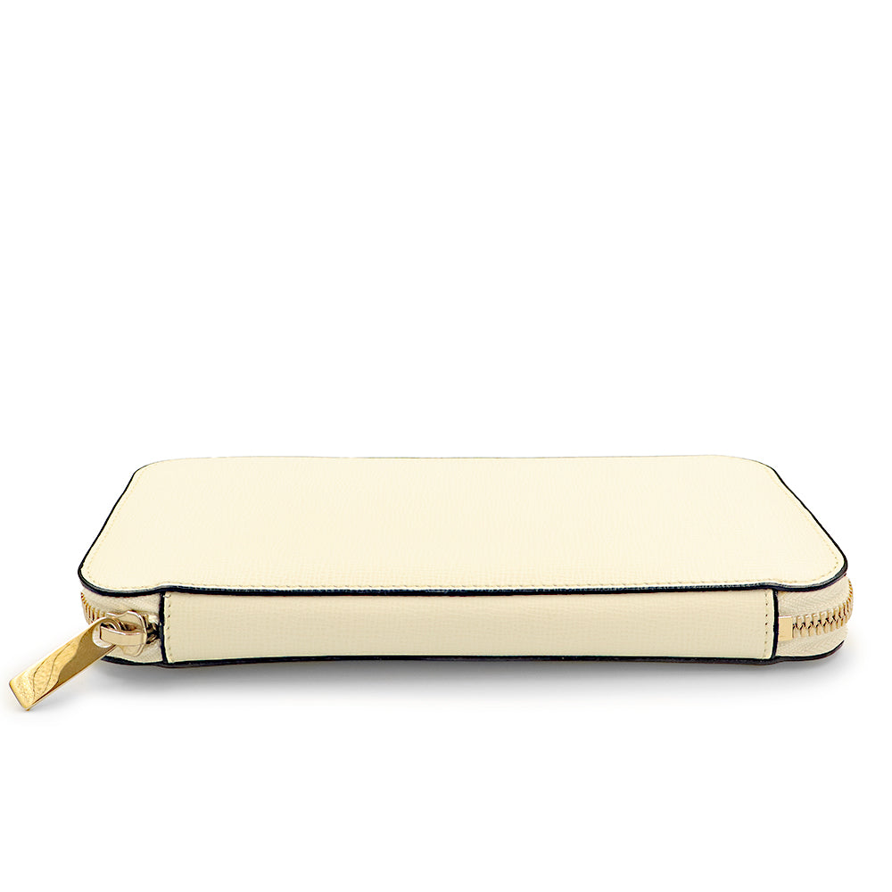 アイボリー調の白色とゴールドの金具とのコンビネーションが美しく、財布内側のV字に切れ込みの入ったカードポケットが特徴的なヴァレクストラの長財布です。しなやかで柔らかいレザーの手触りと収納力が魅力です。 |
