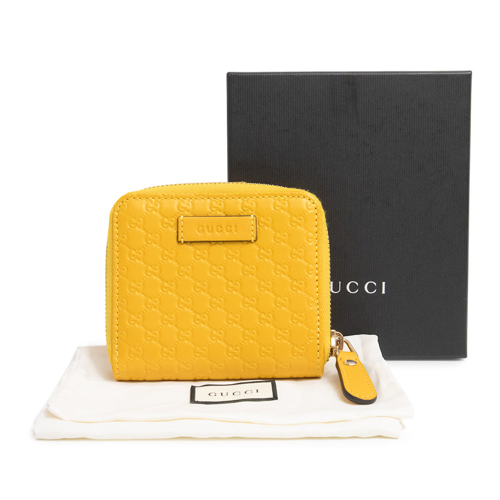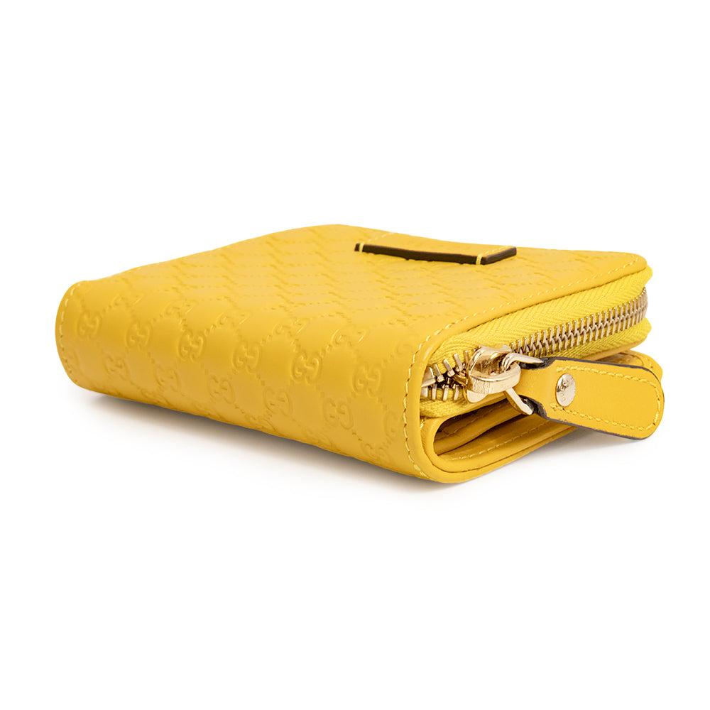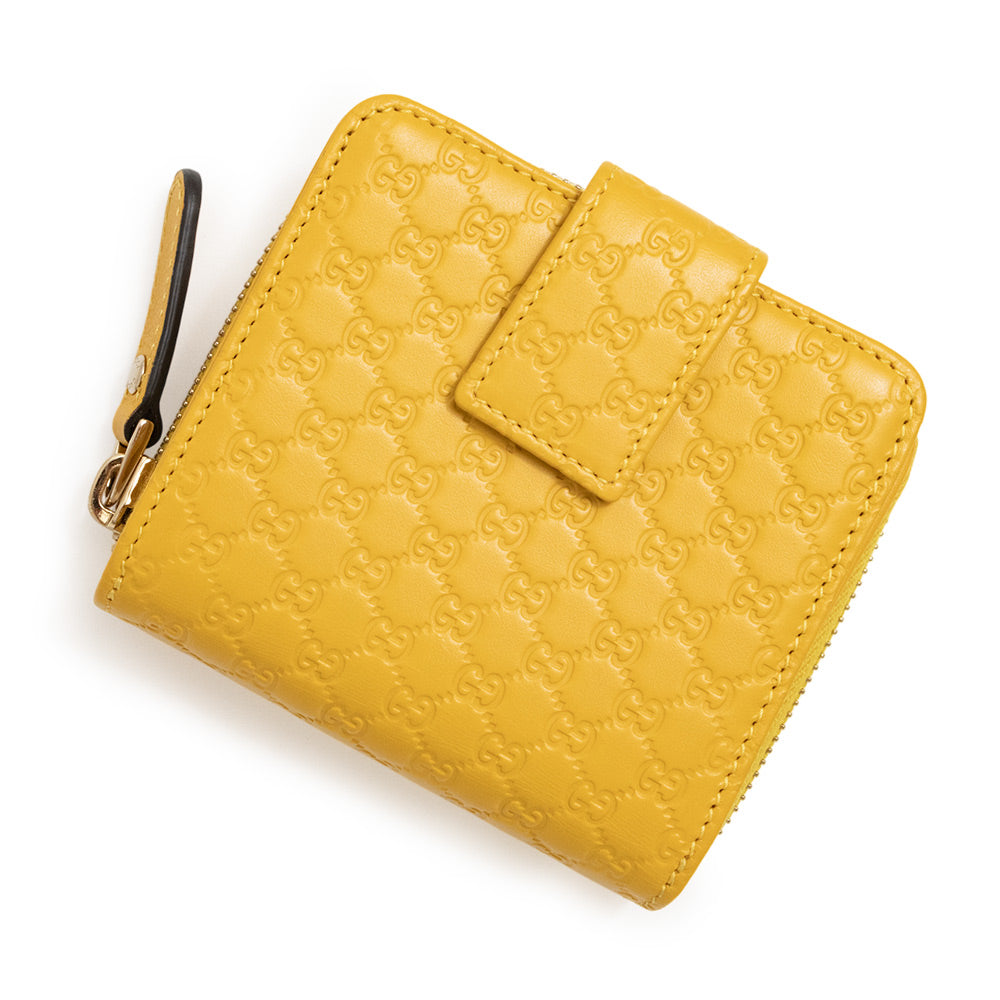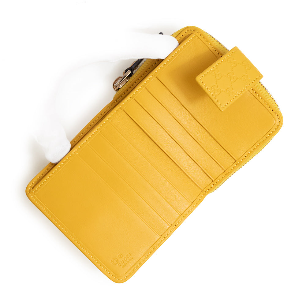 【新品・未使用品】グッチ GUCCI シグネチャー コンパクト 二つ折り財布 マイクログッチシマレザー イエロー ゴールド金具 449395 箱付