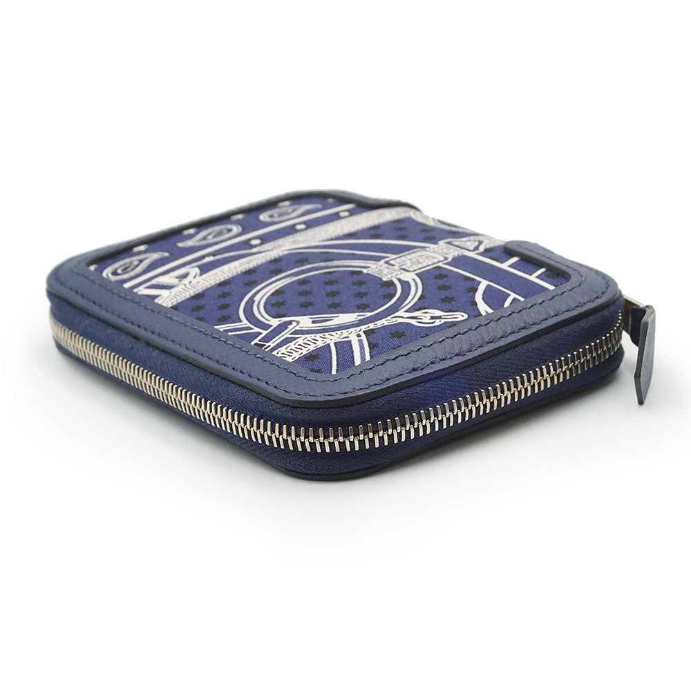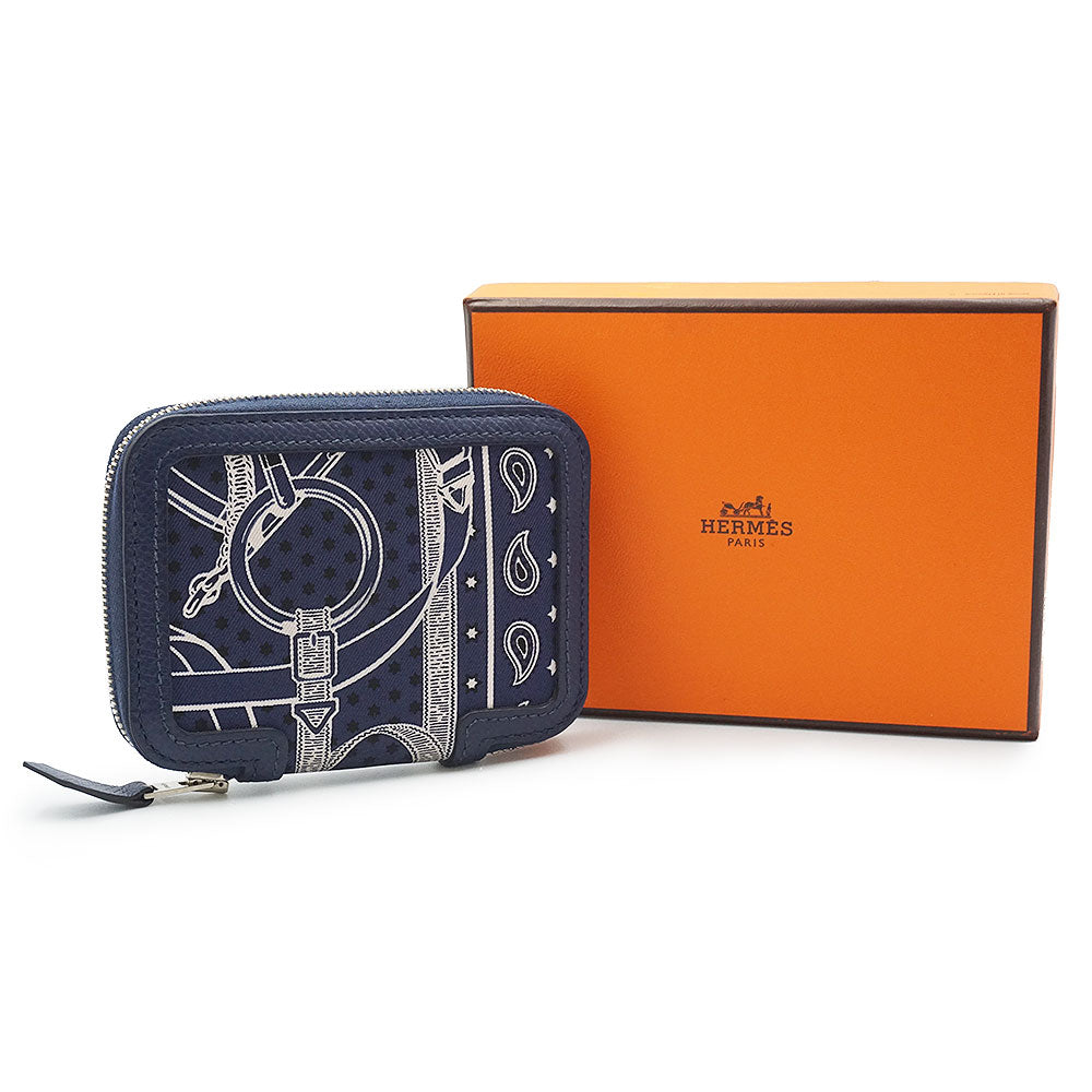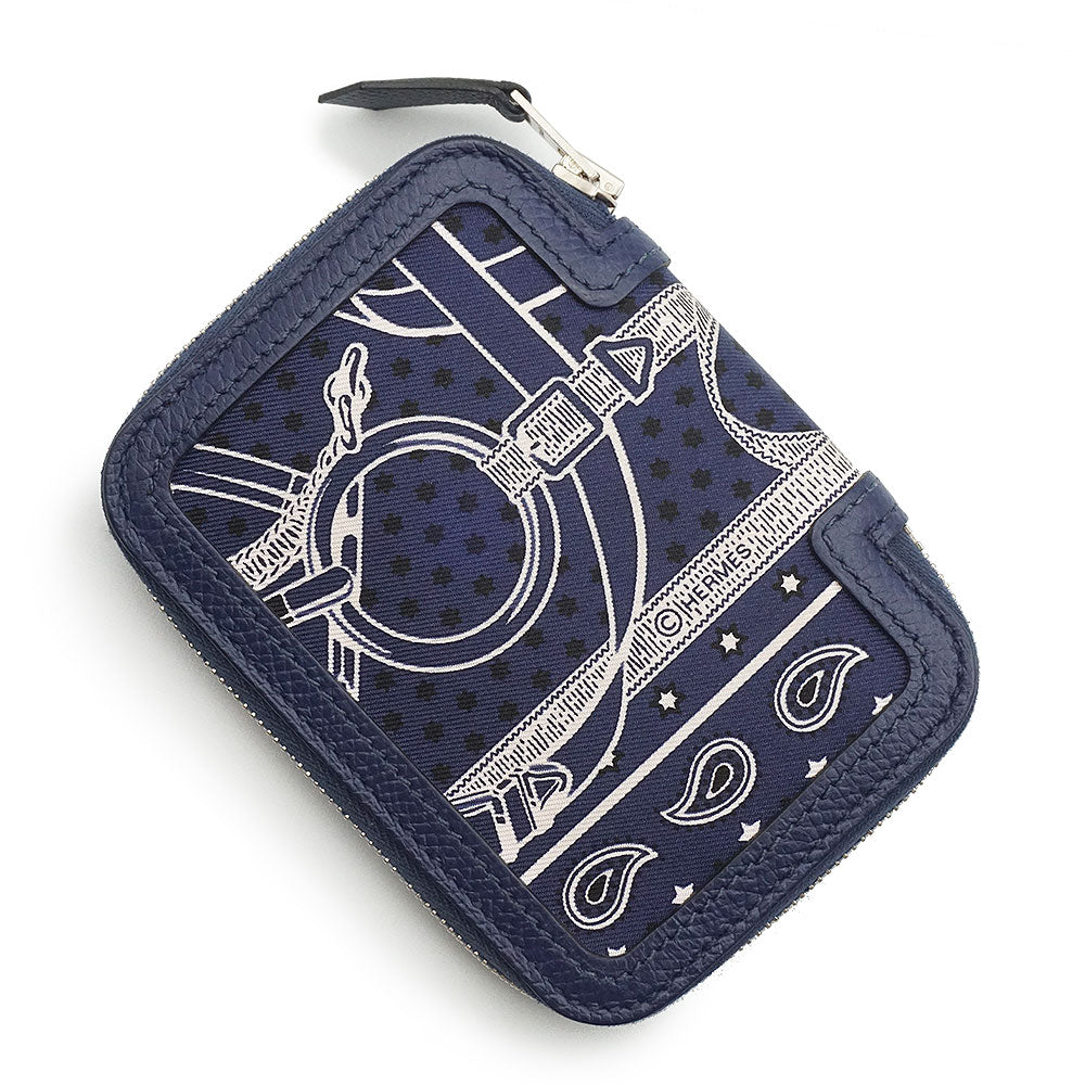【新品・未使用品】エルメス HERMES ソワクール エプロン ドール バンダナ Eperon d Or Bandana コンパクトウォレット コインケース 小銭入れ 財布 カードケース 名刺入れ 定期入れ パスケース ヴォーエプソン レザー シルク マリン マリーヌ ネイビー シルバー金具 T刻印
