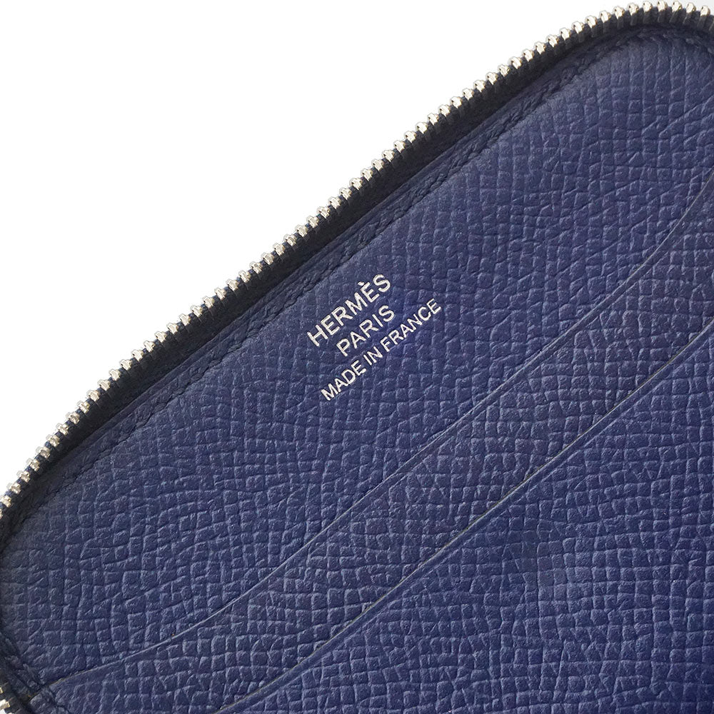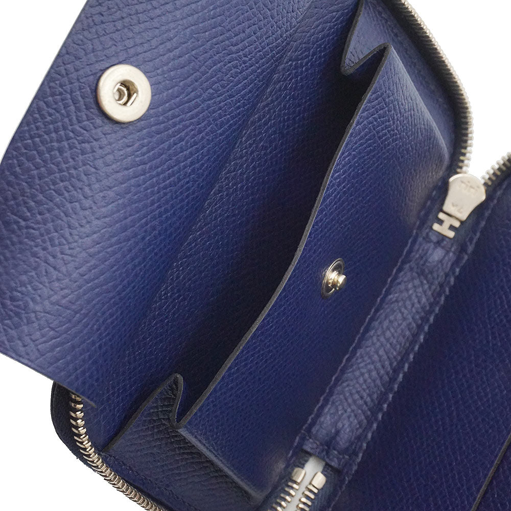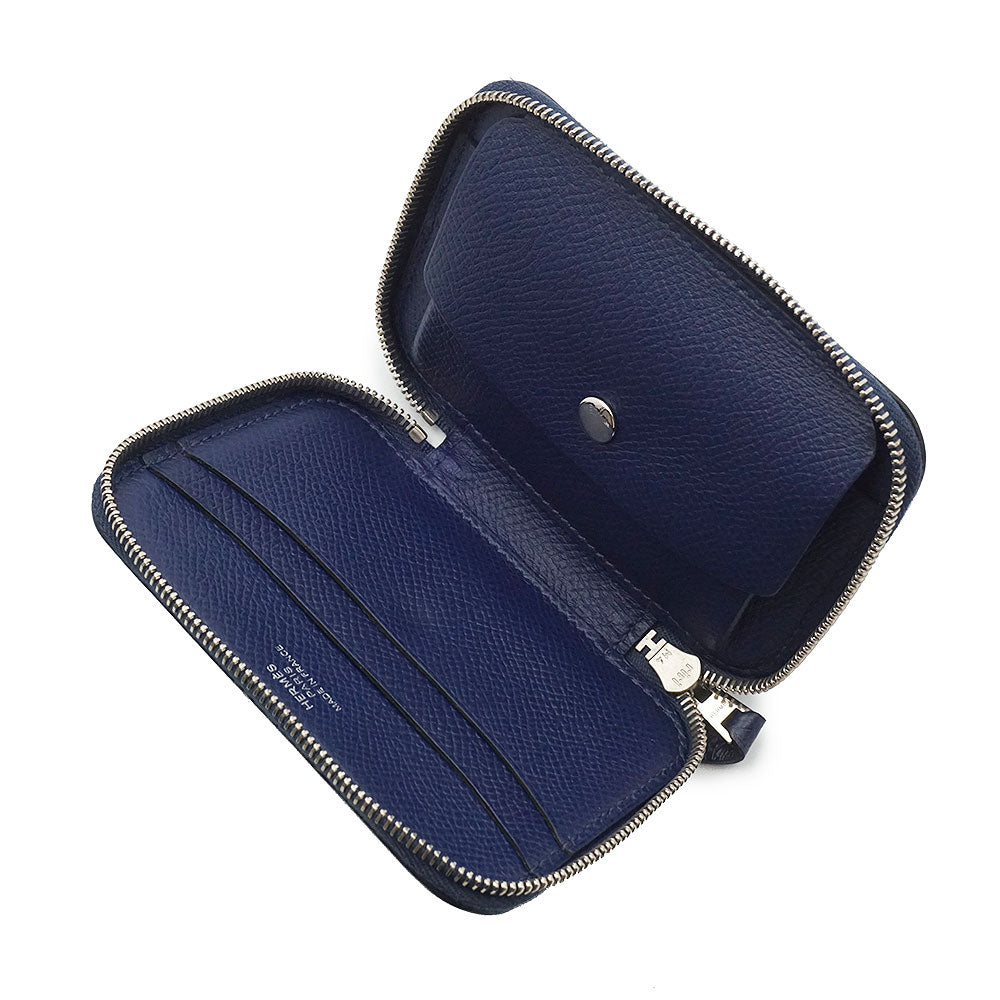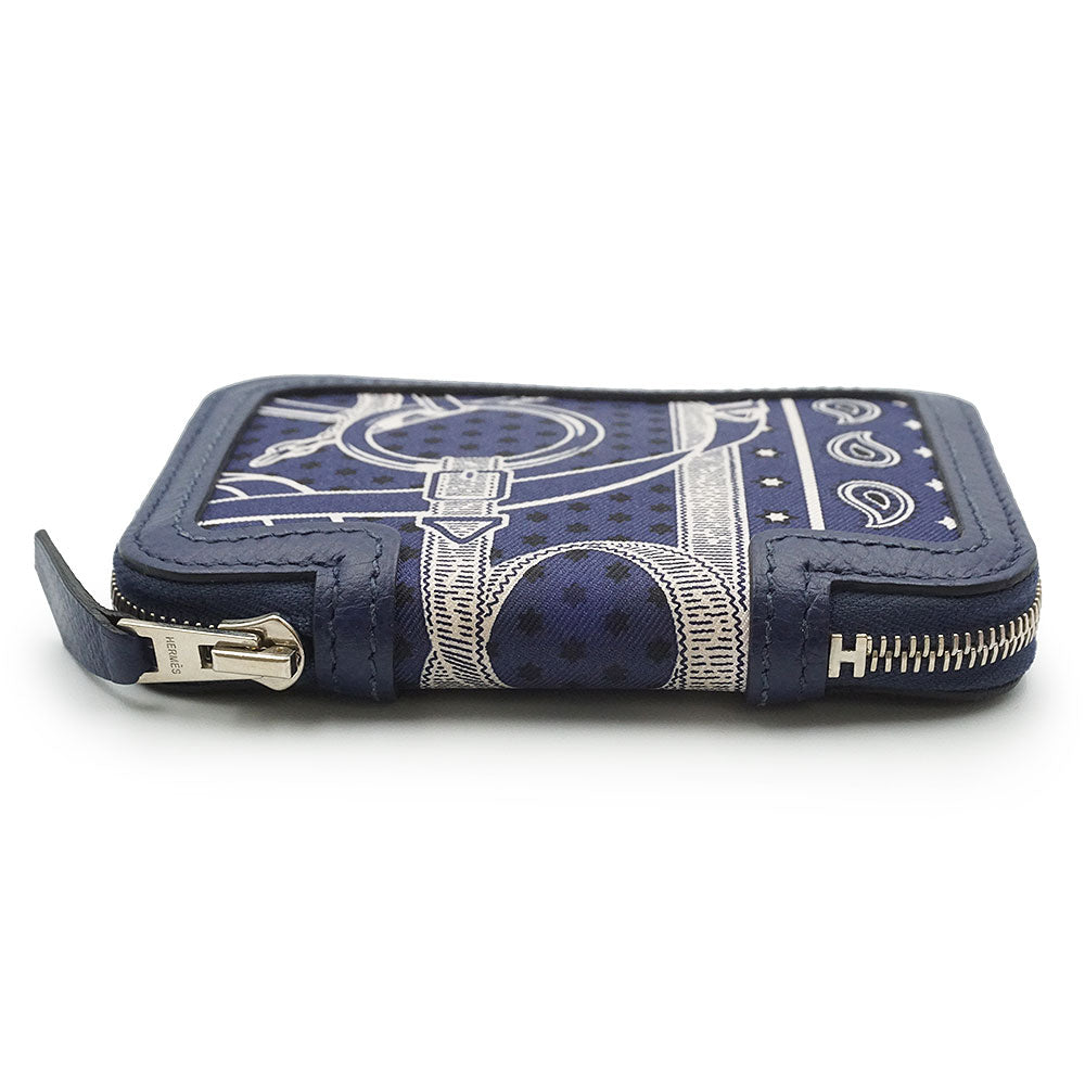 【新品・未使用品】エルメス HERMES ソワクール エプロン ドール バンダナ Eperon d Or Bandana コンパクトウォレット コインケース 小銭入れ 財布 カードケース 名刺入れ 定期入れ パスケース ヴォーエプソン レザー シルク マリン マリーヌ ネイビー シルバー金具 T刻印