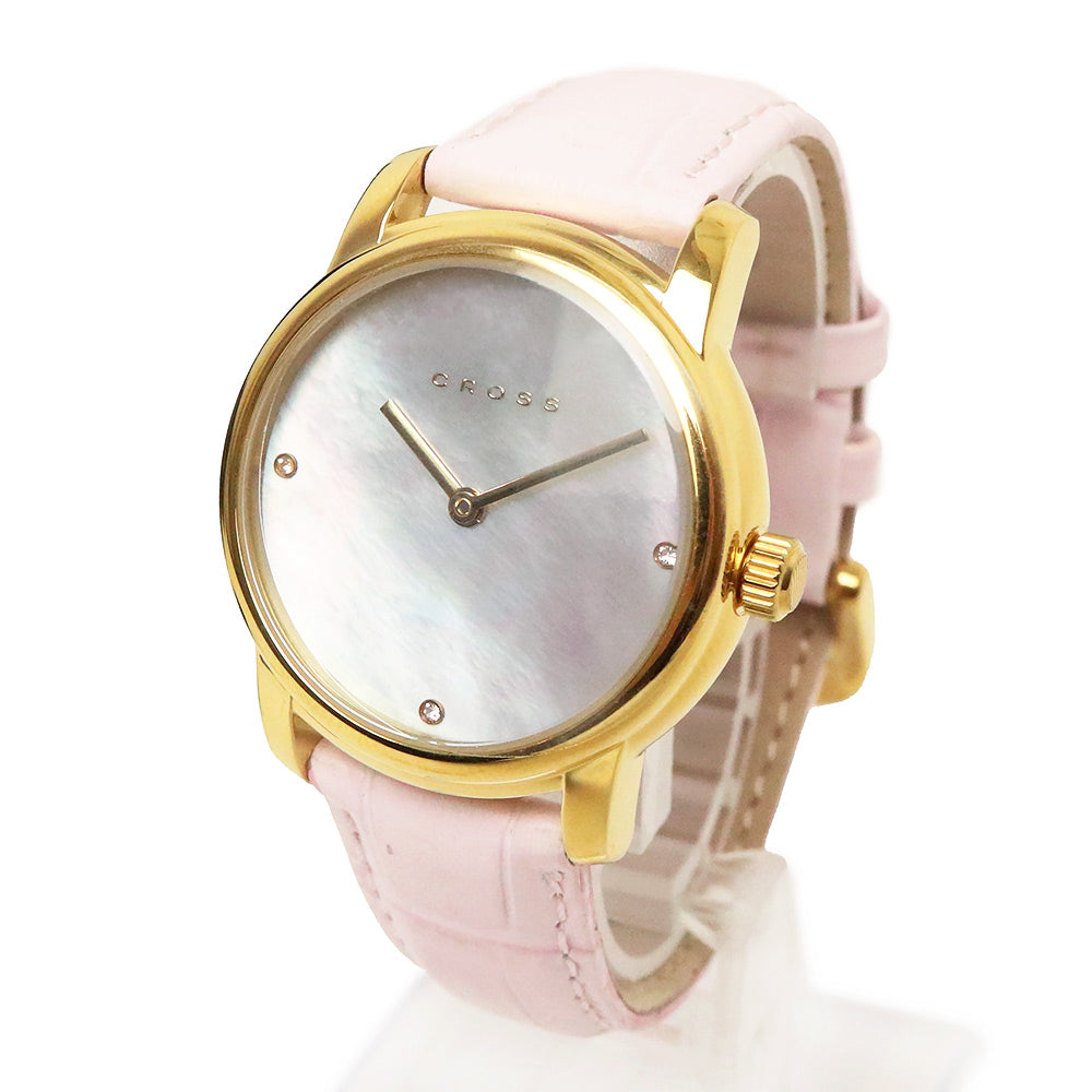 【新品・未使用品】クロス CROSS 腕時計 クォーツ ステンレススチール レザー ミネラルクリスタル シェル文字盤 ホワイトパール ピンク 白 CR9038-02 箱付