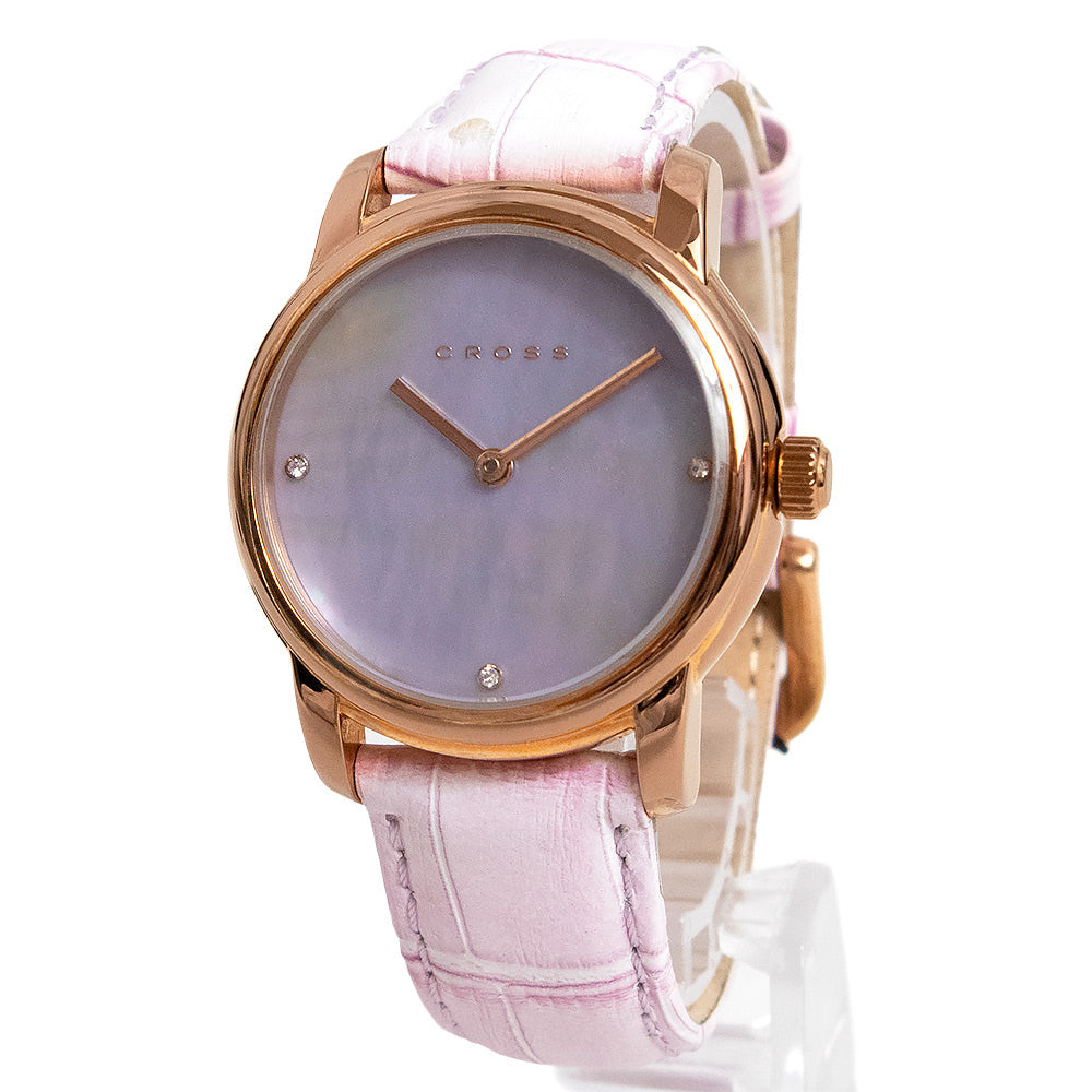 【新品・未使用品】クロス CROSS 腕時計 クォーツ ステンレススチール レザー ミネラルクリスタル パープルパール ピンクゴールド シェル文字盤 CR9038-03 箱付