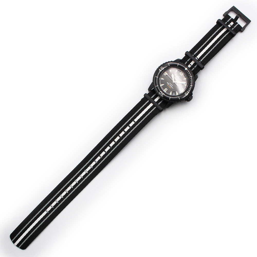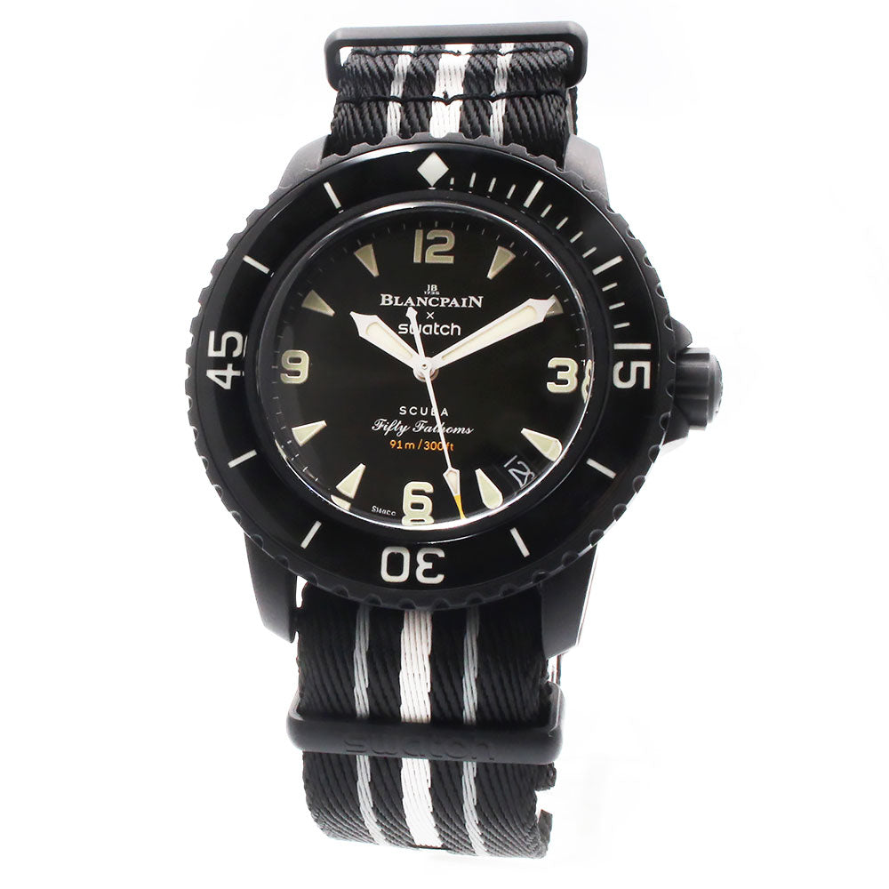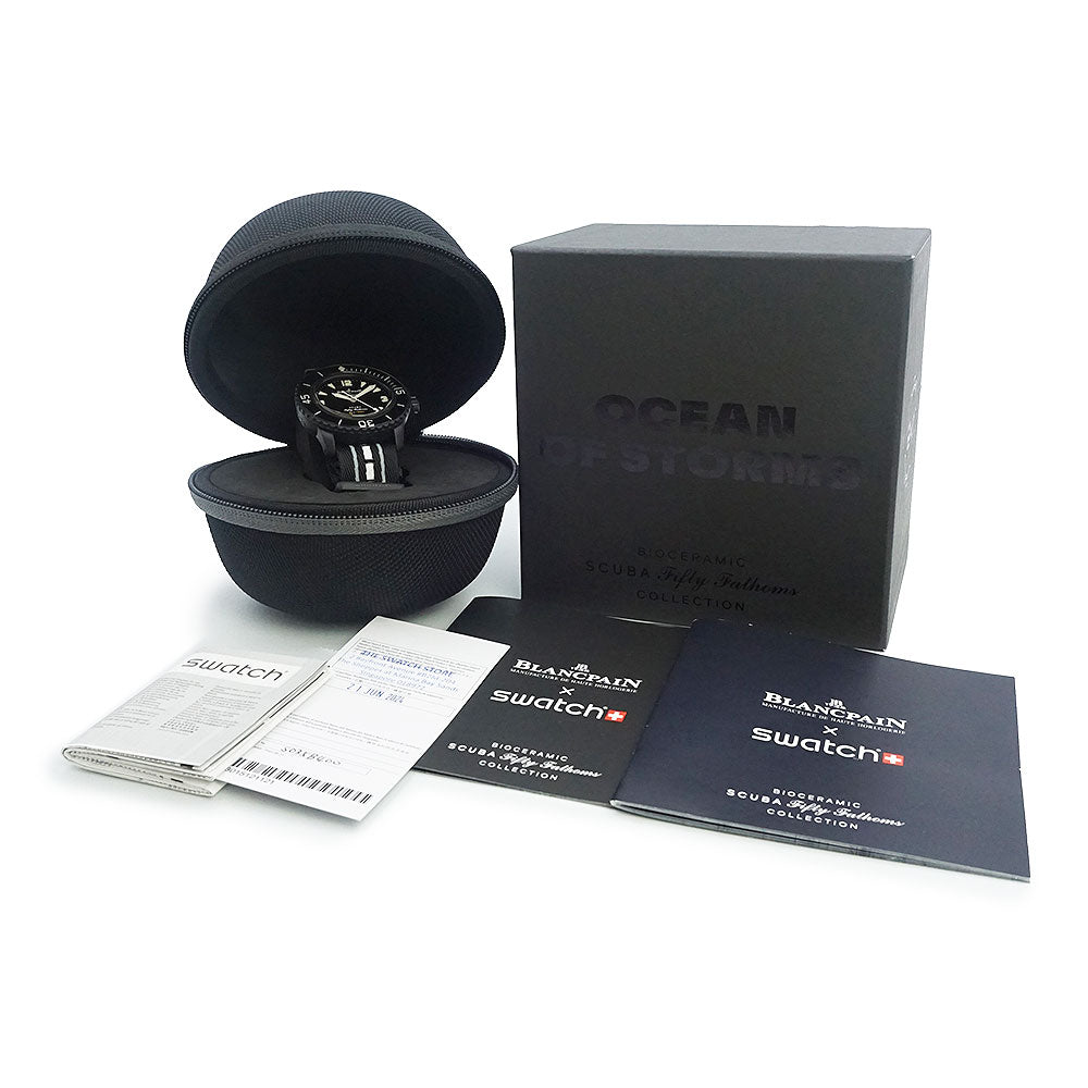 【未使用 展示品】ブランパン Blancpain スウォッチ Swatch スクーバ フィフティファゾムス オーシャン オブ ストーム OCEAN OF STORMS 自動巻き 腕時計 ナイロン バイオセラミック ブラック SO35B400 箱付