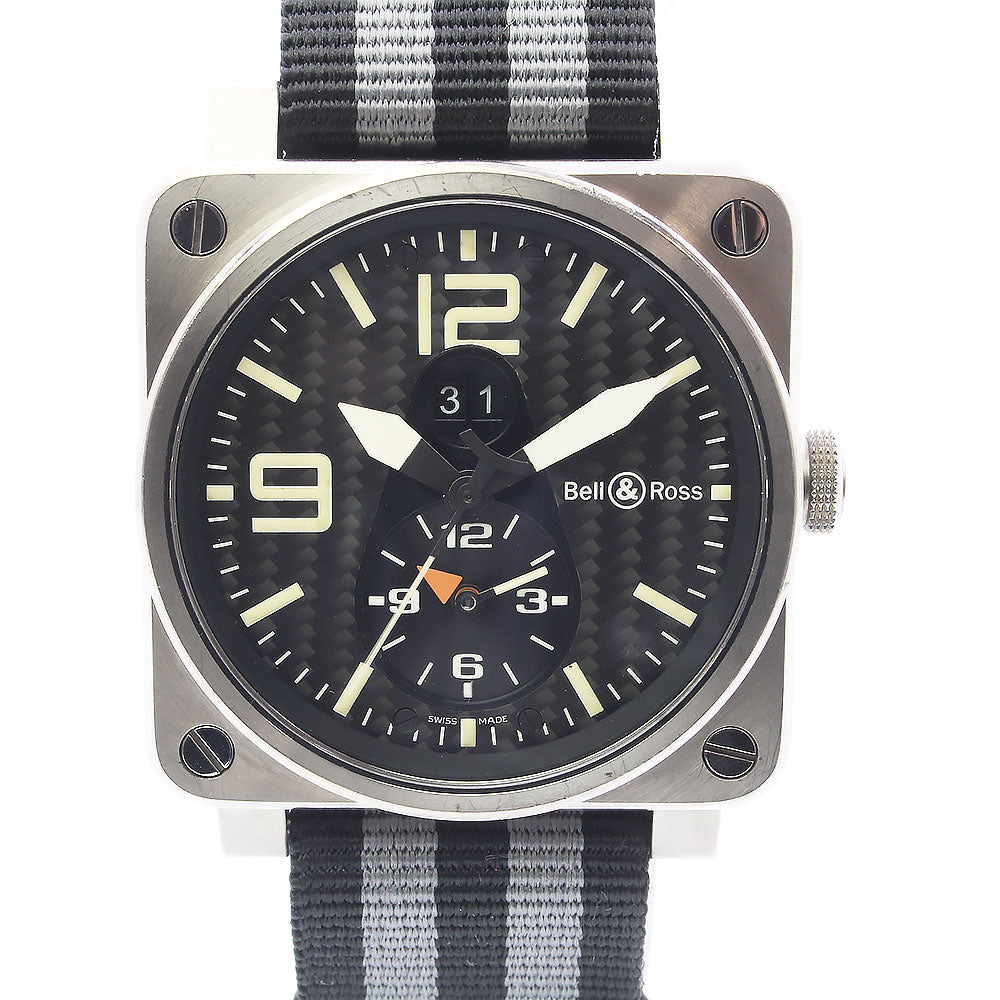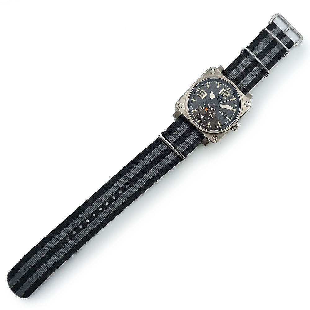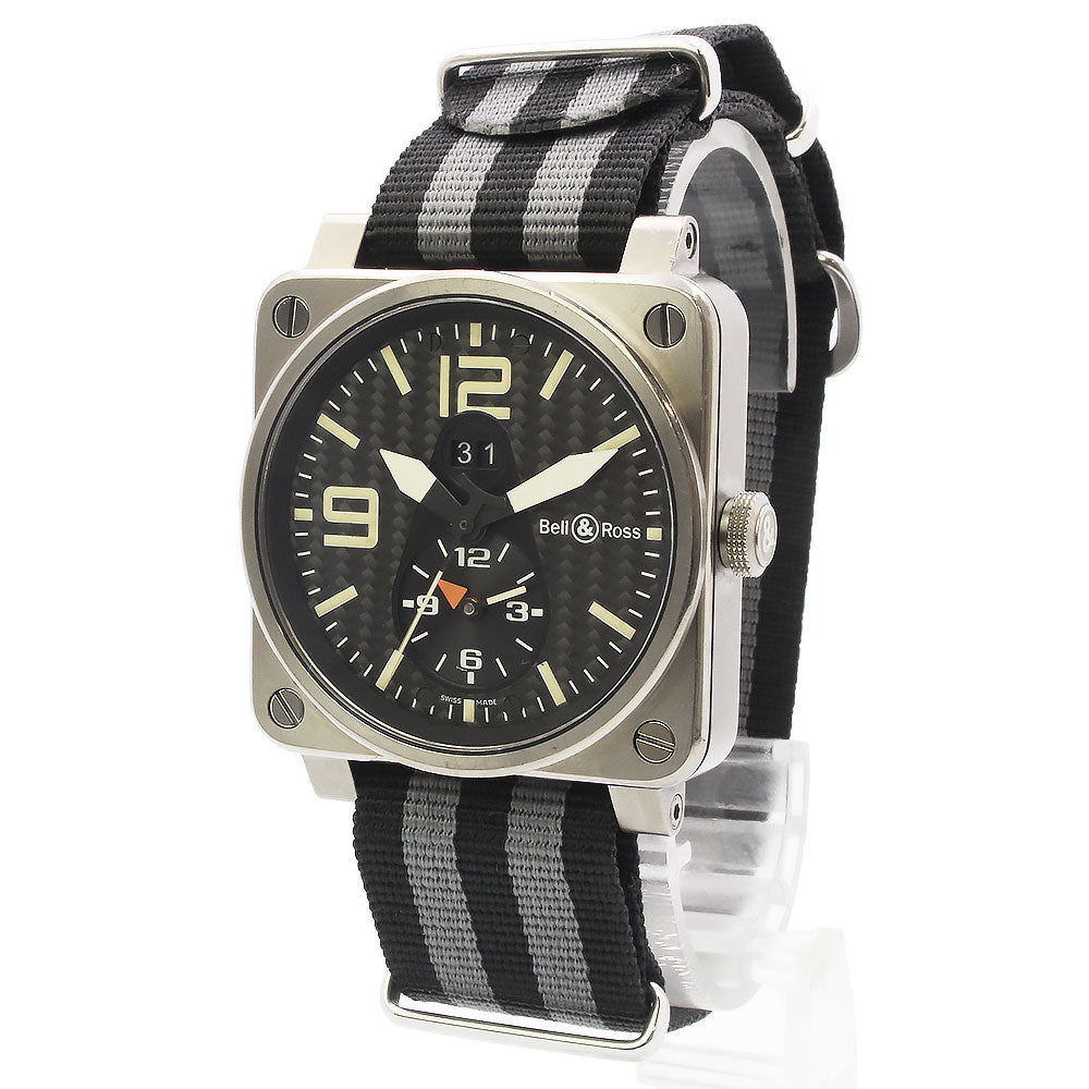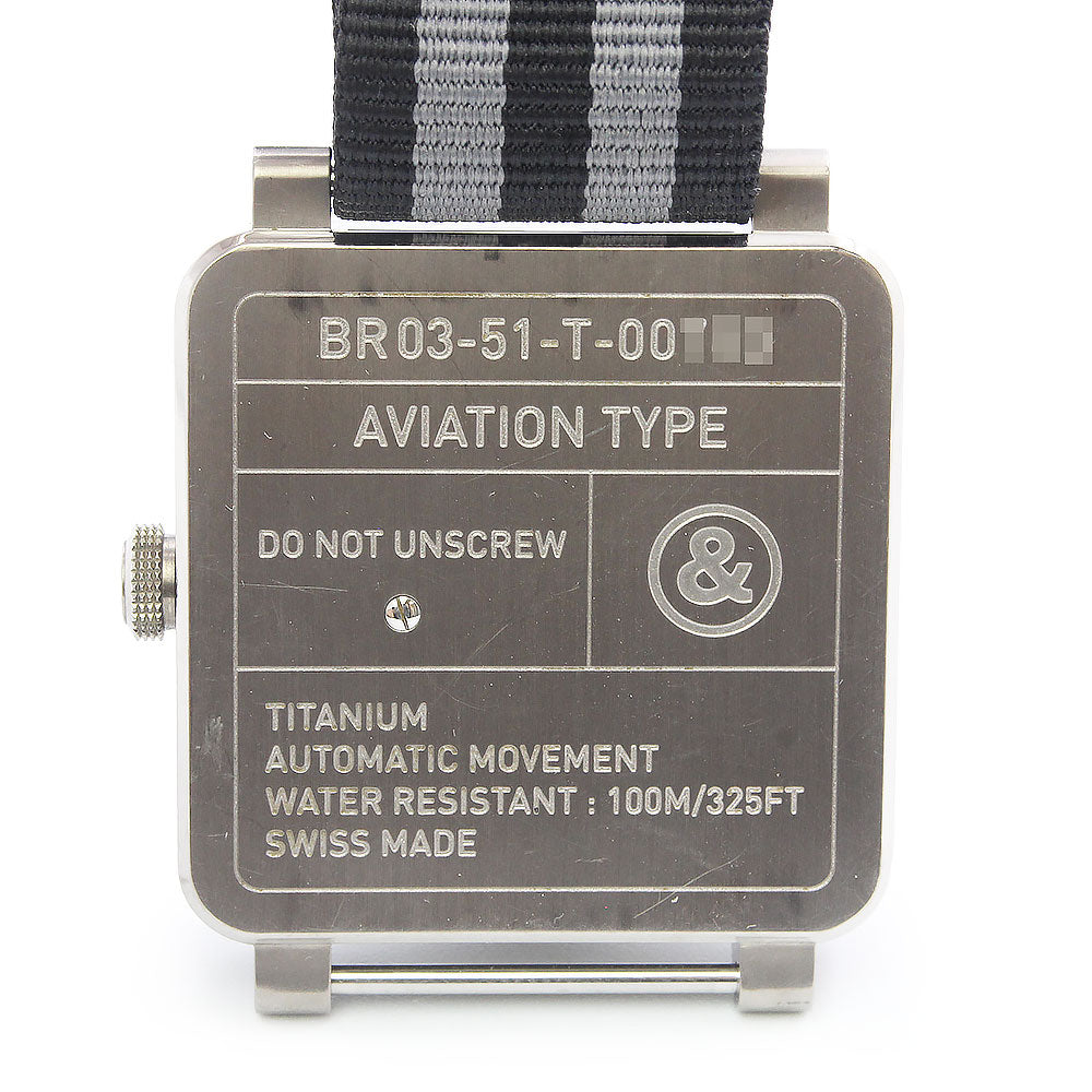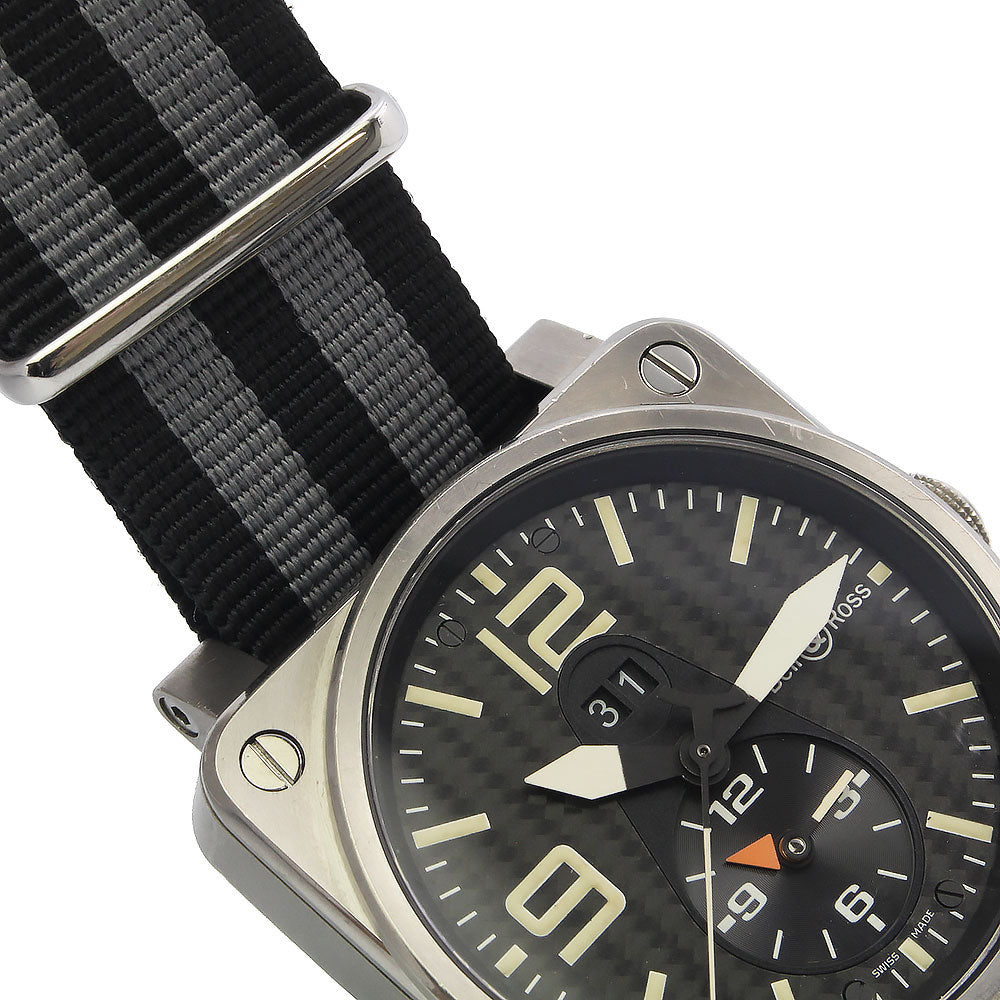 【中古】ベル&ロス Bell&Ross アヴィエイション GMT 自動巻き 腕時計 チタン ナイロン ブラック グレー シルバー BR03-51-T