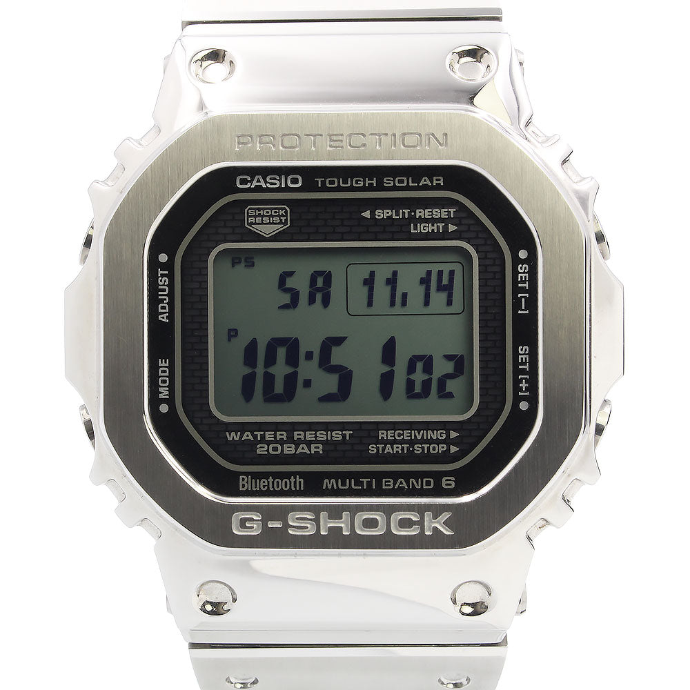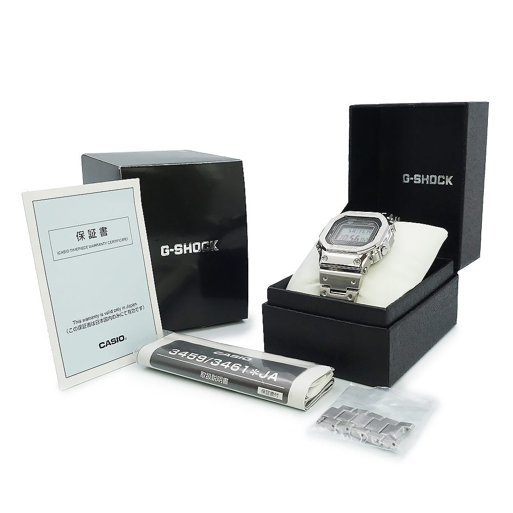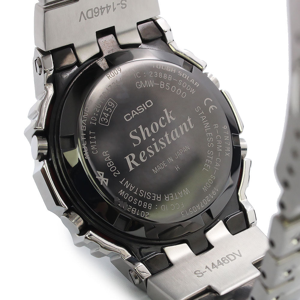 【美品】カシオ CASIO G-SHOCK Gショック 5000シリーズ フルメタル 電波ソーラー タフソーラー 腕時計 ステンレススチール シルバー GMW-B5000D-1JF 保証書 箱付