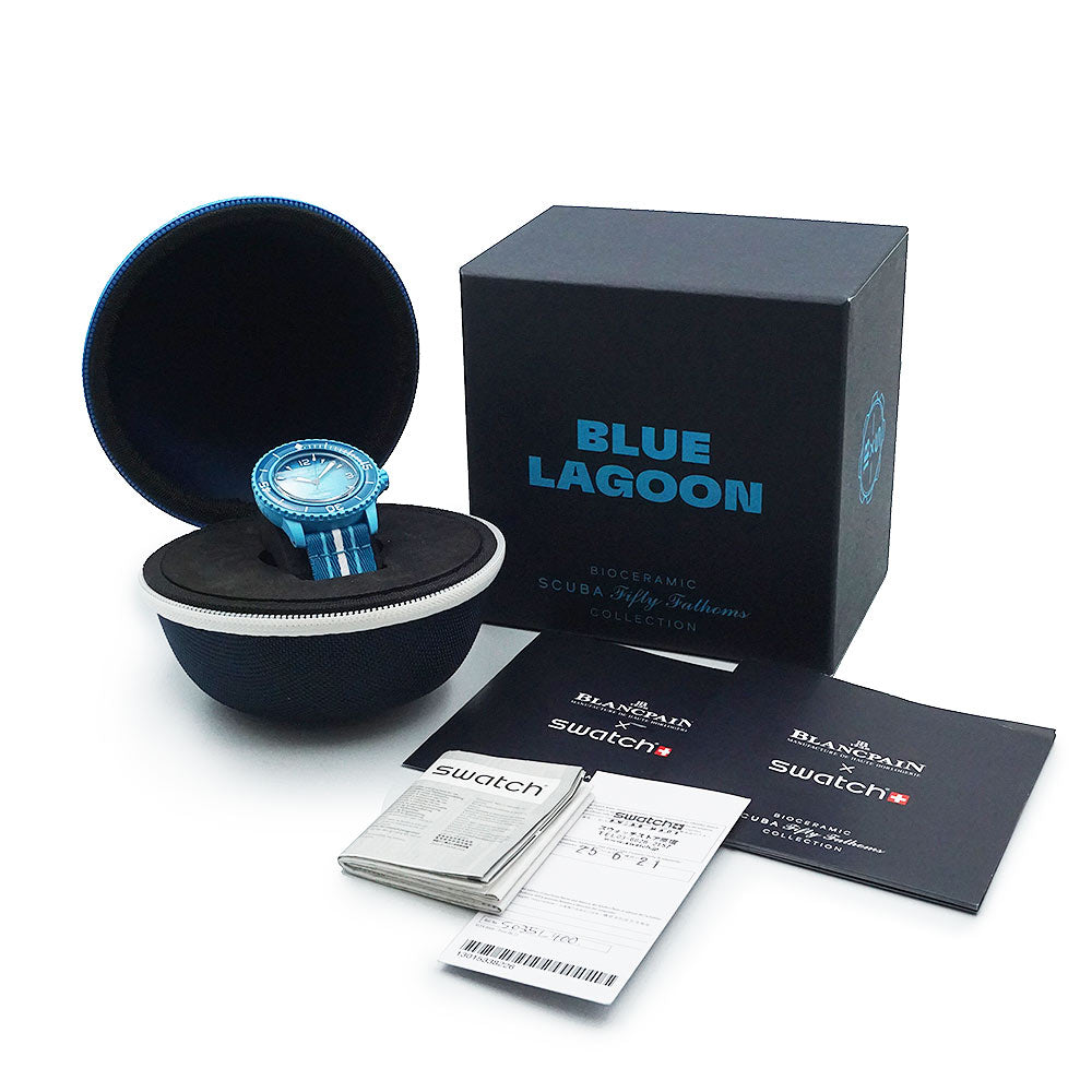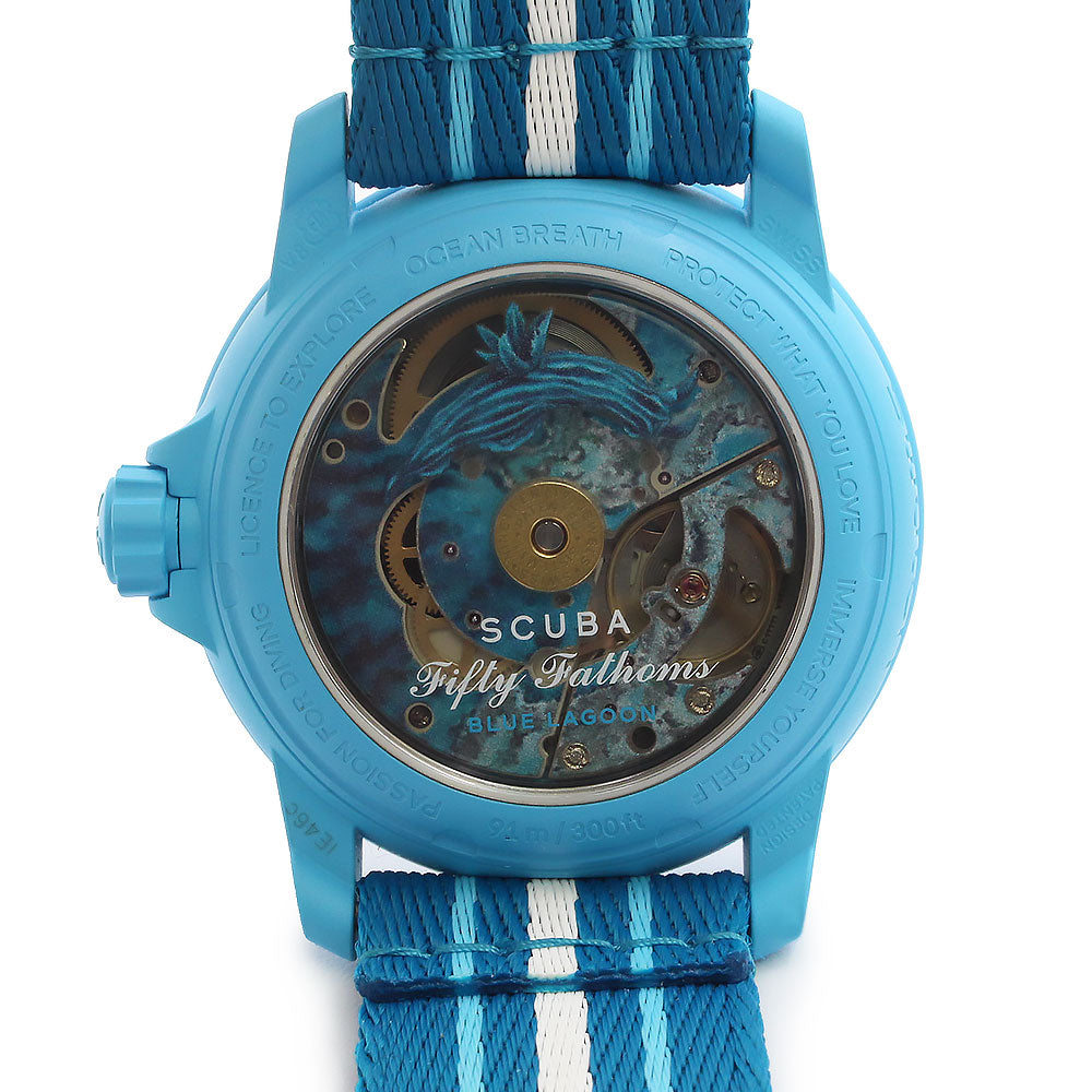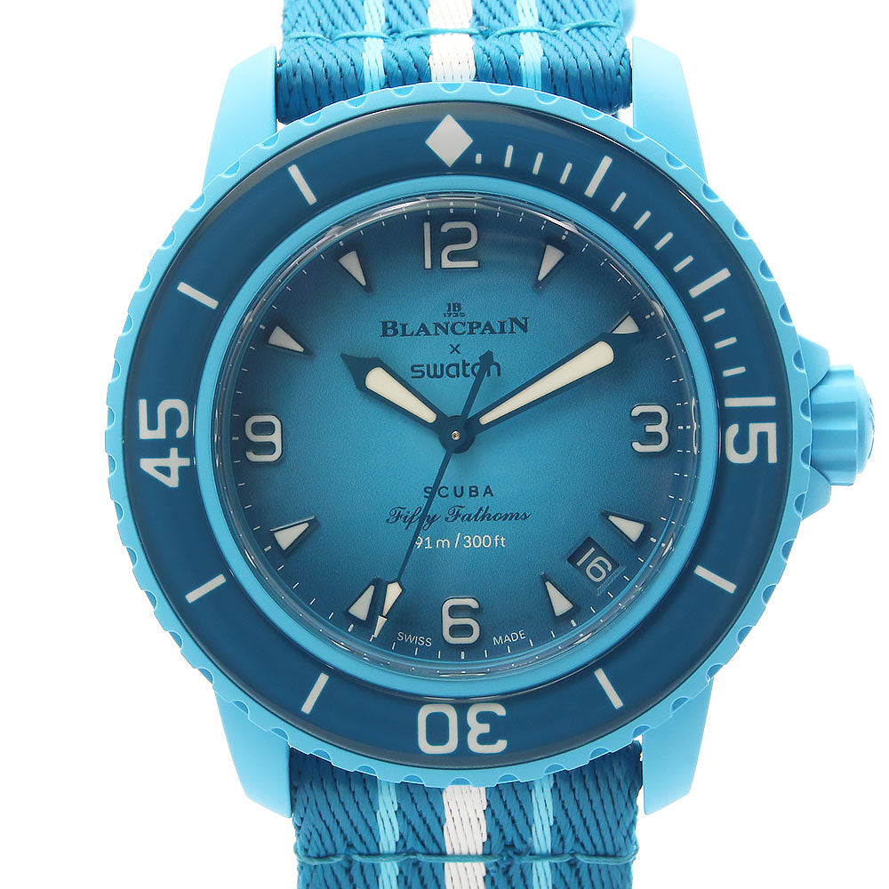 【新品・未使用品】ブランパン Blancpain スウォッチ Swatch スクーバ フィフティファゾムス ブルーラグーン FIFTY FATHOMS BLUE LAGOON 自動巻き 腕時計 ナイロン バイオセラミック ターコイズブルー SO35L400 箱付