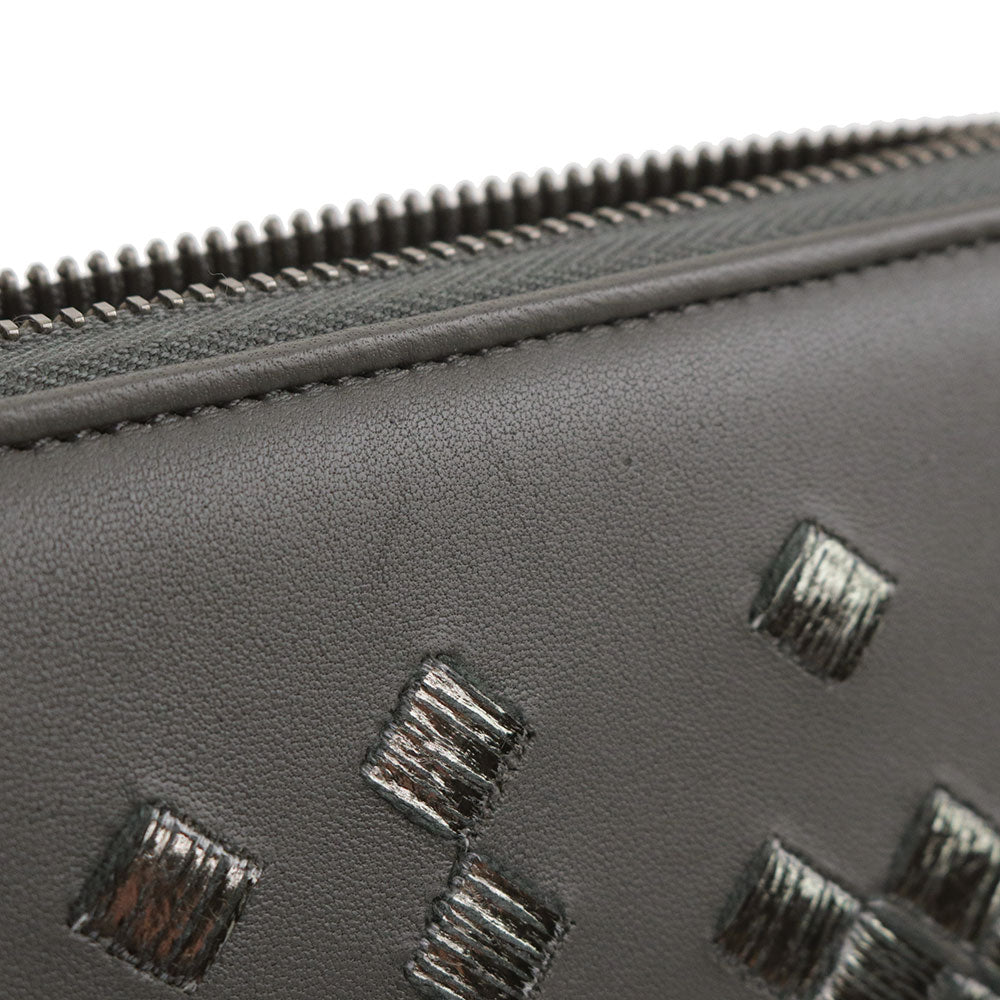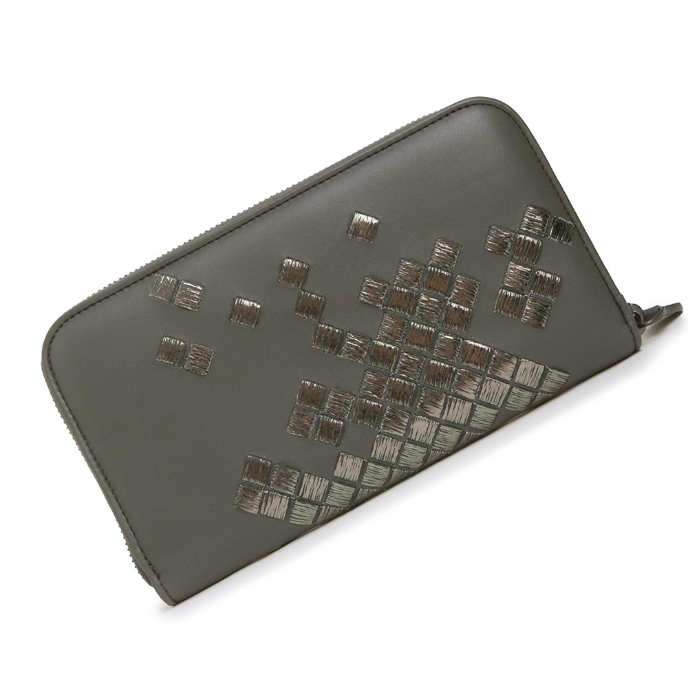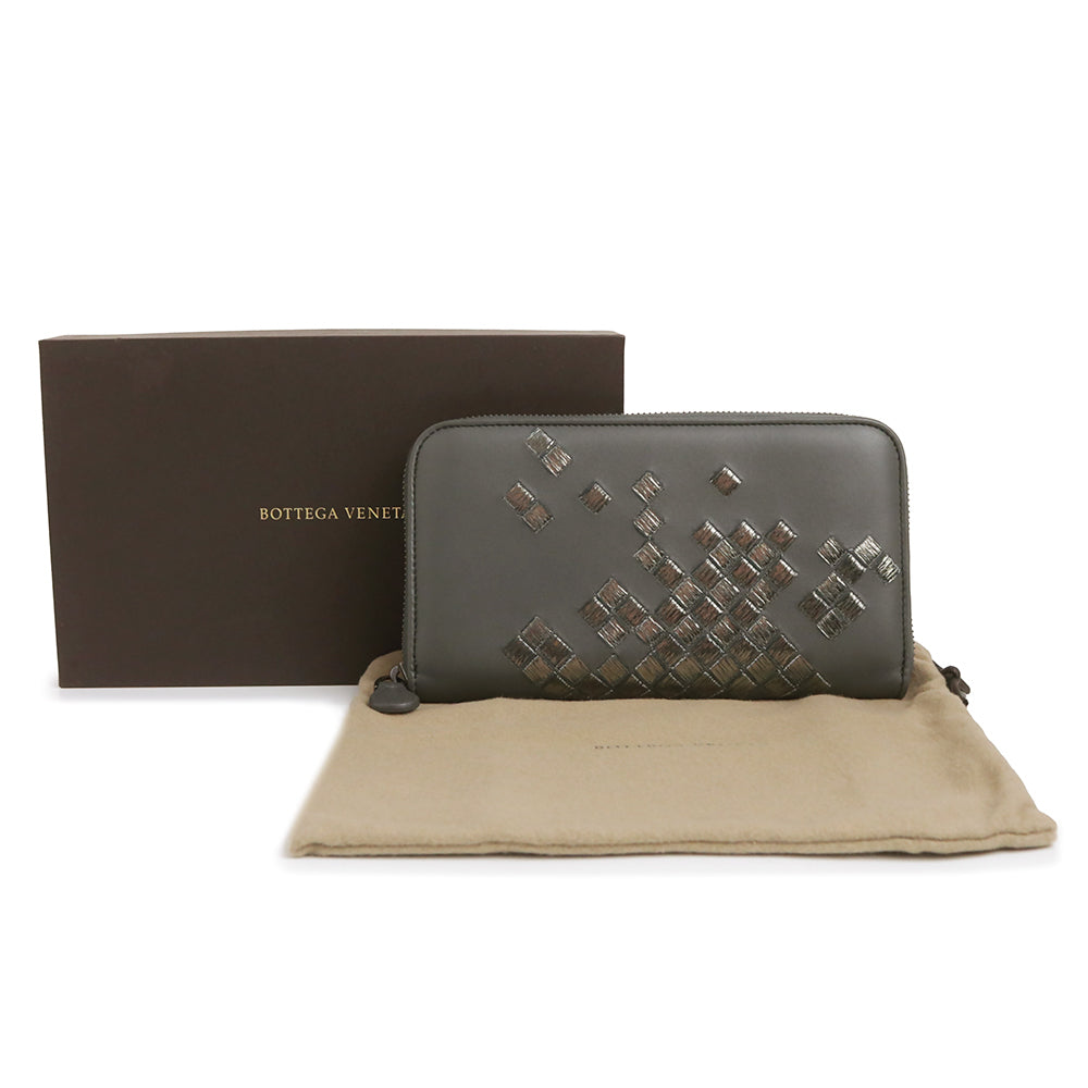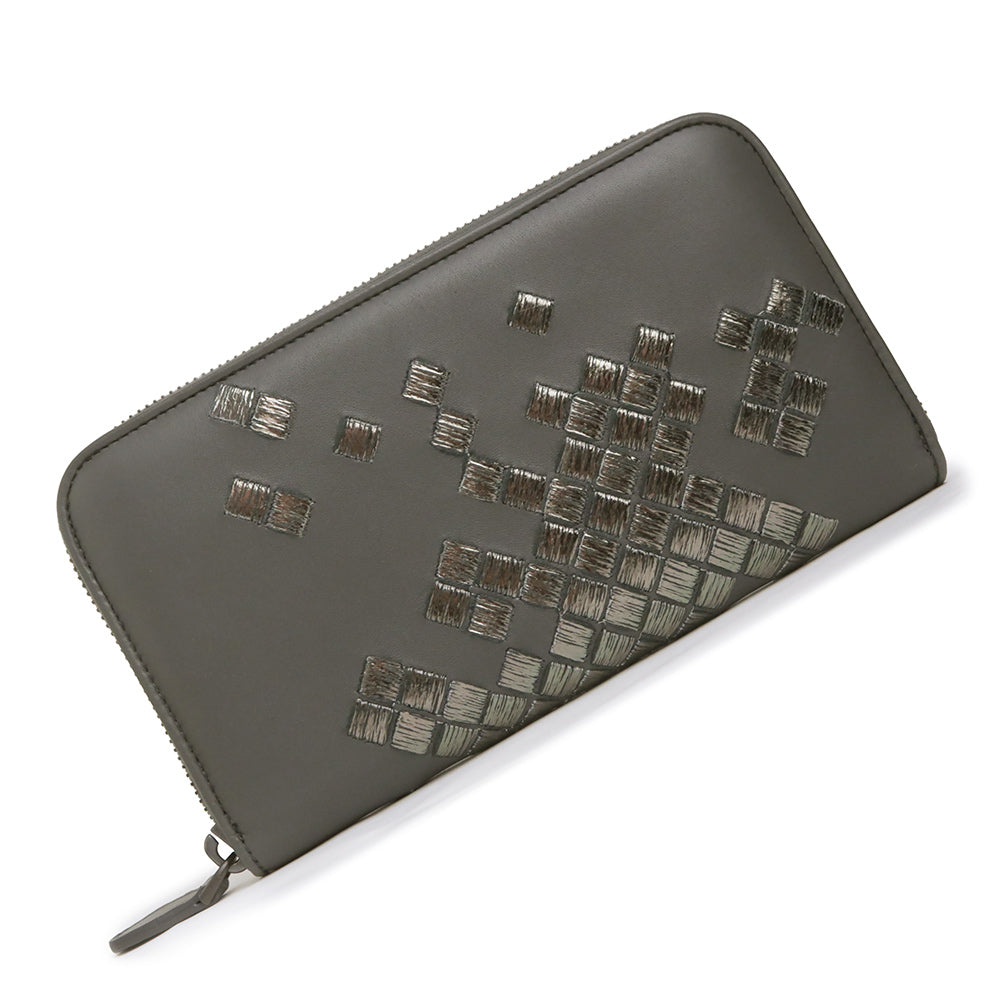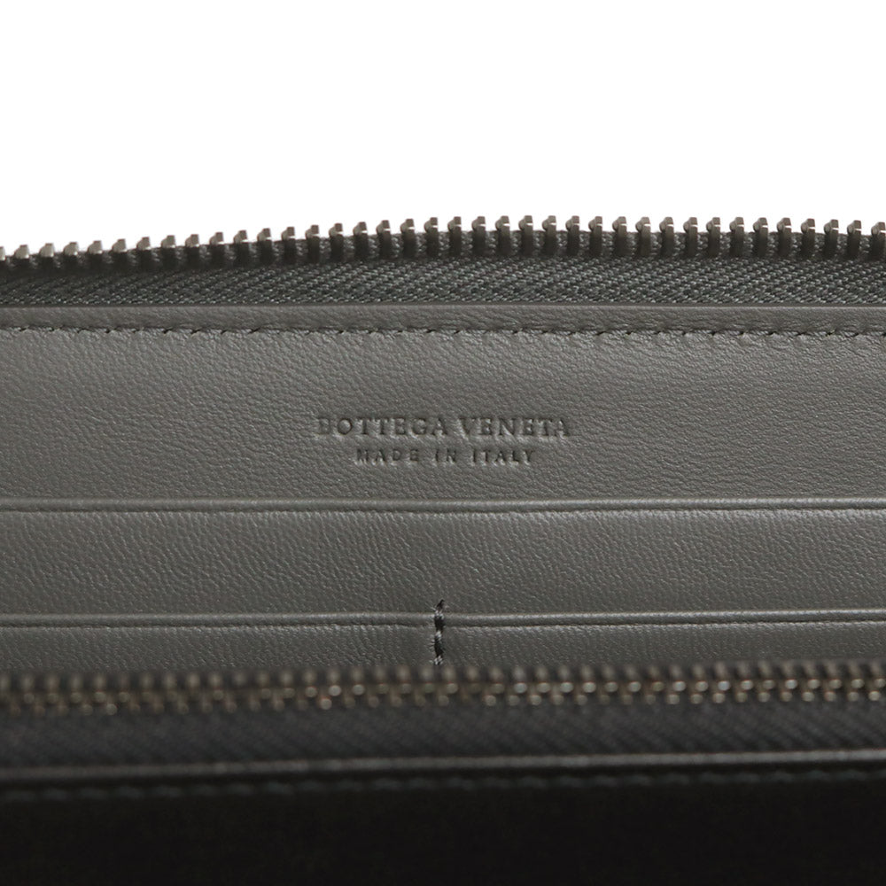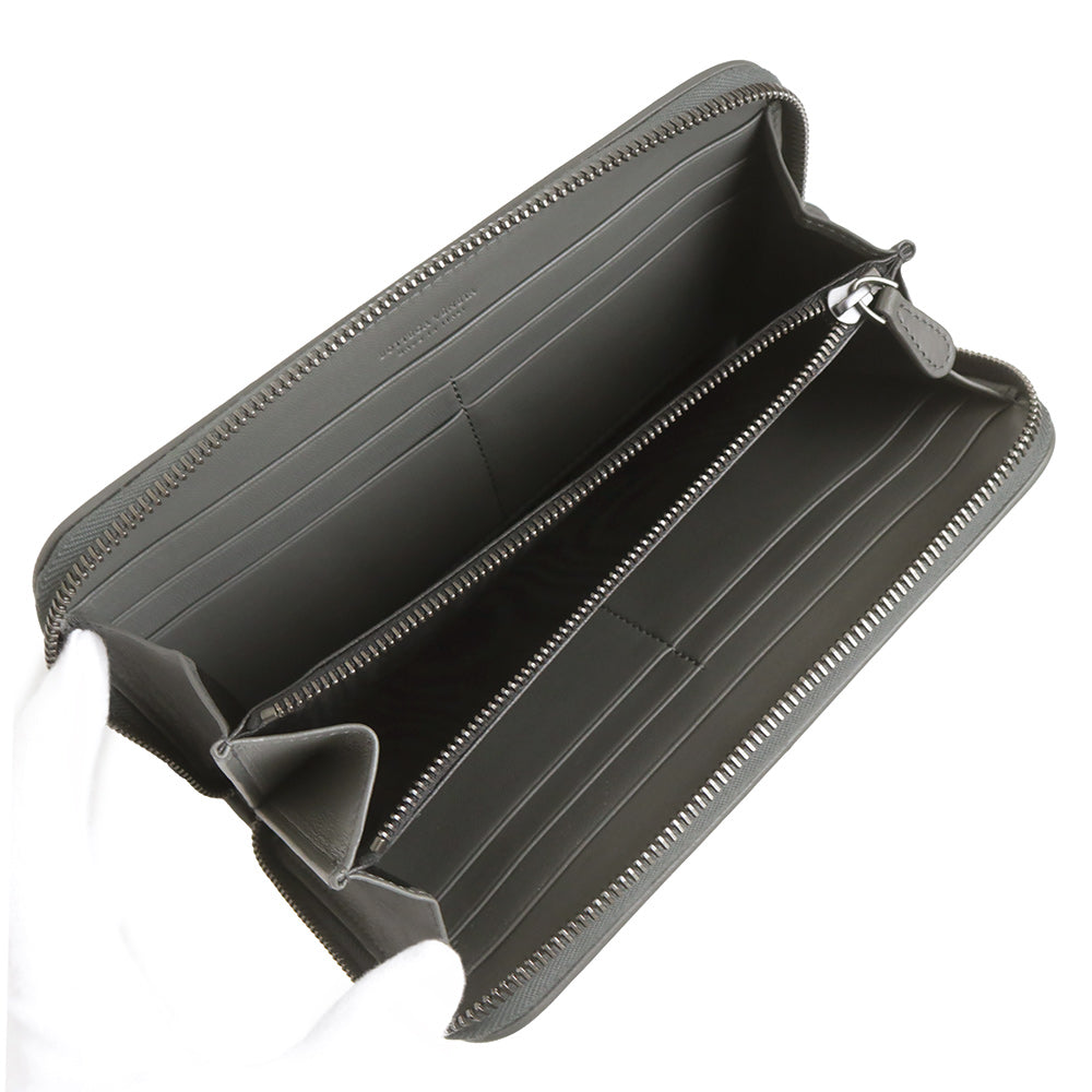 【未使用 展示品】ボッテガヴェネタ BOTTEGA VENETA イントレチャート ラウンドファスナー ジップ 長財布 ラムスキン レザー グレー ガンメタル金具 114076 箱付