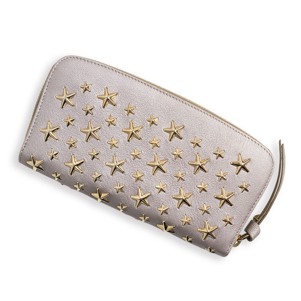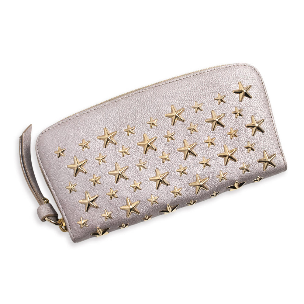 世界中の女性から愛されているJIMMY CHOOのスタースタッズジップアラウンドウォレット。カード入れやポケットの収納が充実しているので使い勝手も抜群。見た目ほどゴツゴツしていなくて、飾りすぎないスタースタッズデザインは持っているだけでラグジュアリーな雰囲気漂うアイテムとなっております。 |