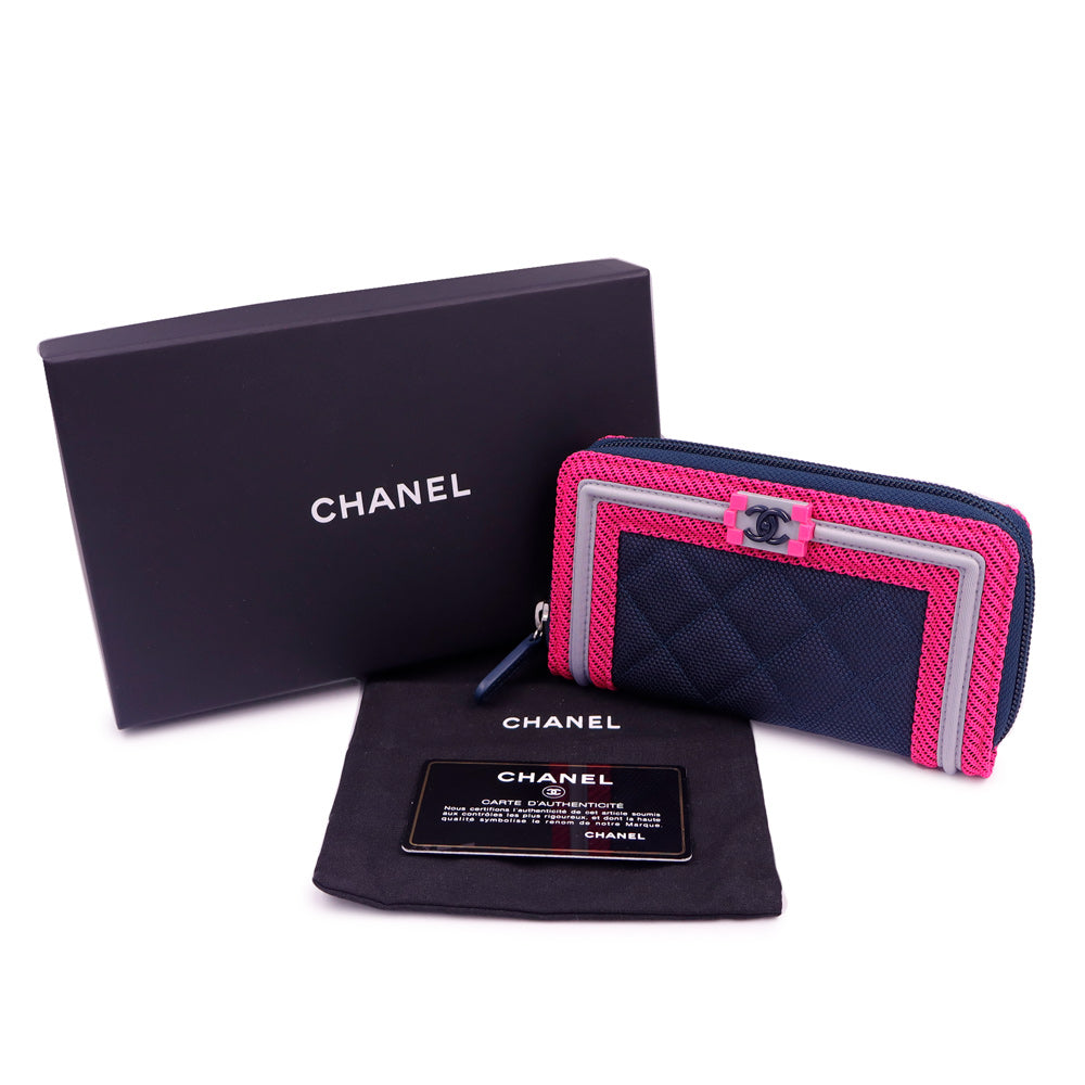 【新品・未使用品】CHANEL シャネル A80566 ボーイシャネル ミディアム ウォレット ラウンドファスナー ファブリック ネイビー ピンク 長財布 シルバー金具 箱付