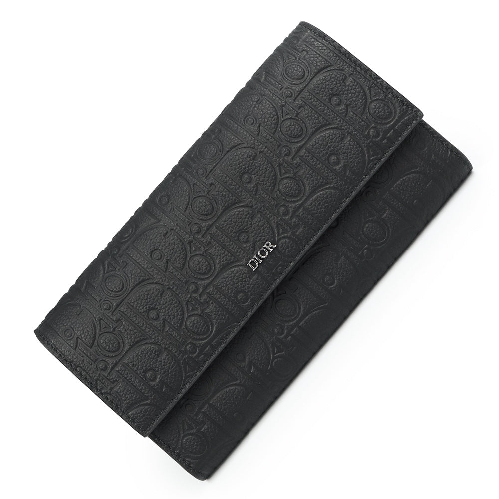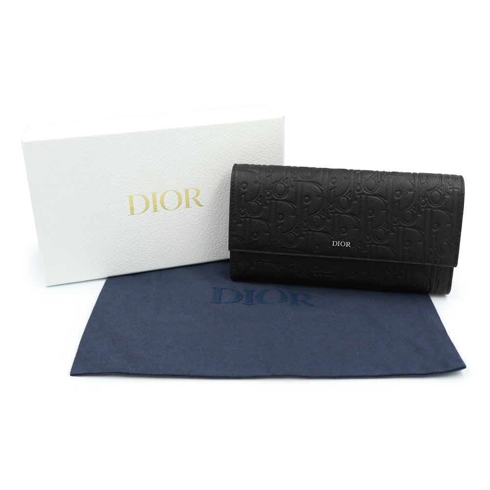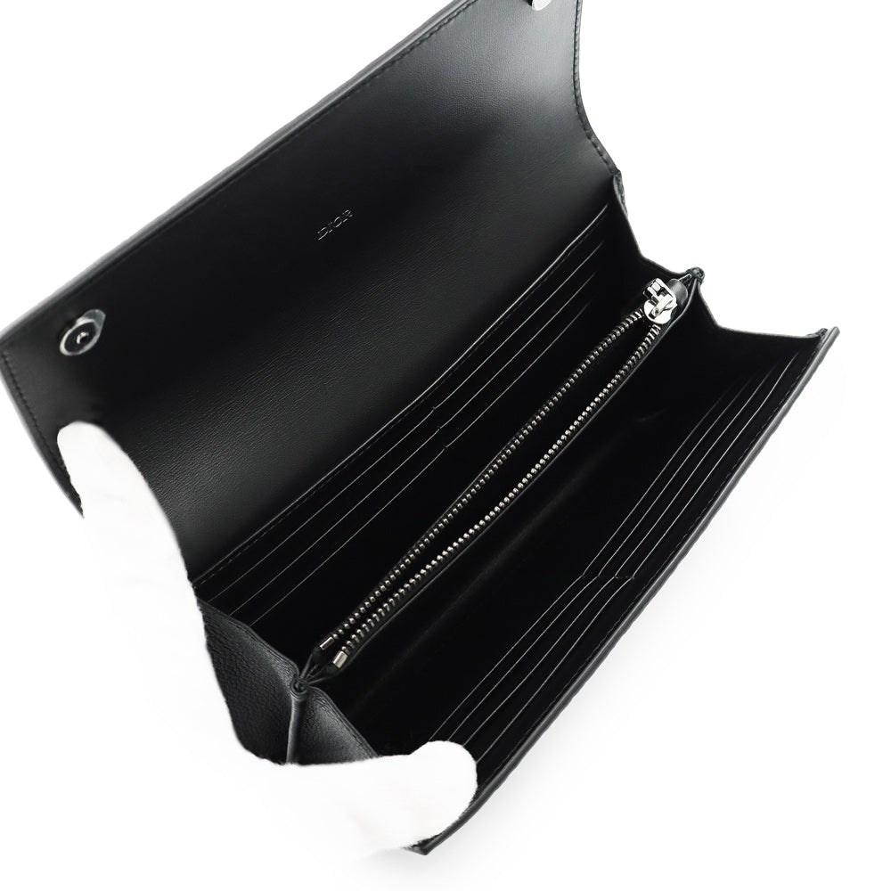 【新品・未使用品】Christian Dior クリスチャンディオール 2ESBC328FLG ロング フラップウォレット ディオール グラビティレザー ブラック 長財布 シルバー金具 箱付
