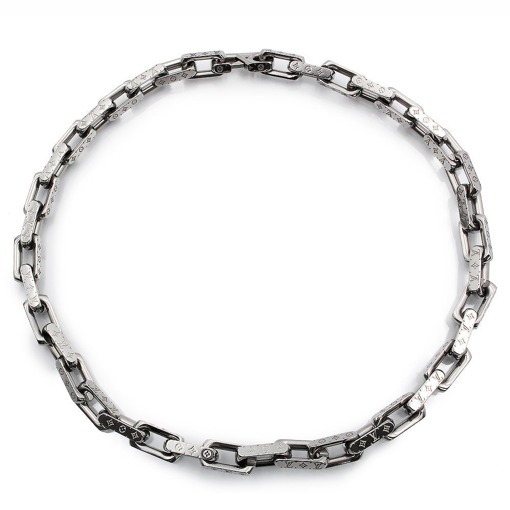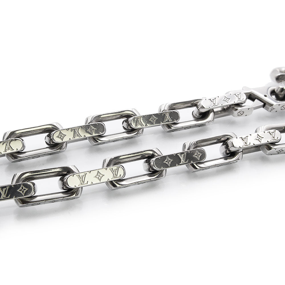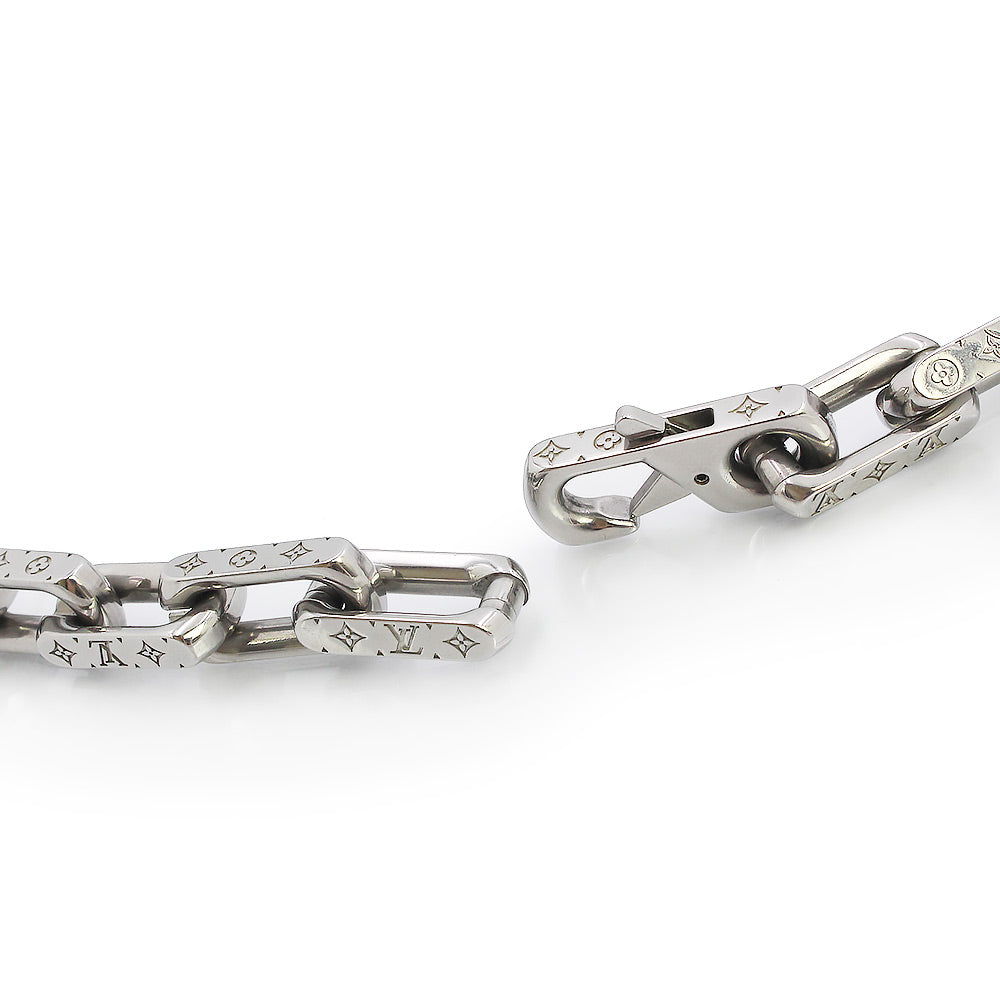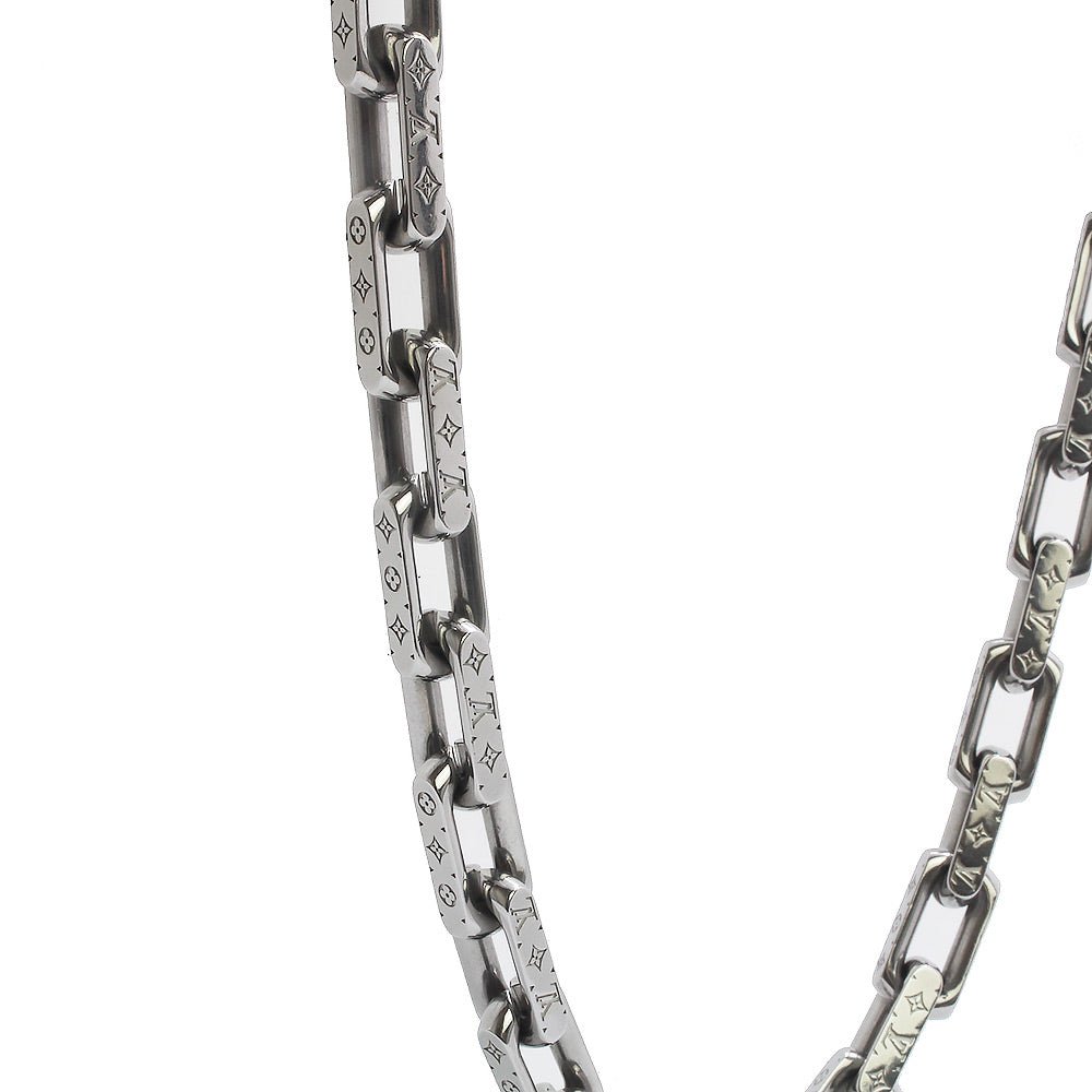 The iconic Monogram Necklace Chain features an intricately engraved signature motif. The silver-colored metal chain features Louis Vuitton's signature Monogram pattern. |