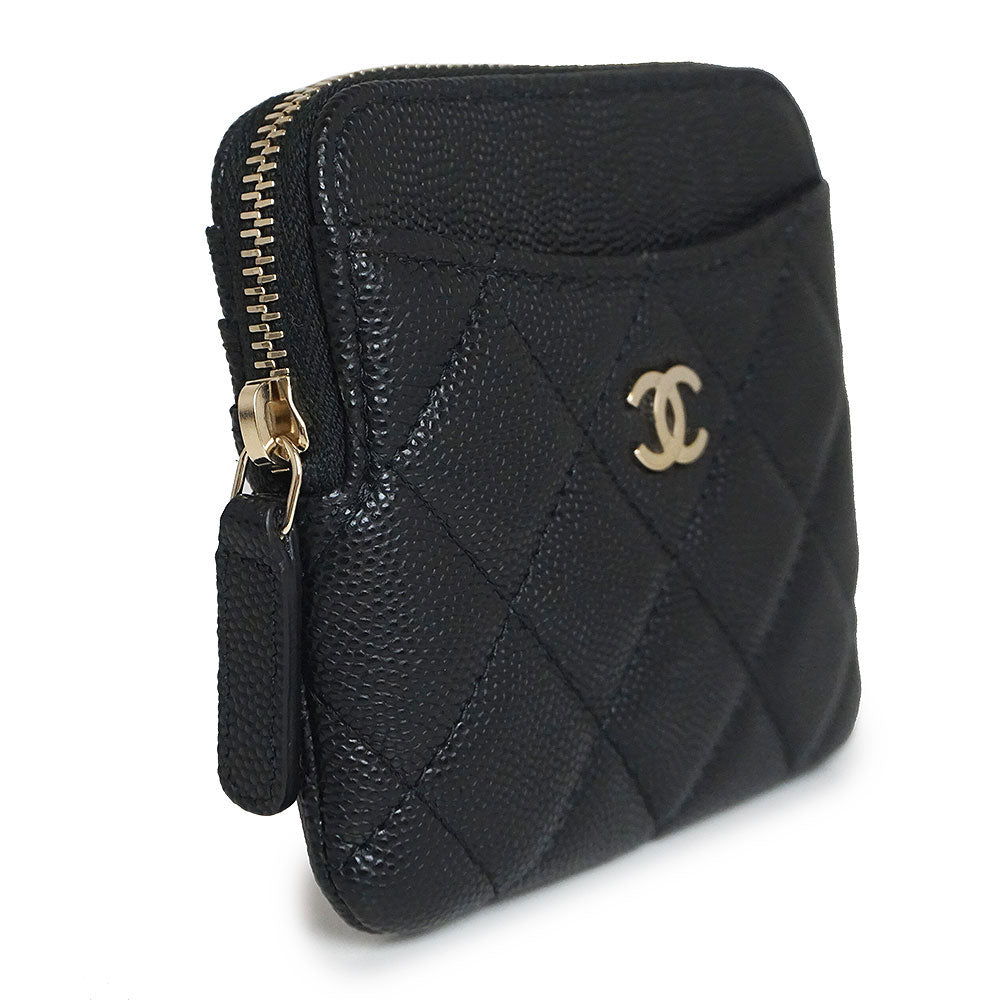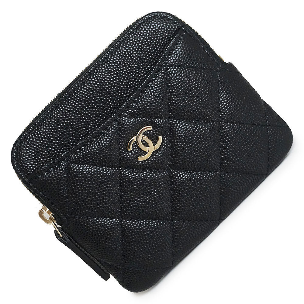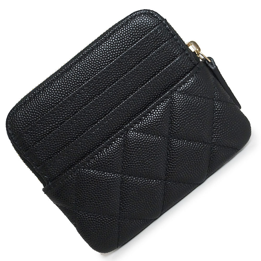[Unused, Stored] CHANEL Matelasse Zip Coin Purse, Coin Case, Wallet, Caviar Leather, Black, Gold Hardware, AP2061