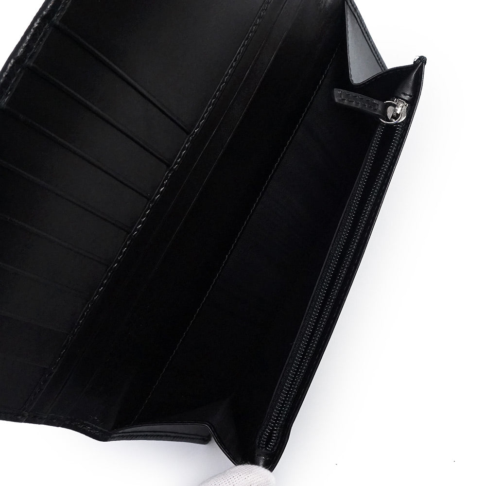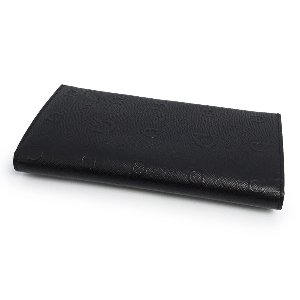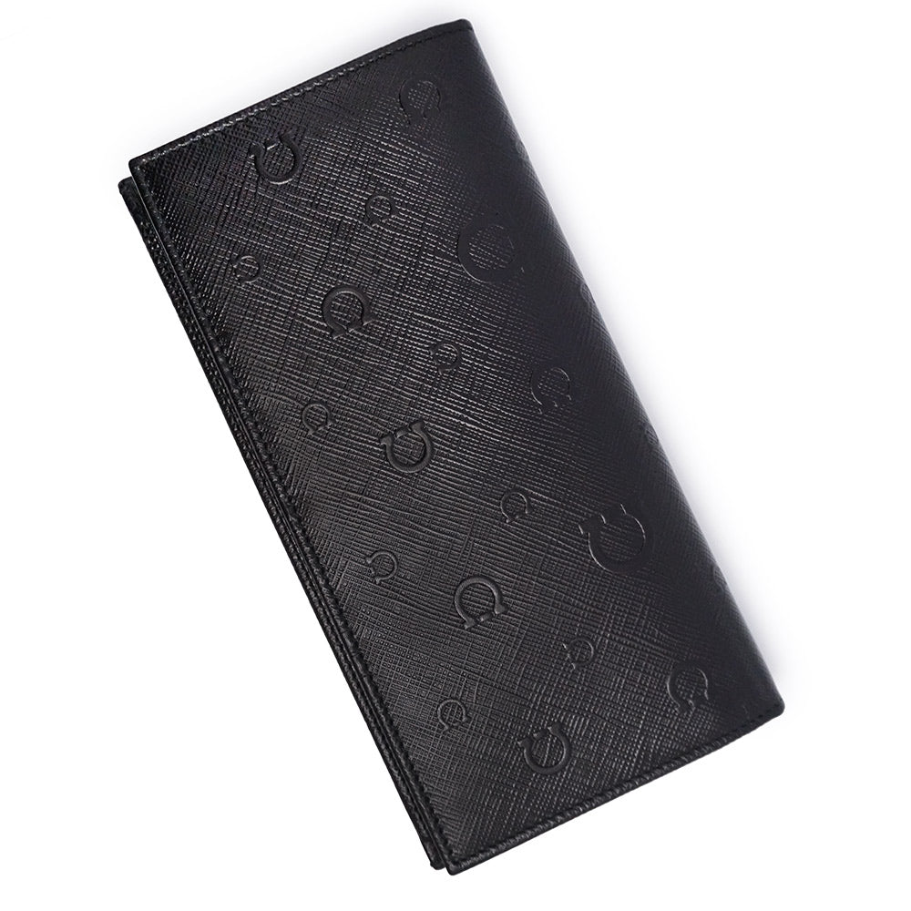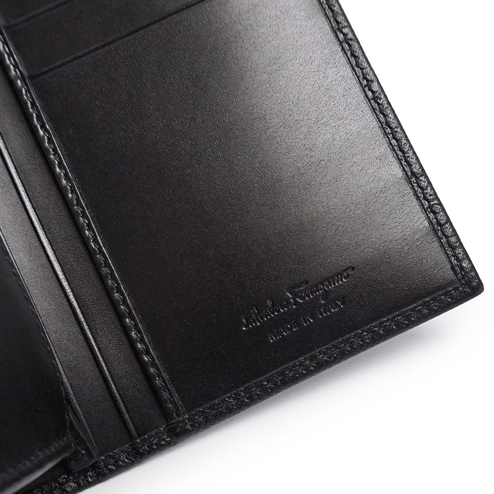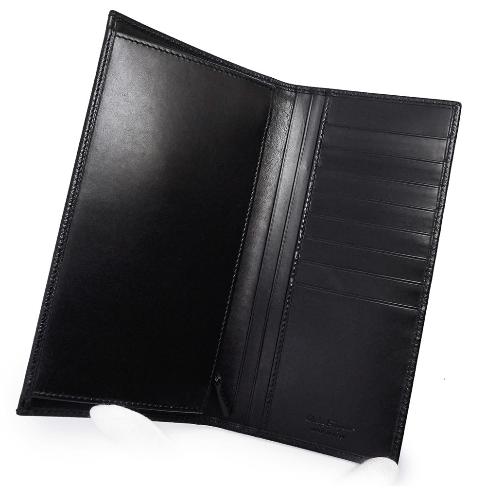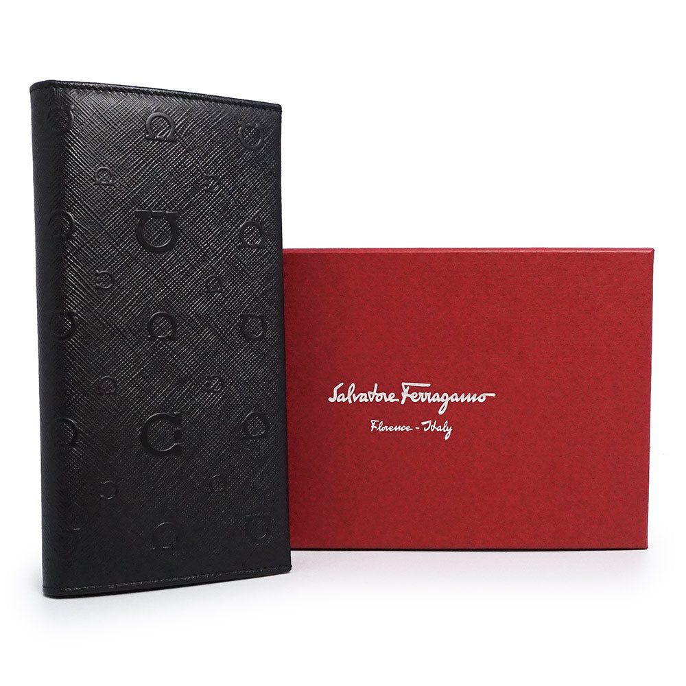 【未使用 展示品】サルヴァトーレフェラガモ Salvatore Ferragamo ガンチーニ モノグラム 二つ折り長財布 カーフスキン レザー ネロ ブラック ガンメタル金具 669303 箱付