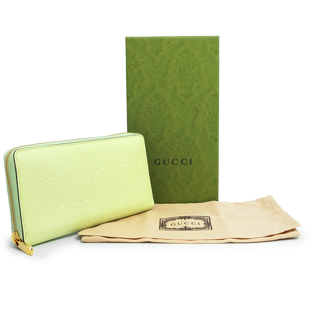 【新品・未使用品】グッチ GUCCI ロゴ ジップアラウンドウォレット ラウンドファスナー 長財布 レザー ライトグリーン アンティークゴールド金具 658691 箱付