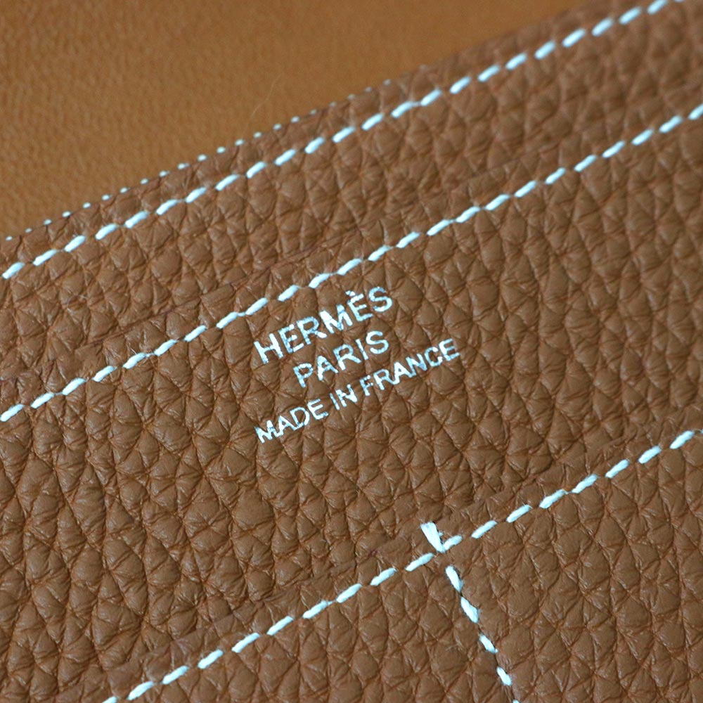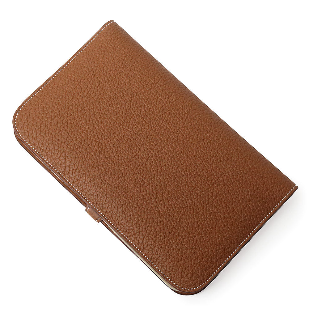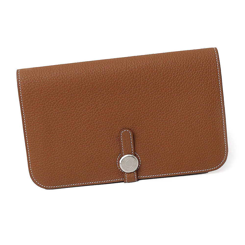 【未使用 展示品】エルメス HERMES ドゴン デュオ GM 二つ折り長財布 トゴ レザー ゴールド ブラウン シルバー金具 W刻印 箱付