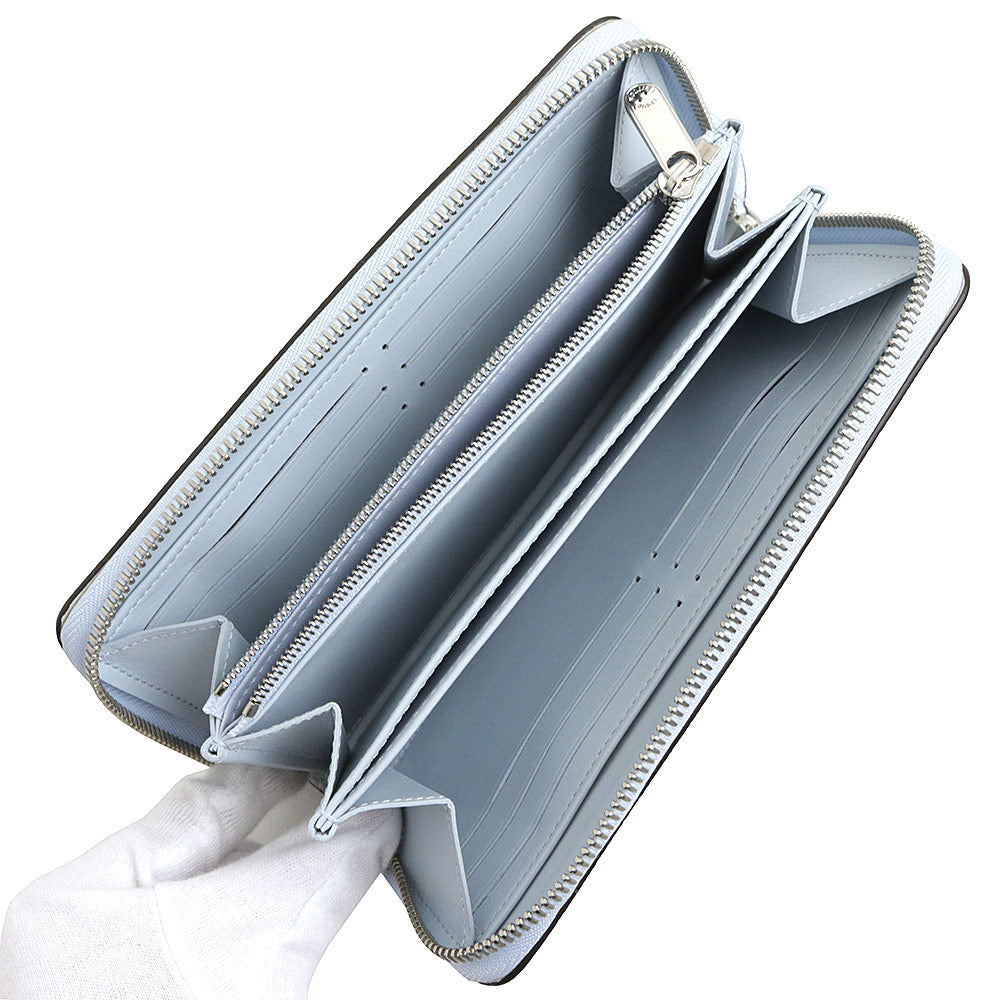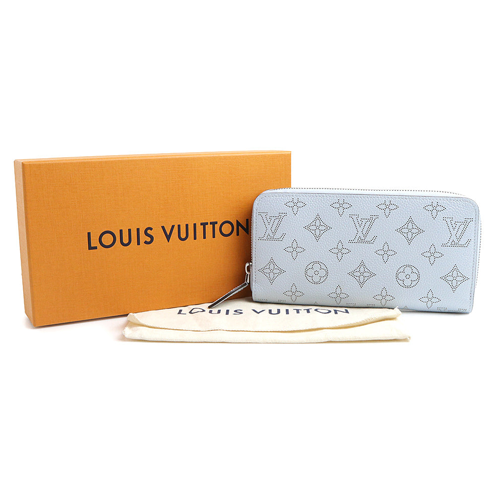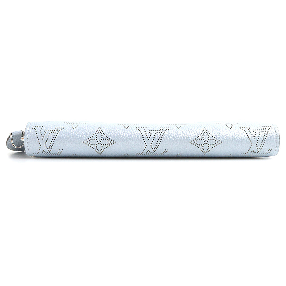 上質なモノグラムマヒナ素材で仕立て上げられた、ルイヴィトンの「ジッピー・ウォレット」。爽やかな水色が魅力的なmeメタリックが入ったブルーオランプ」日本限定カラー。内側には豊富なポケットを備え使い勝手も抜群。 |
