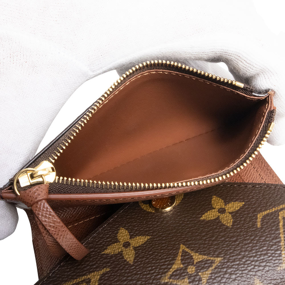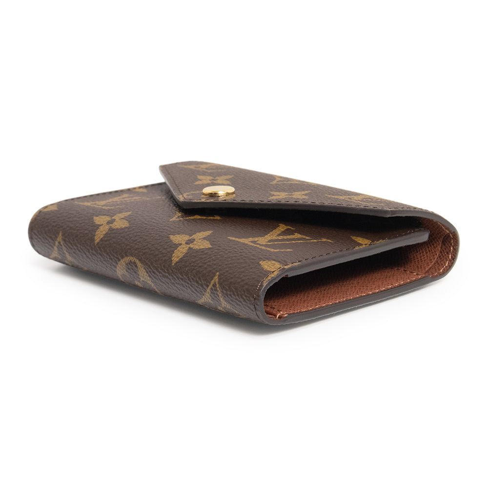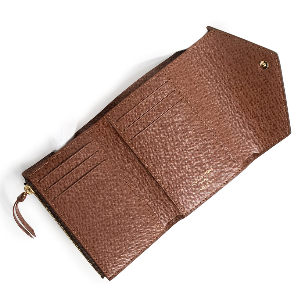フェミニンな雰囲気と機能美が光る、モノグラム・キャンバスでコンパクトに仕上げられた「ポルトフォイユ・ヴィクトリーヌ」。内装にはカードスロット、紙幣とコイン用のポケットが備えられています。 |