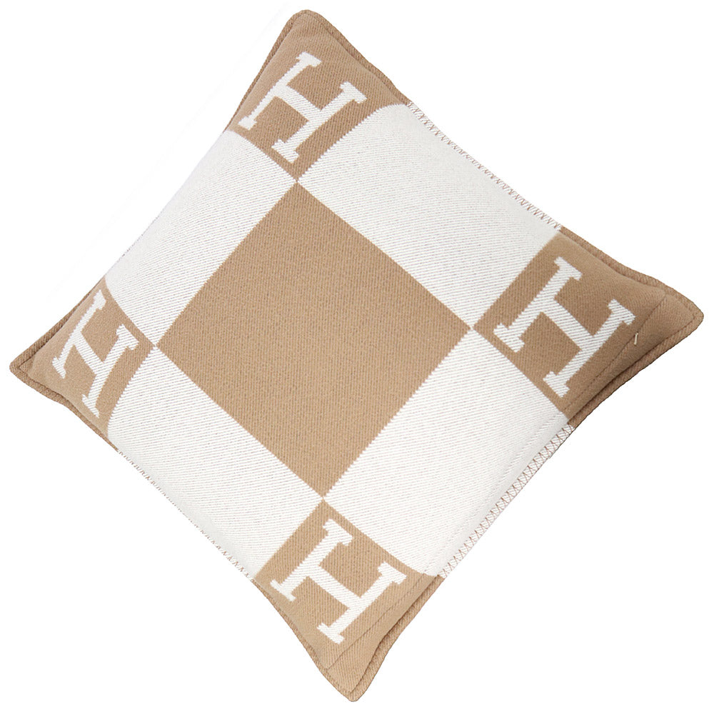 The Avalon cushion features a distinctive H on each corner. It is a masterpiece from Hermès, a fusion of skilled craftsmanship and precision machinery. The brand's signature H on each corner and the soft feel of the high-quality merino wool/cashmere create an exquisite experience. The cushion cover is removable. |